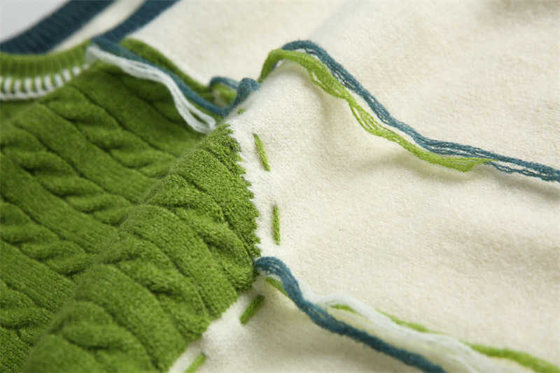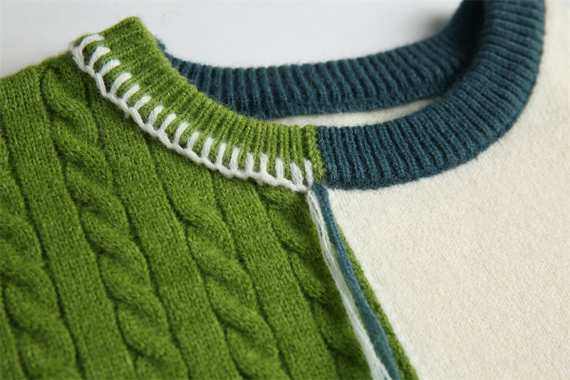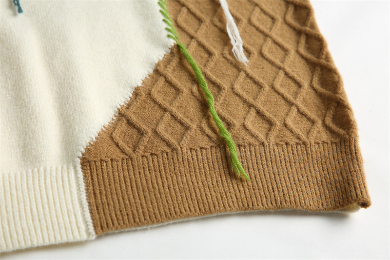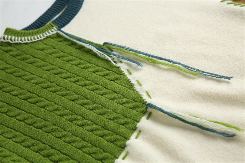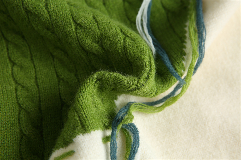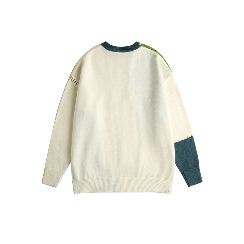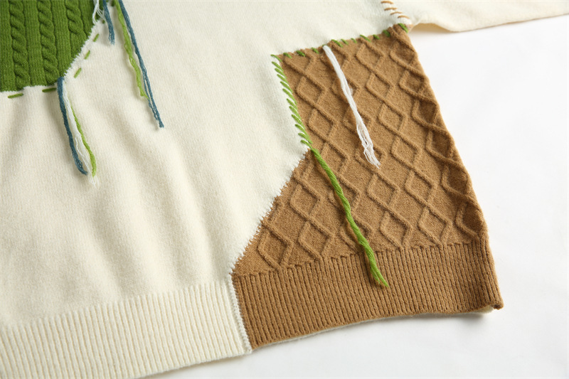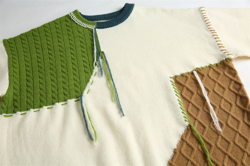 Color blocking patchwork tassel round neck knitted sweater for men and women | MuddyStock Originals