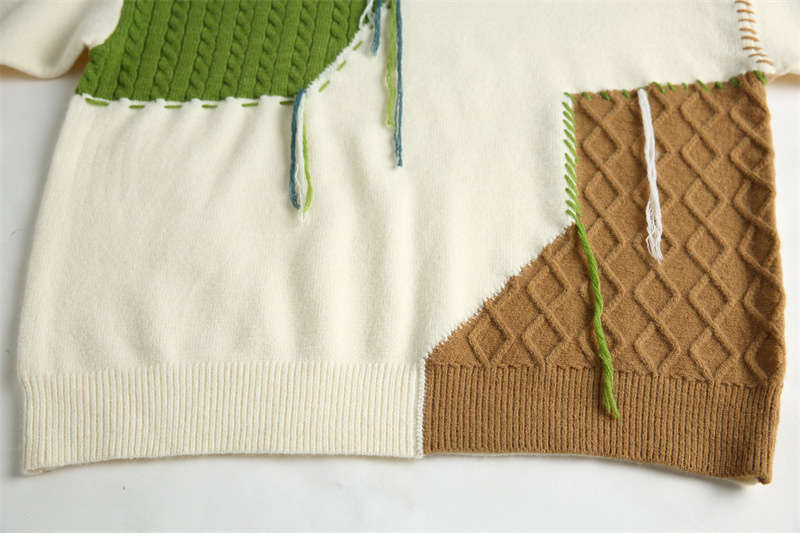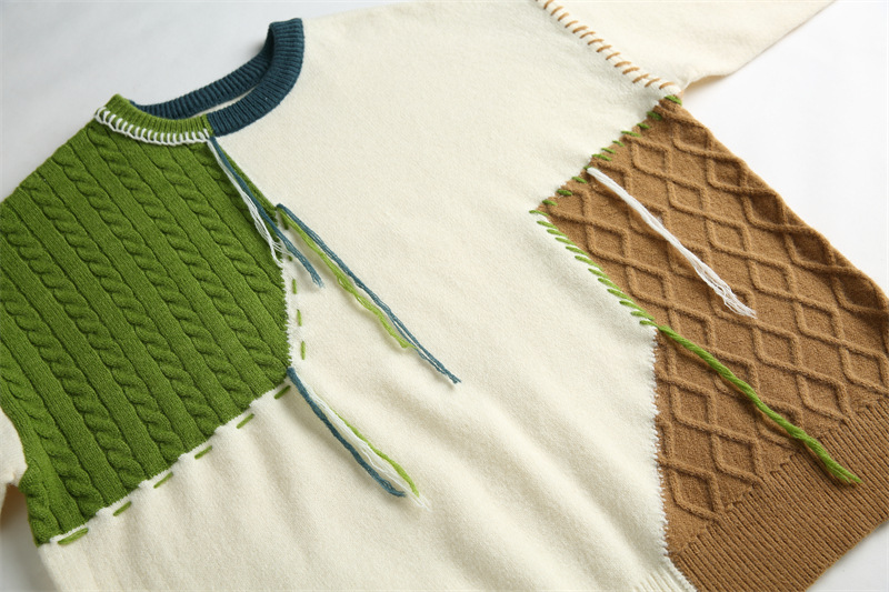 Embrace dynamic style with this color-blocking patchwork tassel sweater from MuddyStock Originals, designed for both men and women. The striking color-block construction delivers contemporary visual interest while playful tassel details add texture and personality. The classic round neck provides timeless appeal, while the patchwork design celebrates individuality and creative expression. Premium knit fabric ensures lasting comfort and durability, maintaining color vibrancy and structural integrity through regular wear. The unisex fit accommodates diverse body types and layering preferences, making it equally versatile for casual or elevated styling. A distinctive piece from MuddyStock, this sweater merges bold design sensibility with wearable sophistication for those who appreciate thoughtful craftsmanship.