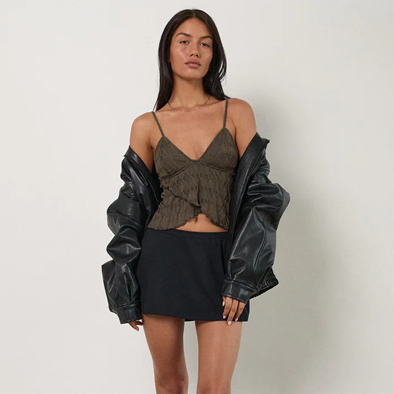 This expertly tailored camisole from MuddyStock Originals combines refined elegance with contemporary design. The slim fit hugs your curves while the V-neckline creates a flattering, elongated silhouette. Irregular lace detailing adds sophisticated texture and visual depth, making it versatile enough for layering or standalone wear. Constructed from premium materials, this piece transitions effortlessly from casual daytime styling to evening occasions. A signature offering from MuddyStock, designed for the discerning woman who demands quality craftsmanship and timeless style.