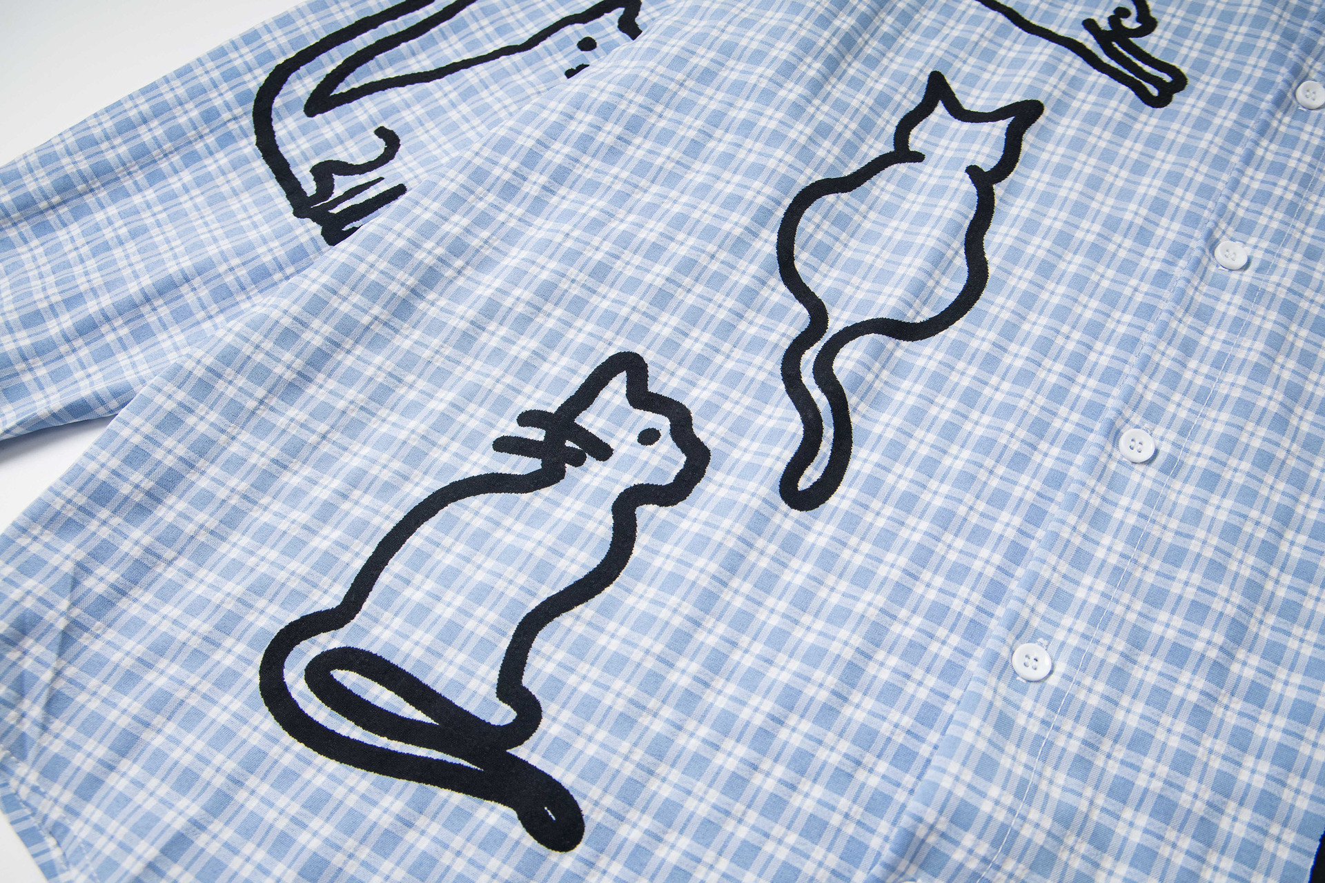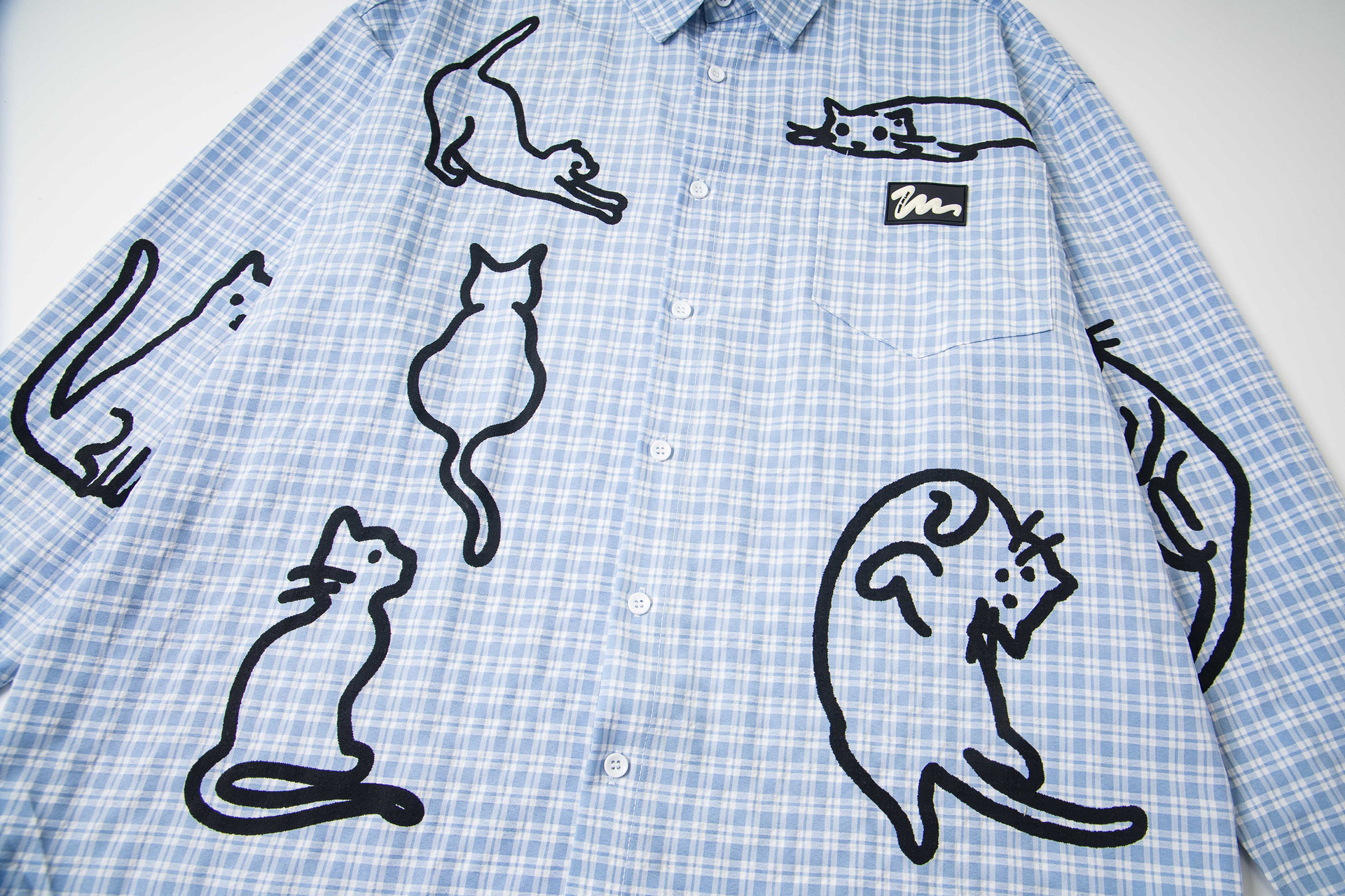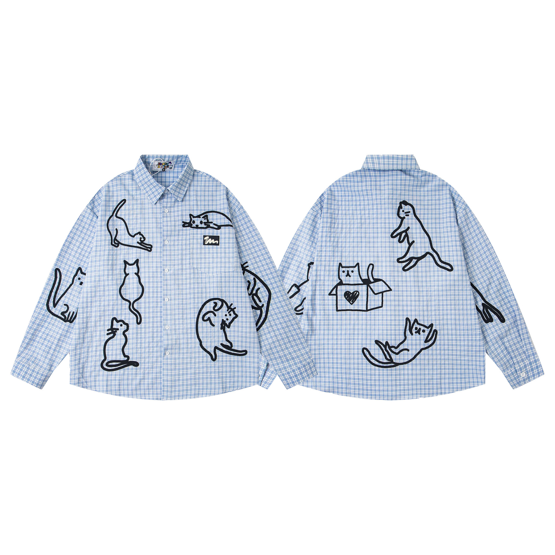 Blue checkered cat loose men and women long shirt | MuddyStock Originals