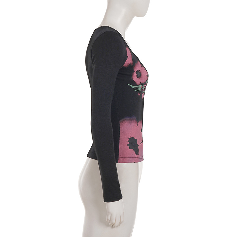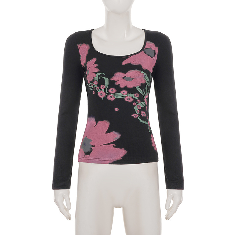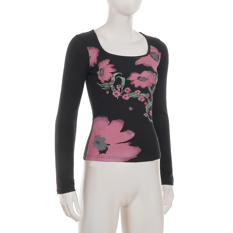 Floral print slim fit long sleeved T-shirt for women | MuddyStock Originals