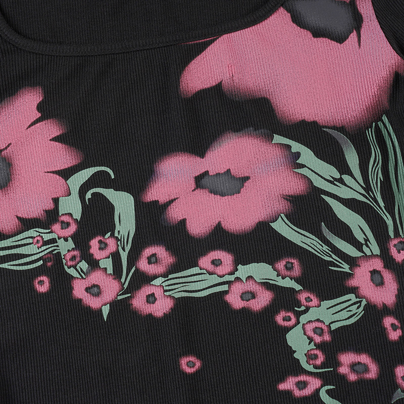 MuddyStock Originals presents a floral-printed slim fit long sleeve tee that brings botanical sophistication to women's streetwear. The tailored silhouette skims the body without restricting movement, while the extended sleeves provide layering flexibility and refined coverage. The floral graphic adds organic texture and visual depth, elevating the piece beyond basic essentials. Ideal for those seeking femininity paired with contemporary edge, this tee works equally well as a standalone statement or layered beneath jackets and overshirts for dimensional styling.