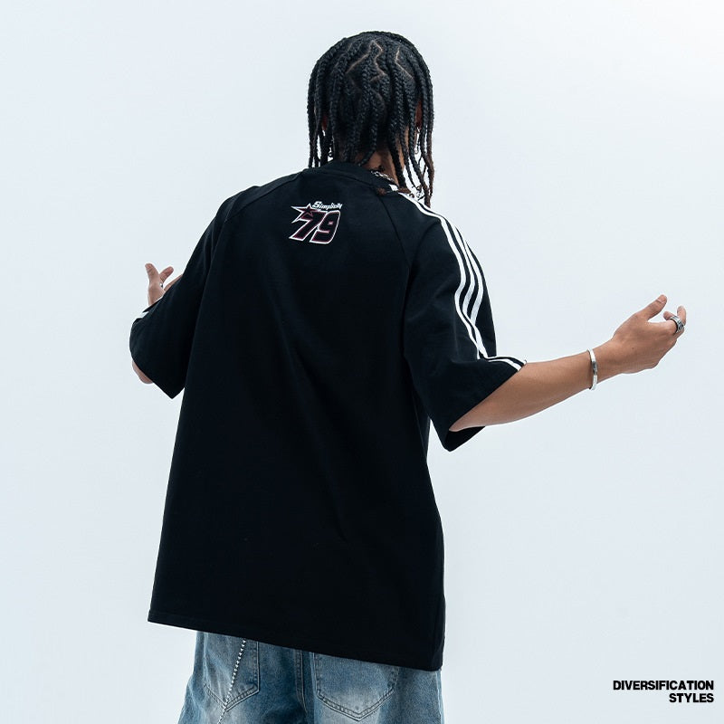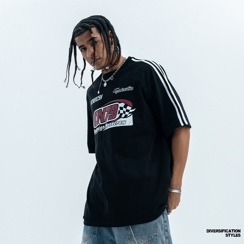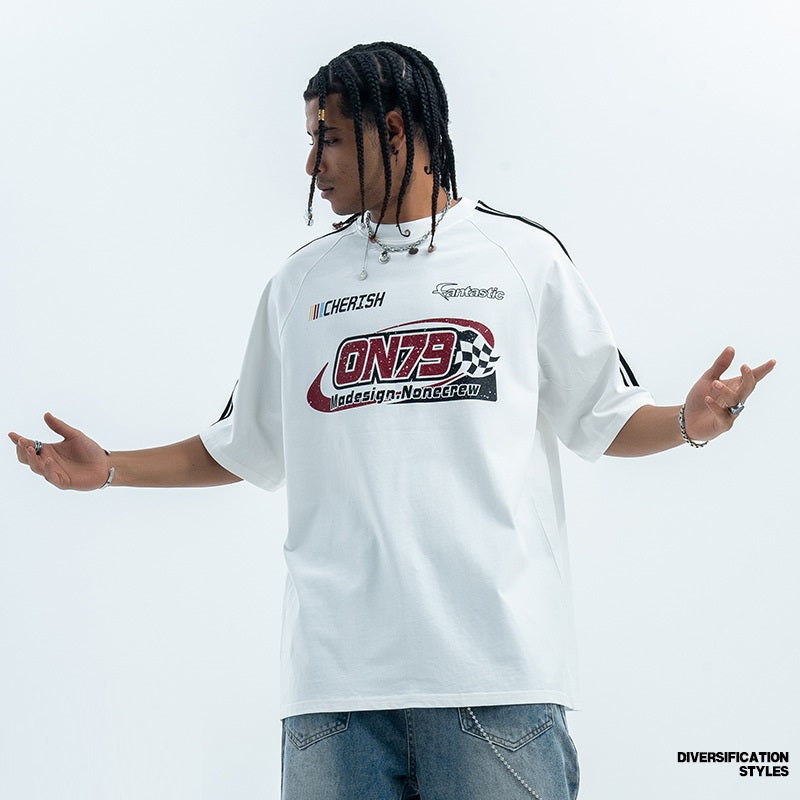 American Retro Raglan Racing Car Distressed Printed Cotton Short-sleeved T-shirt Men And Women Couple Summer Top