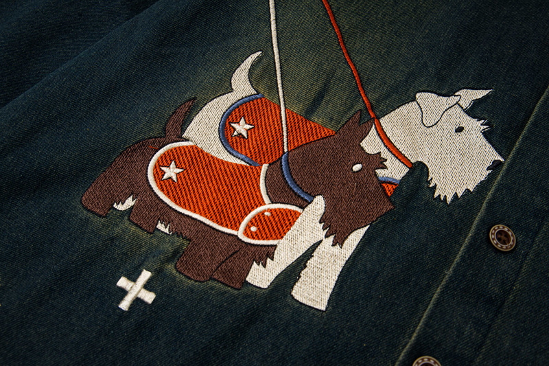 The MuddyStock Originals retro dog embroidery washed denim long-sleeve shirt combines artisanal embroidery with heritage denim construction. Detailed dog embroidery adds character and texture, while the vintage-washed finish delivers authentic worn-in appeal. The unisex silhouette works across body types and styling preferences, with extended sleeves providing seasonal versatility. Premium denim ensures durability and improves with age. A distinctive piece that bridges nostalgia and contemporary craftsmanship.