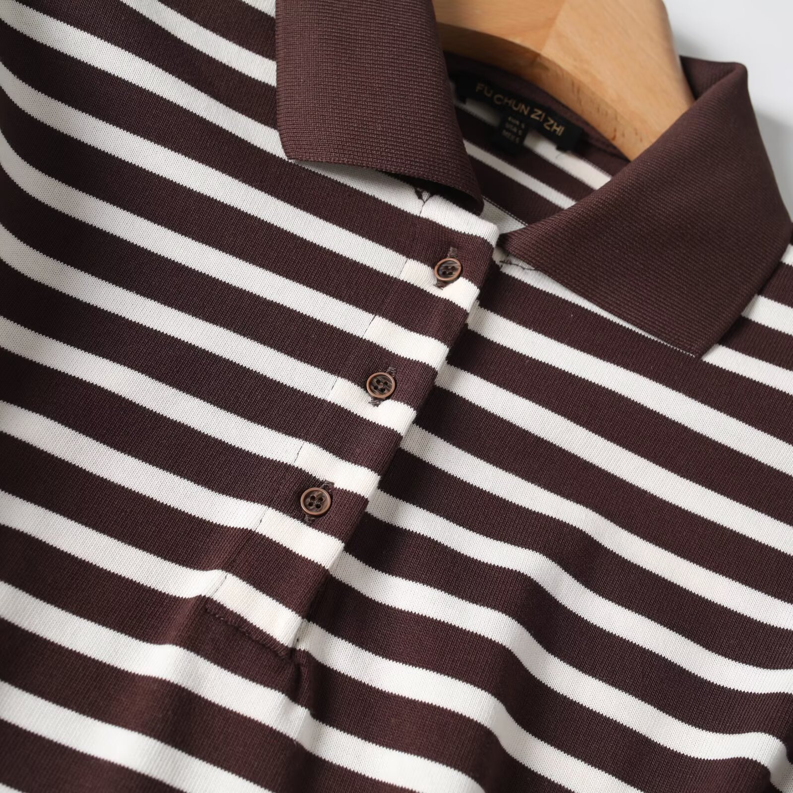 Casual versatile lapel striped pullover top for women | MuddyStock Originals