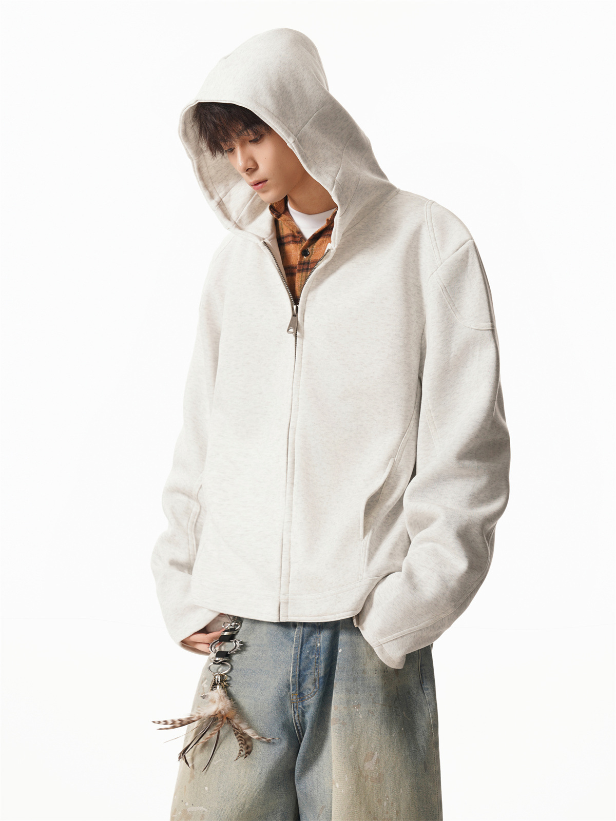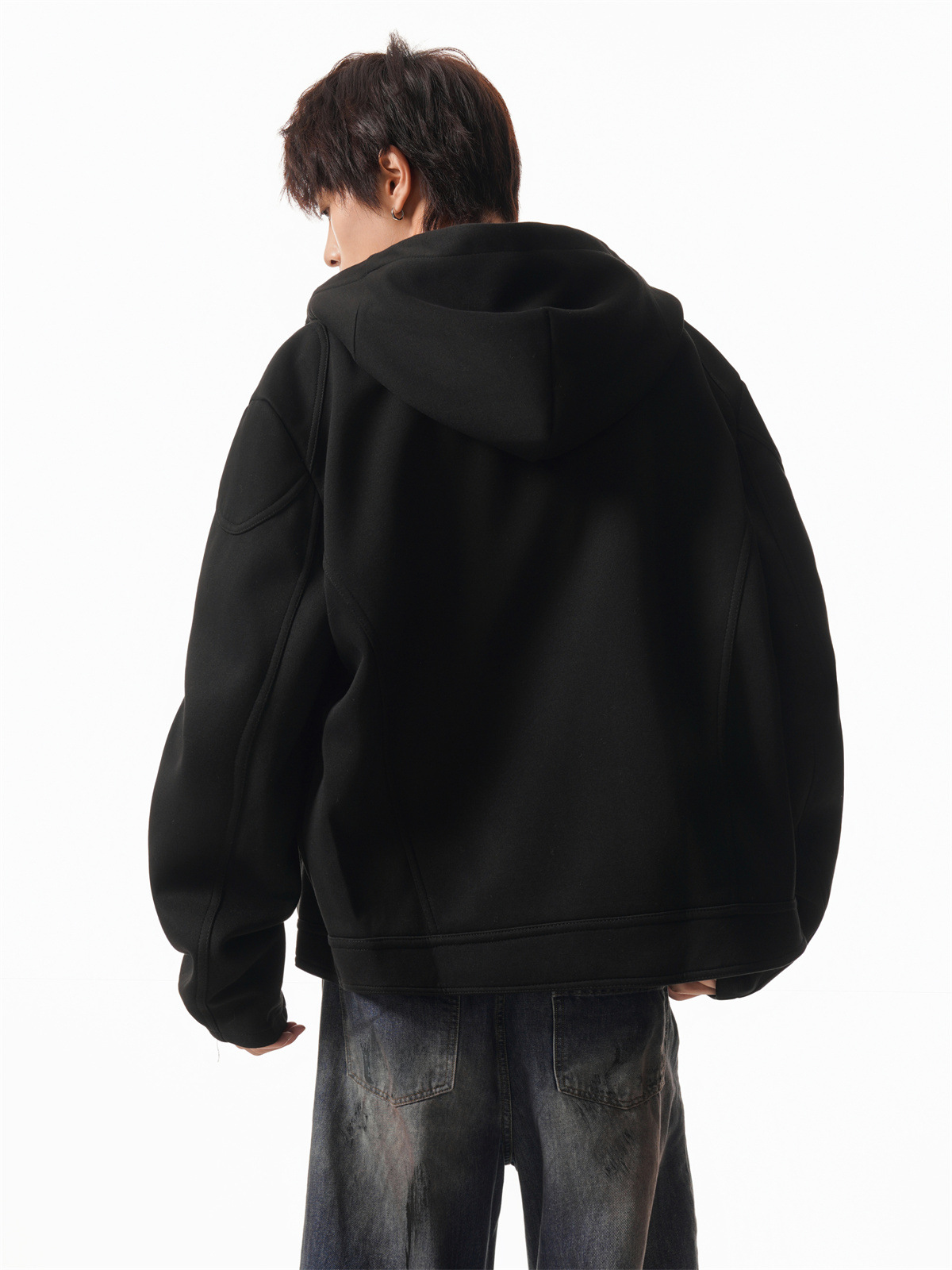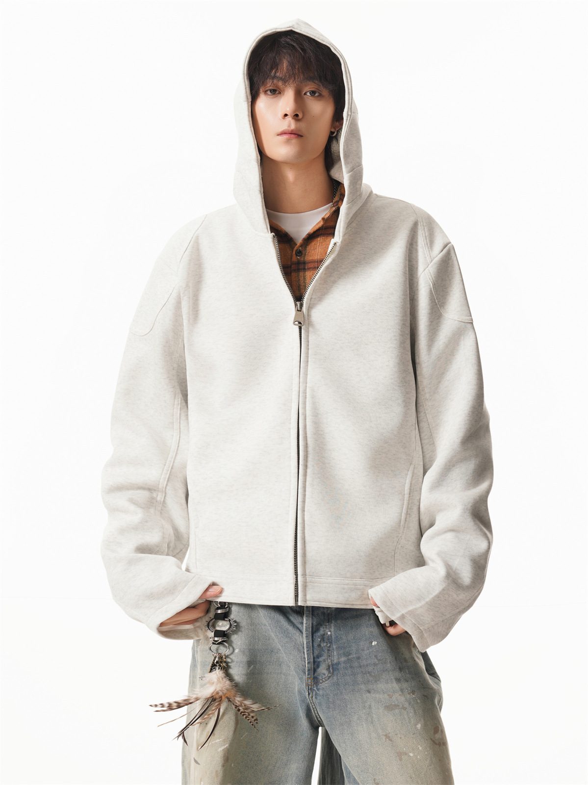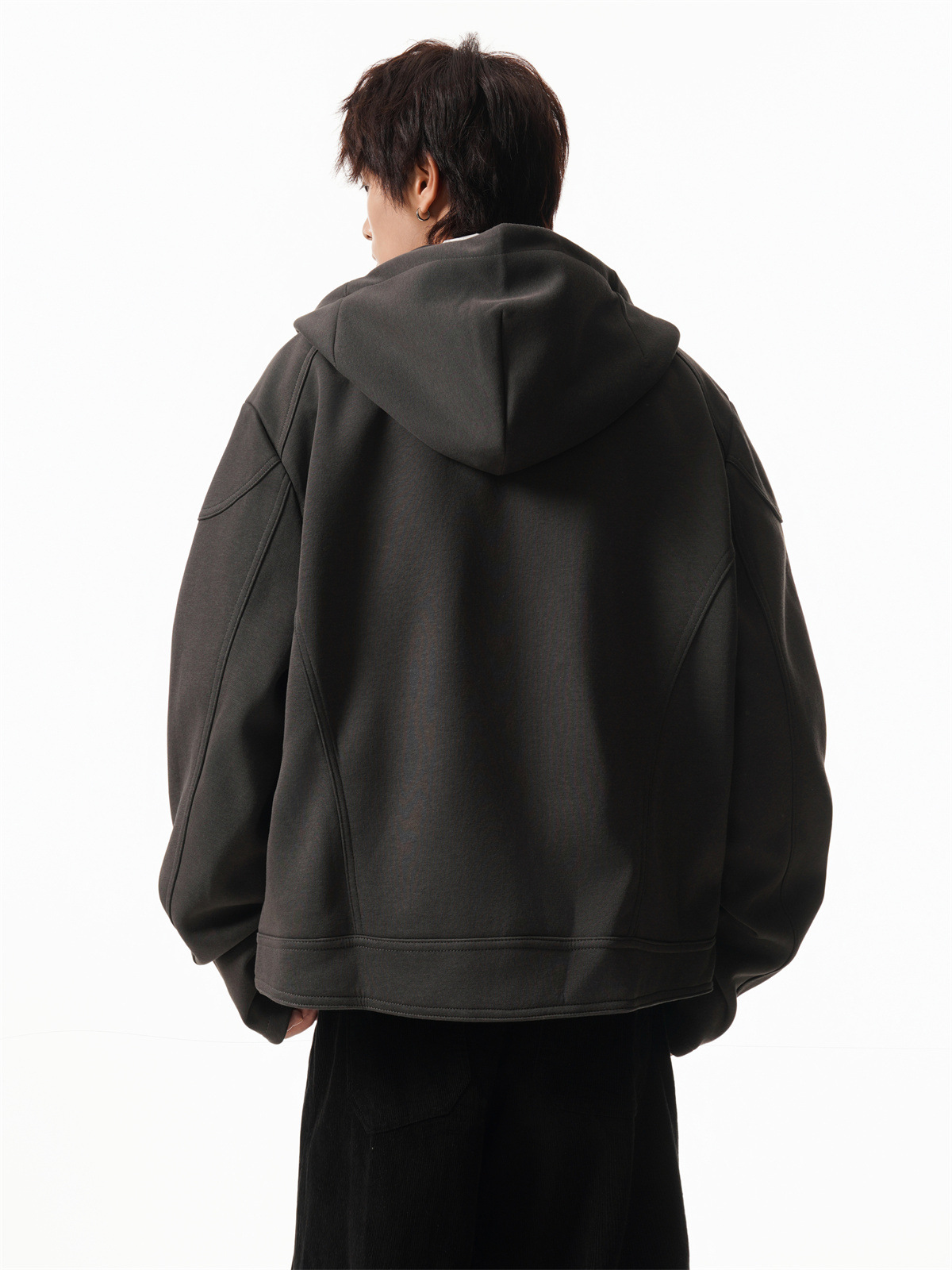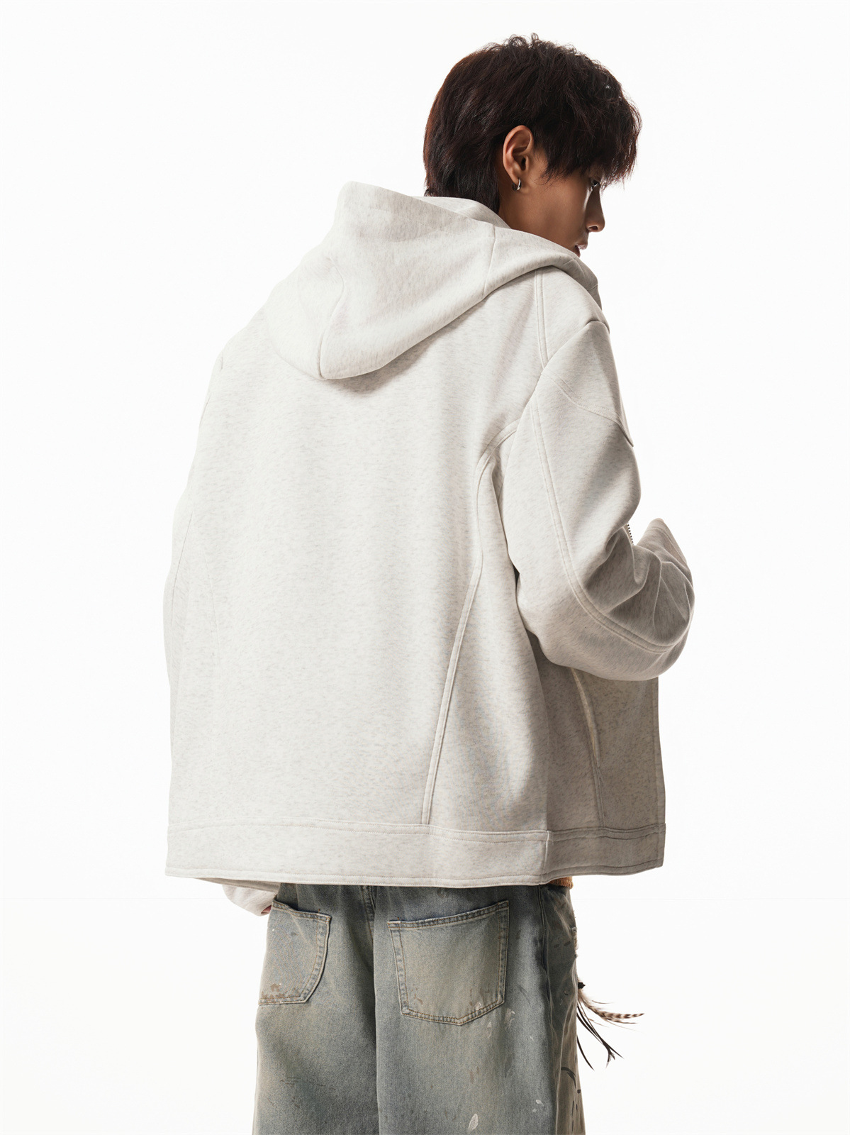 Cleanfit Short Crop Heavyweight Hoodie Jacket for Men Autumn Loose Oversized Hooded Zip-Up Sweatshirt with Regular Shoulders