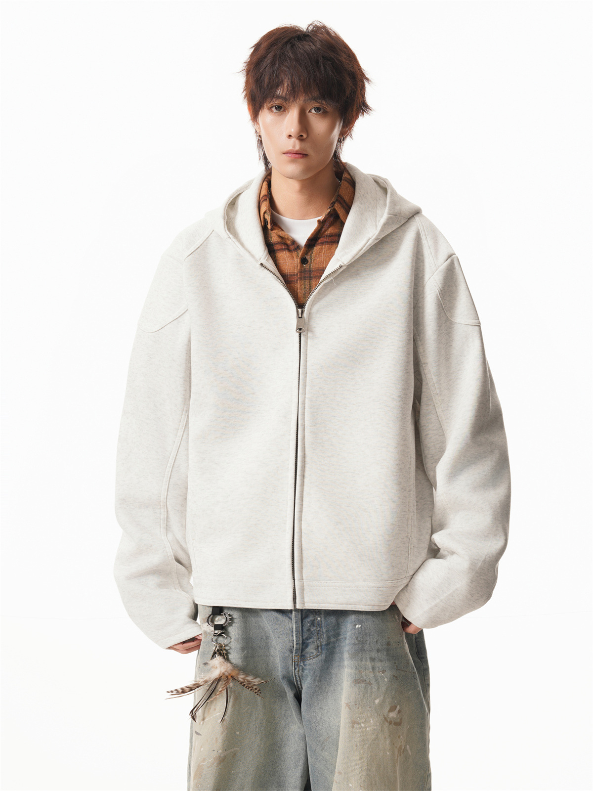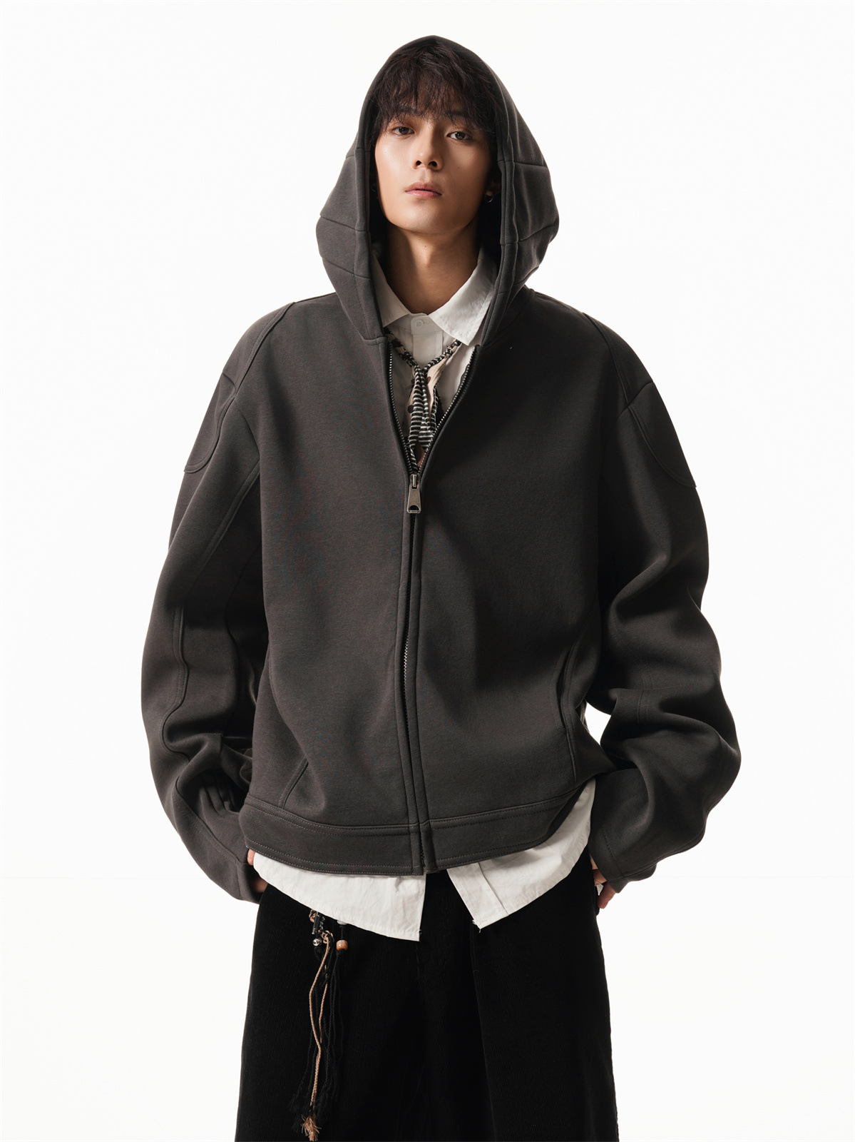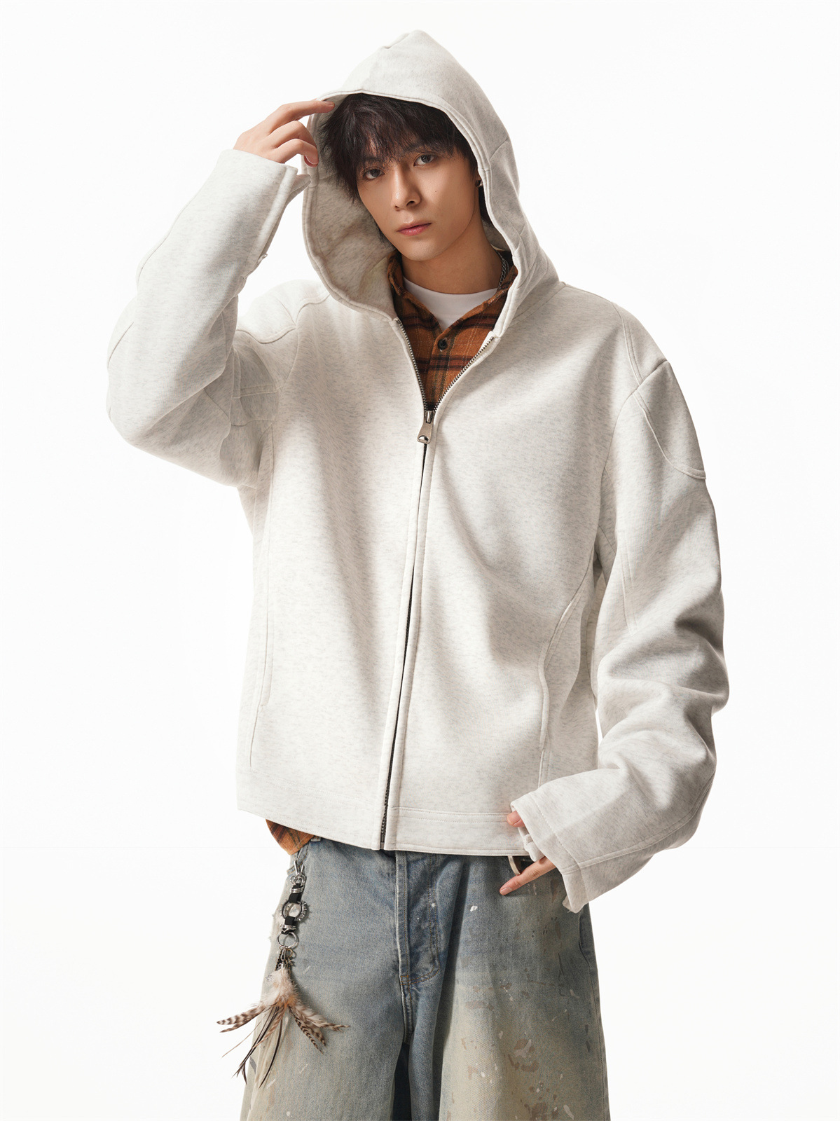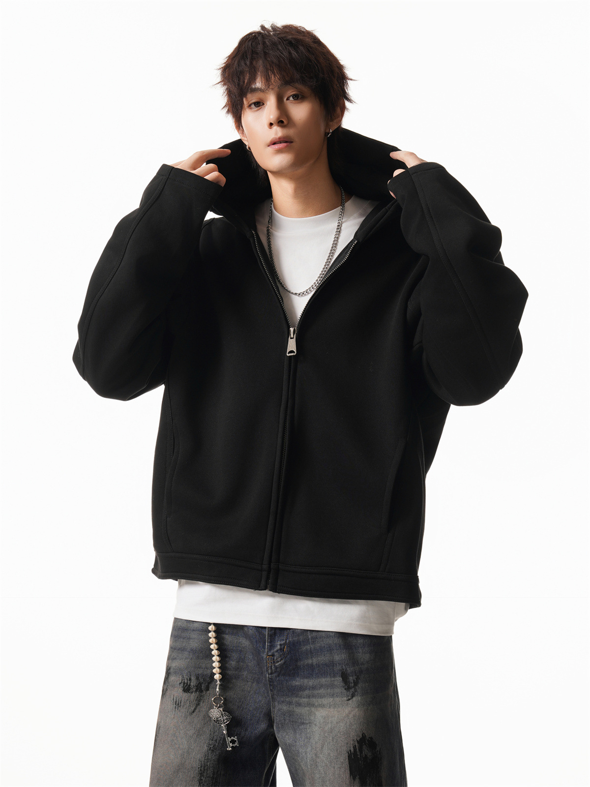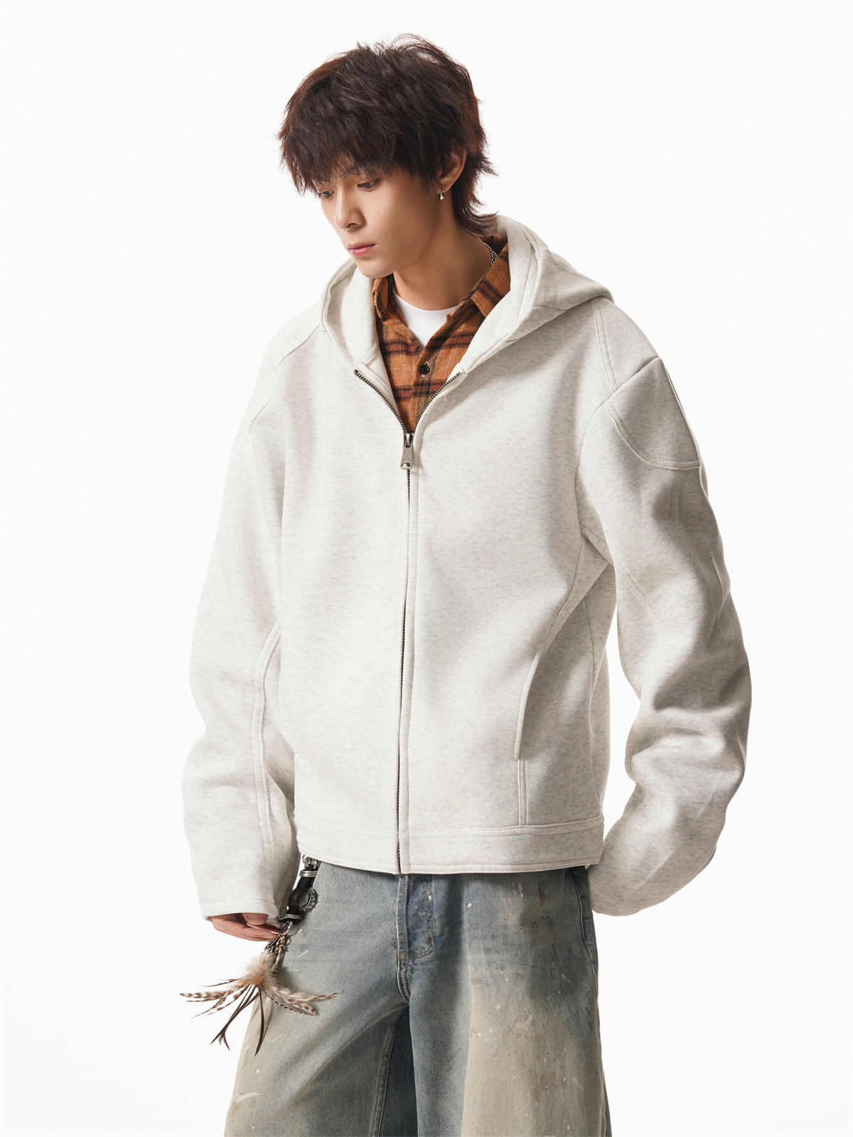Cleanfit Short Crop Heavyweight Hoodie Jacket for Men Autumn Loose Oversized Hooded Zip-Up Sweatshirt with Regular Shoulders