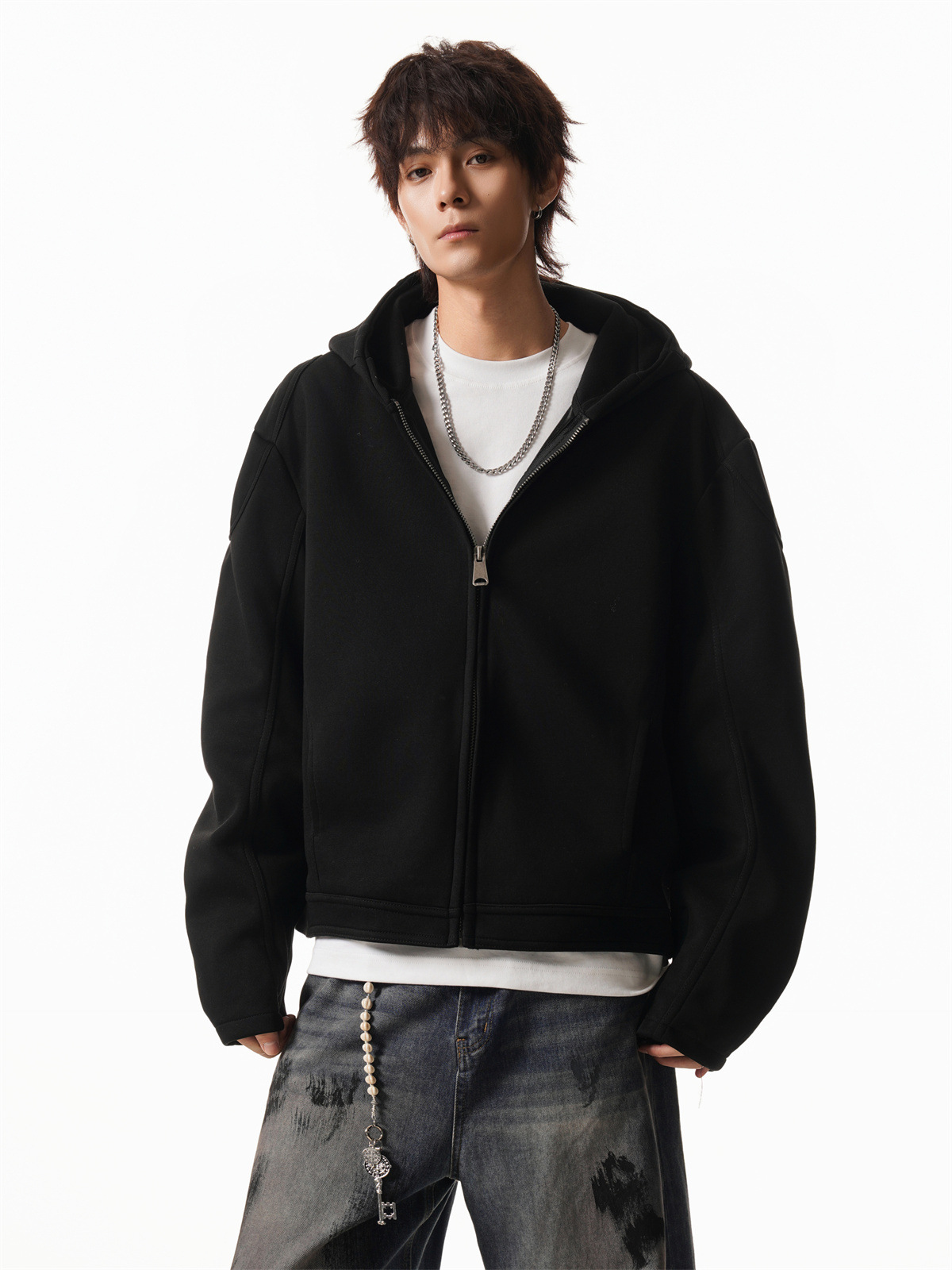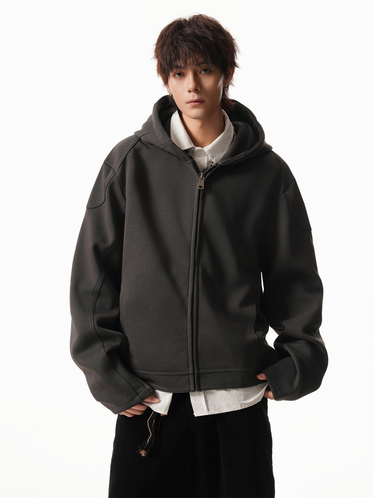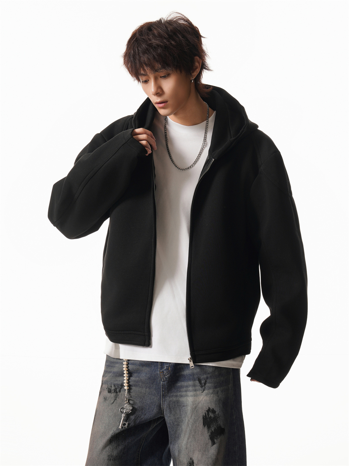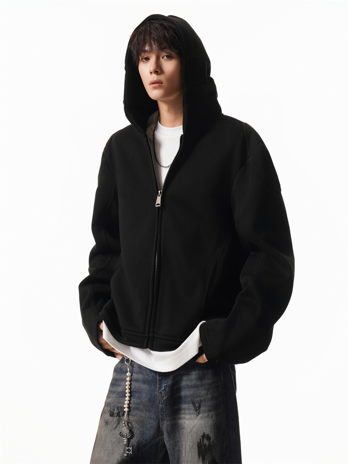 Cleanfit Short Crop Heavyweight Hoodie Jacket for Men Autumn Loose Oversized Hooded Zip-Up Sweatshirt with Regular Shoulders