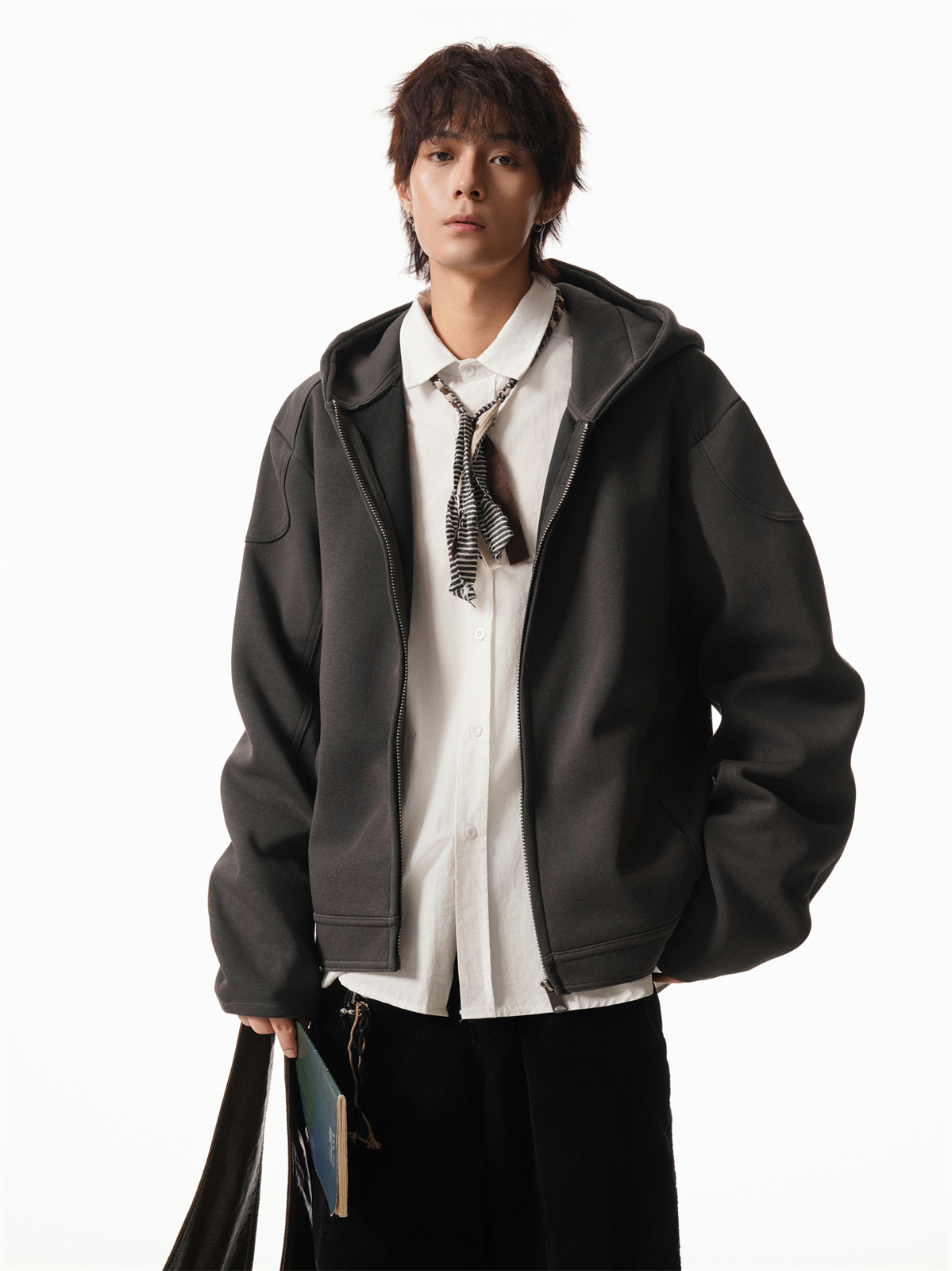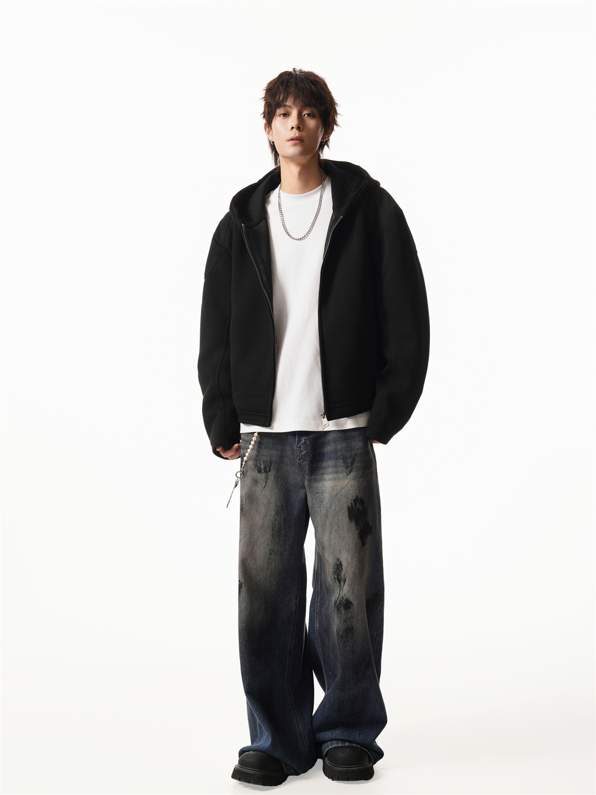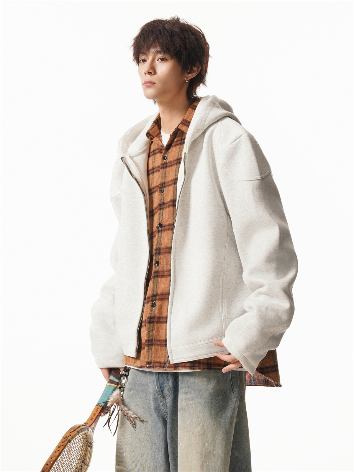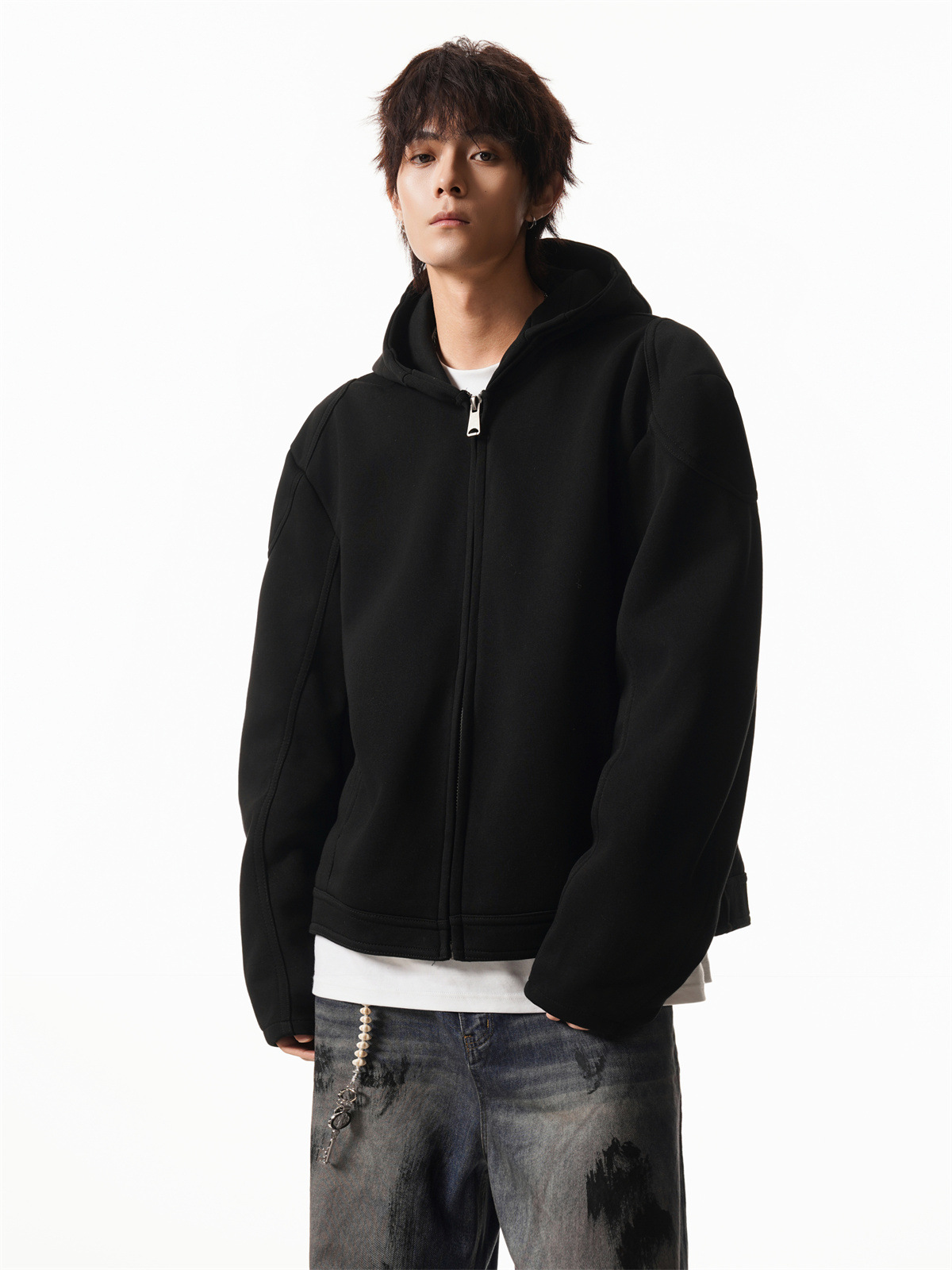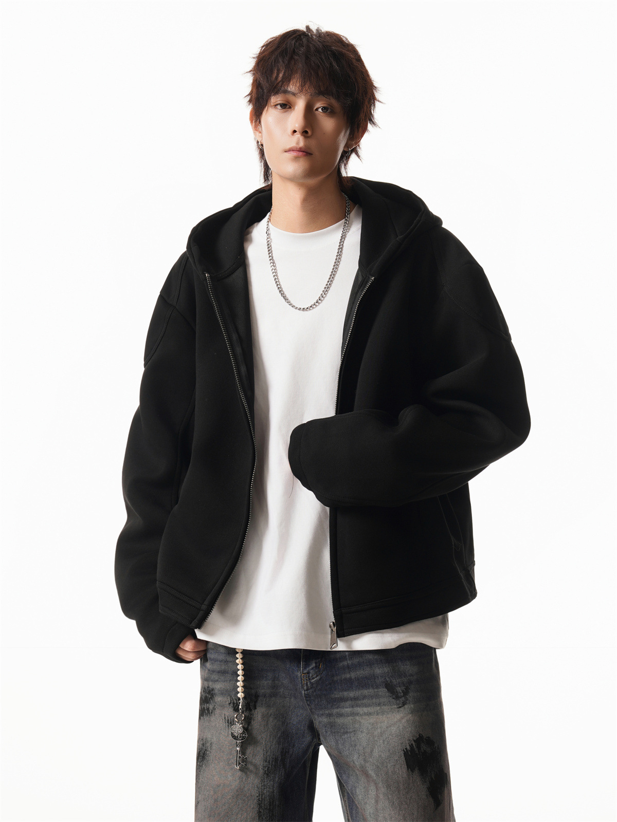 Cleanfit Short Crop Heavyweight Hoodie Jacket for Men Autumn Loose Oversized Hooded Zip-Up Sweatshirt with Regular Shoulders