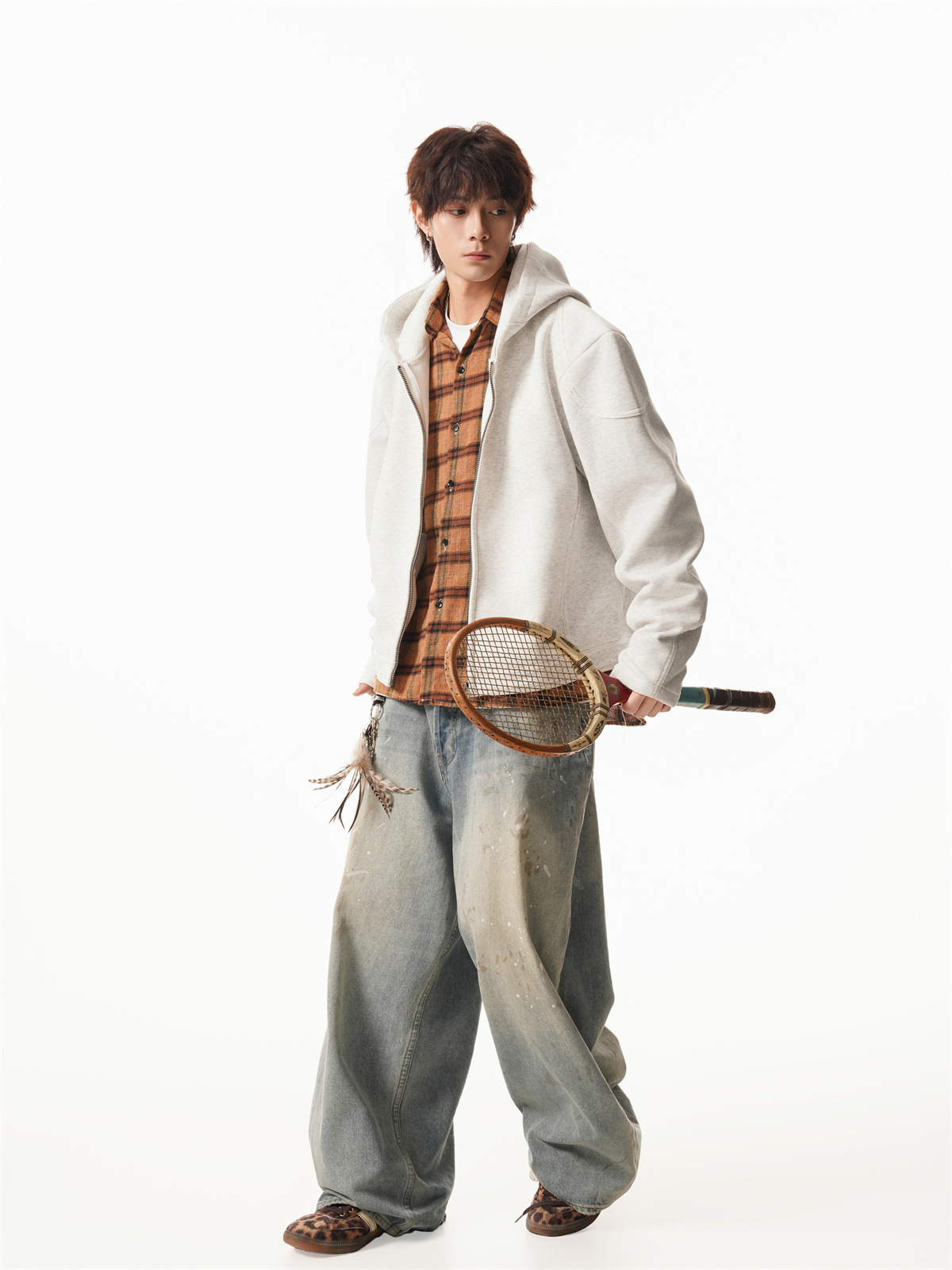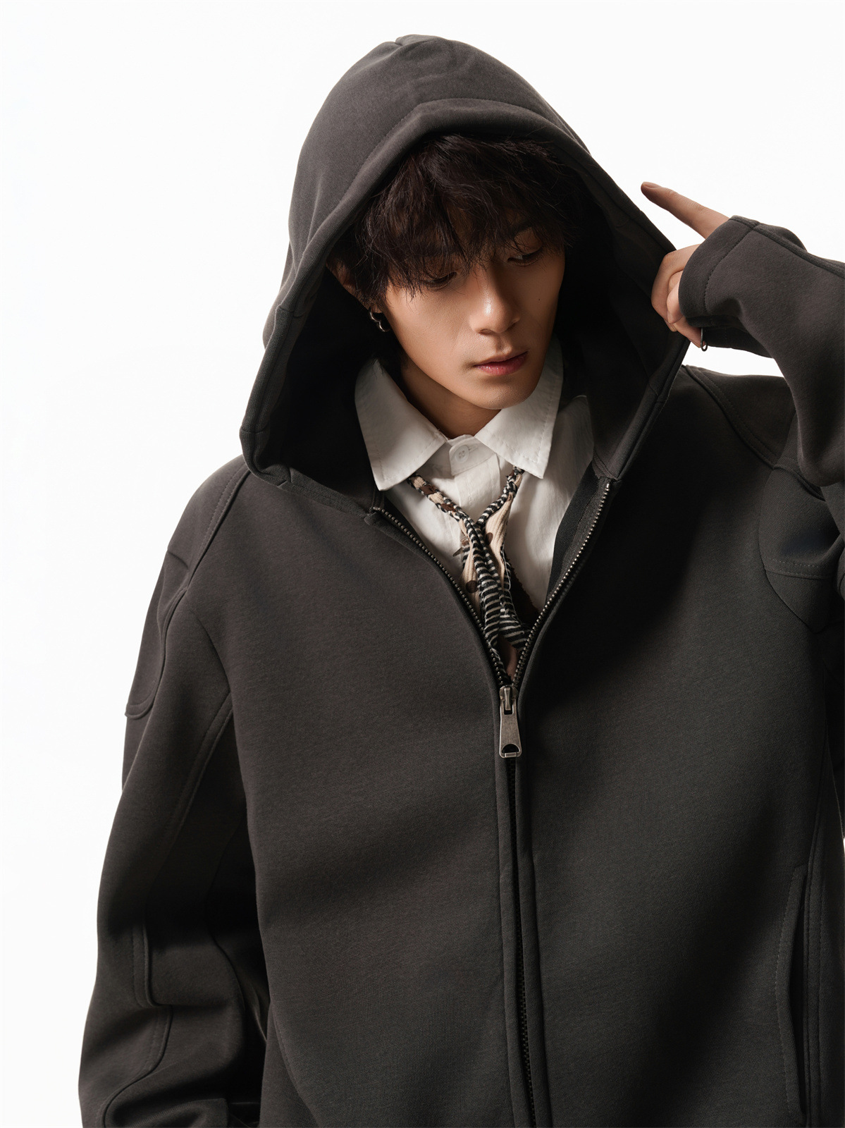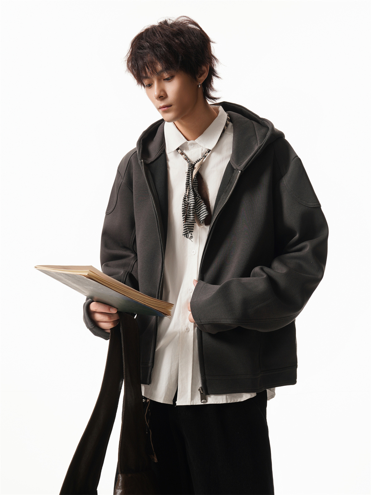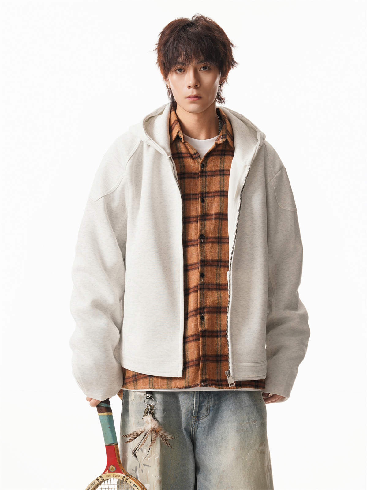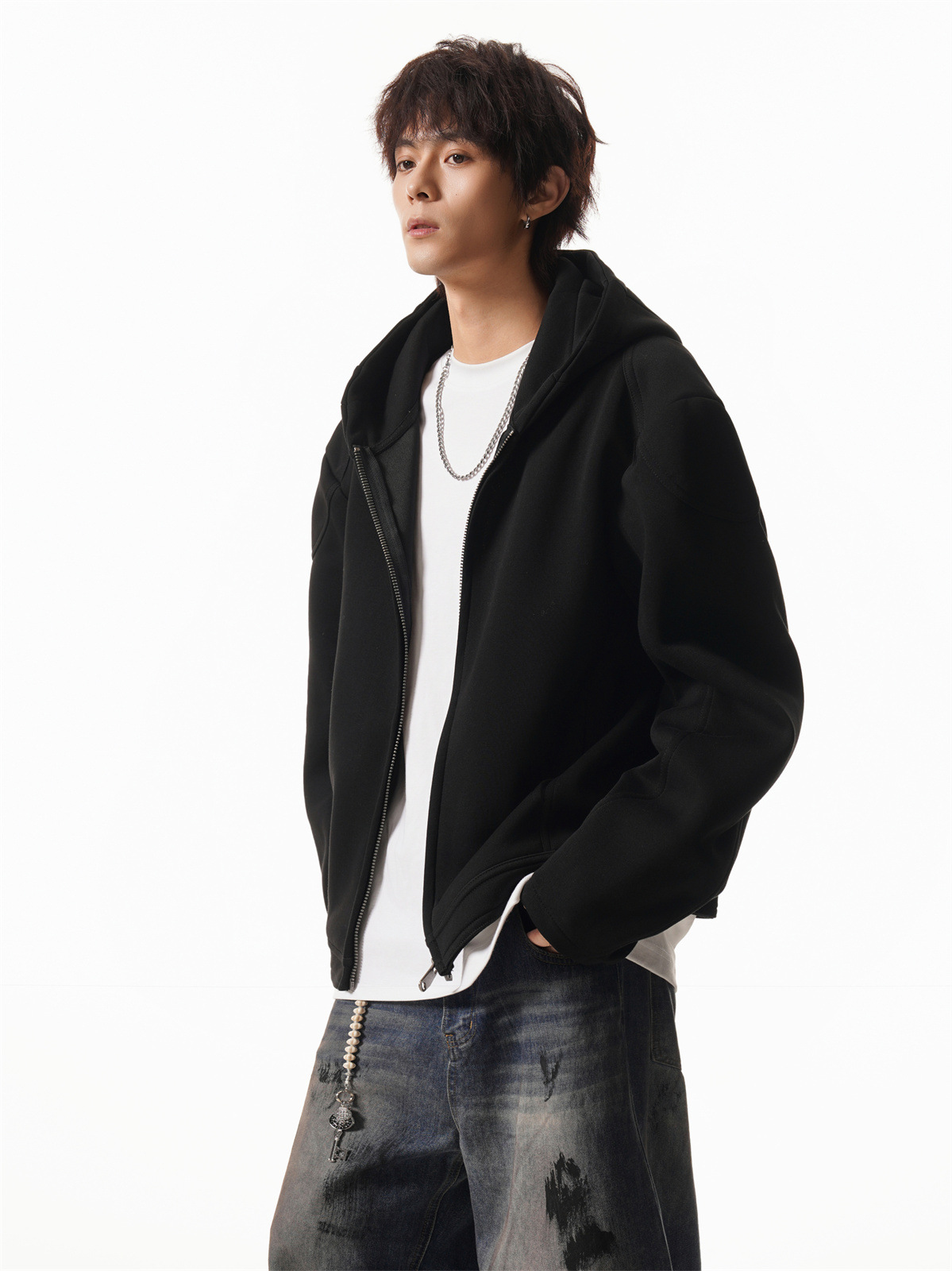 Cleanfit Short Crop Heavyweight Hoodie Jacket for Men Autumn Loose Oversized Hooded Zip-Up Sweatshirt with Regular Shoulders