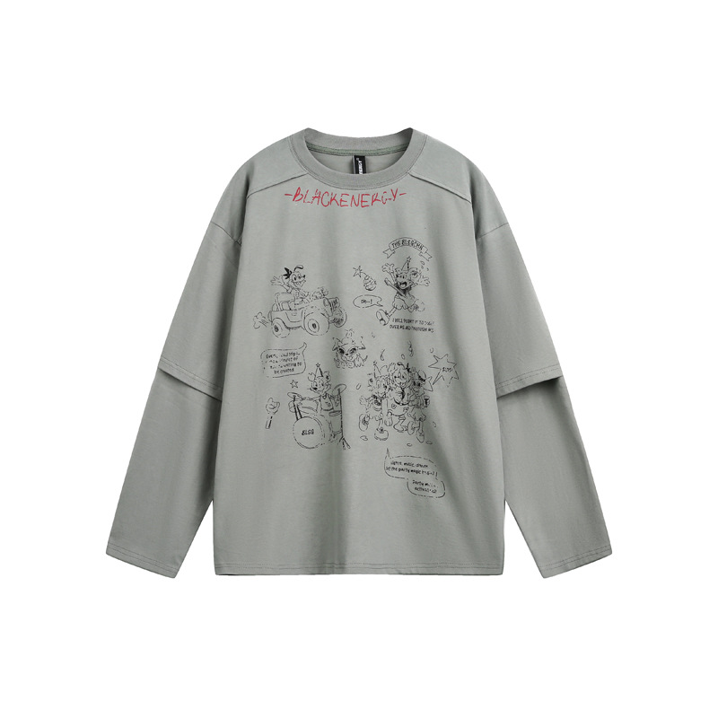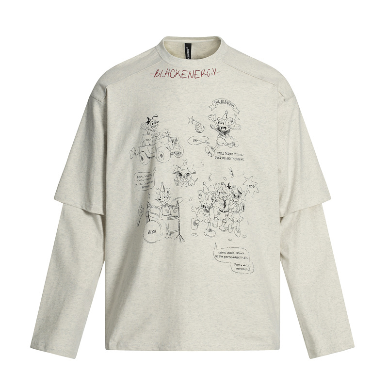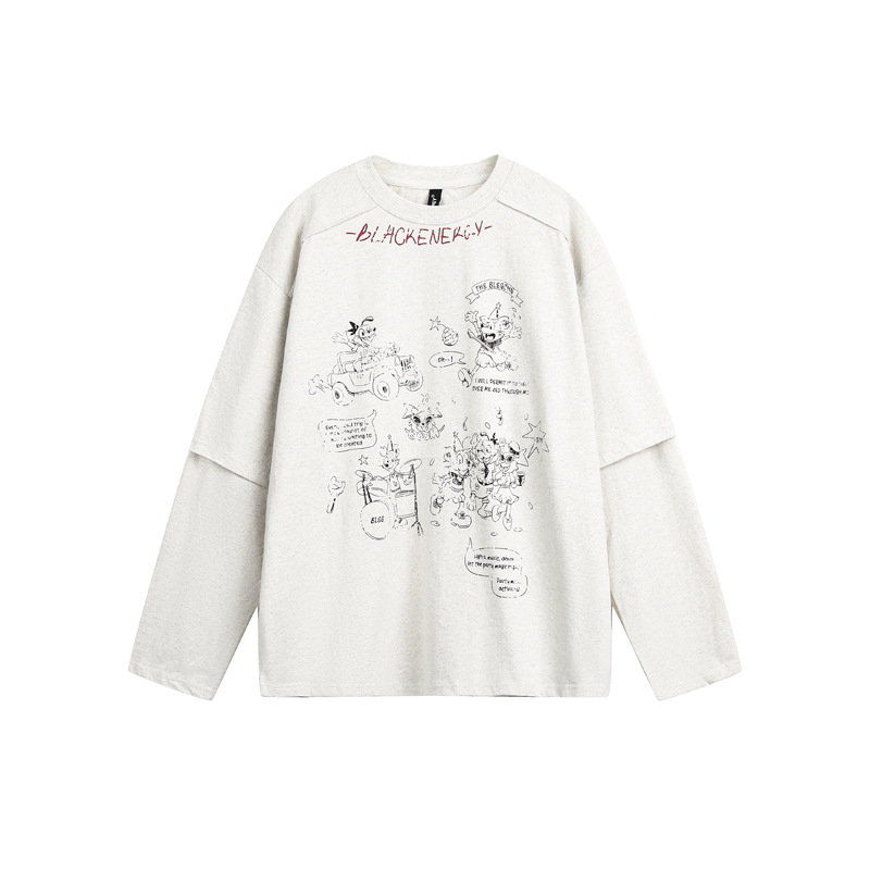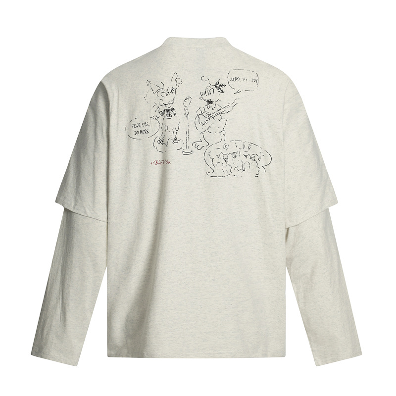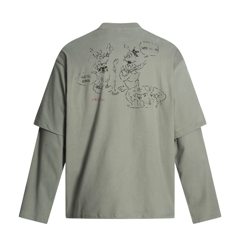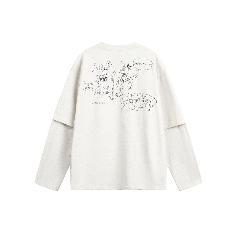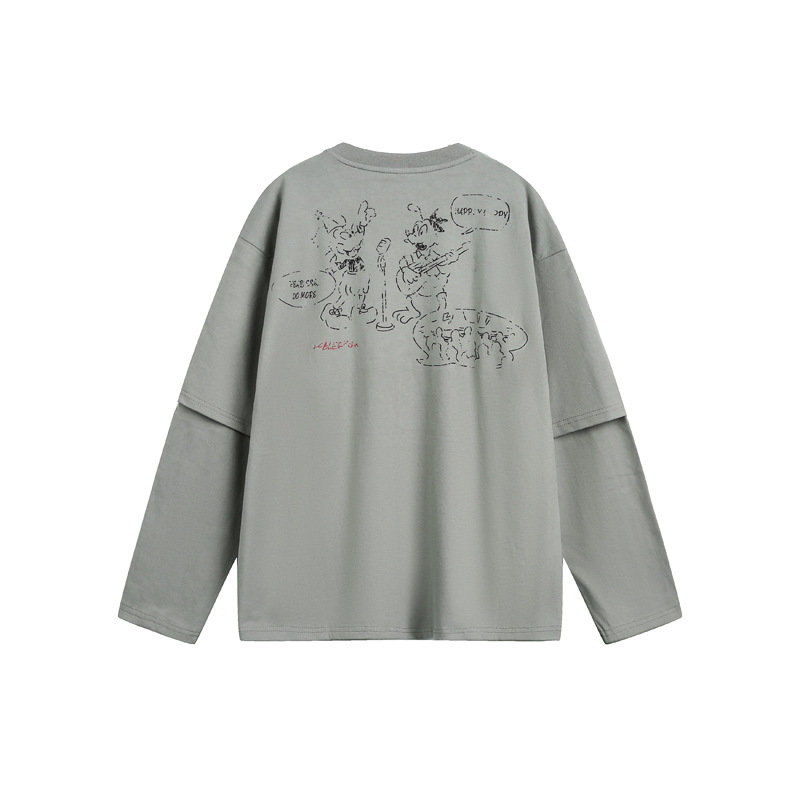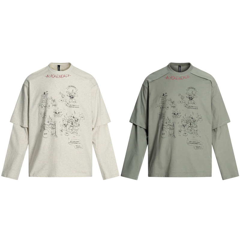 Cartoon Print Fake Two-Piece Long Sleeve T-Shirt For Men And Women | MuddyStock Originals