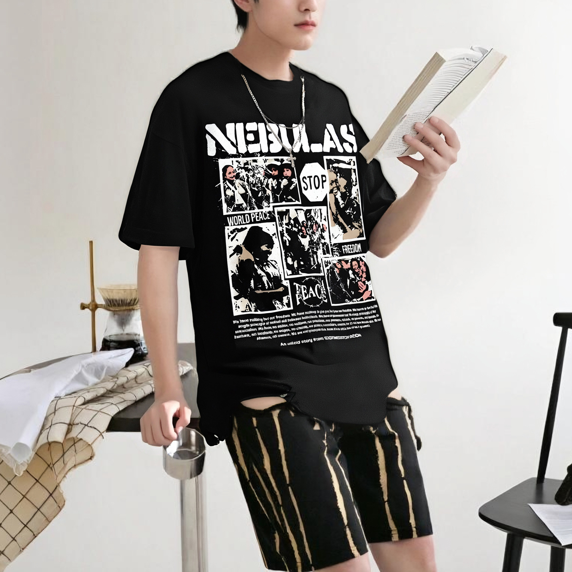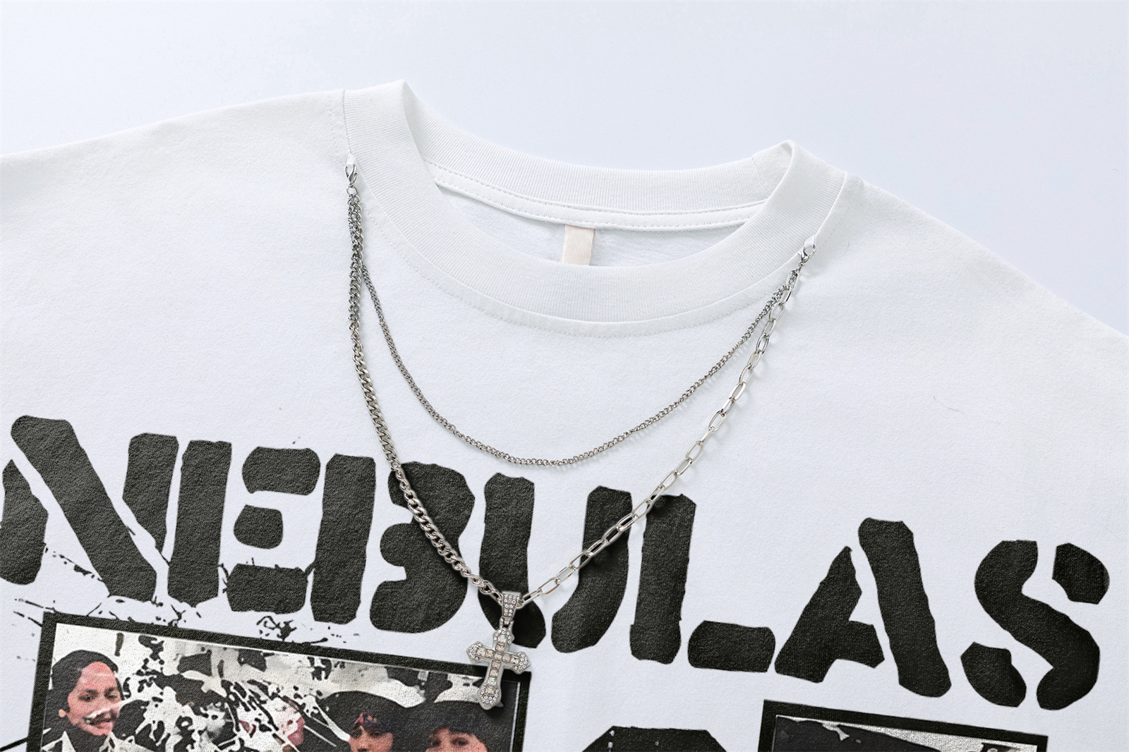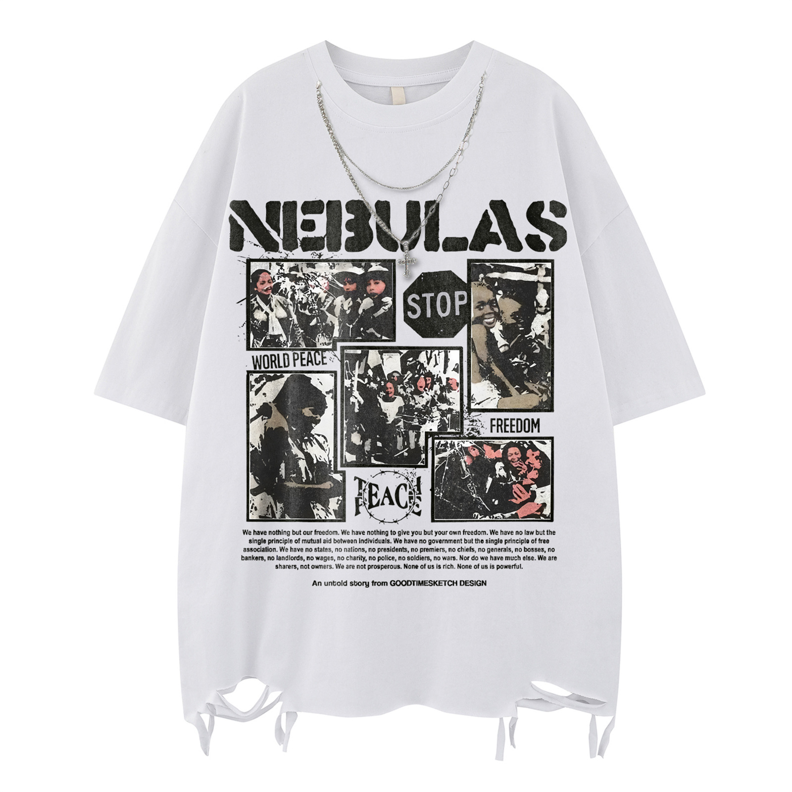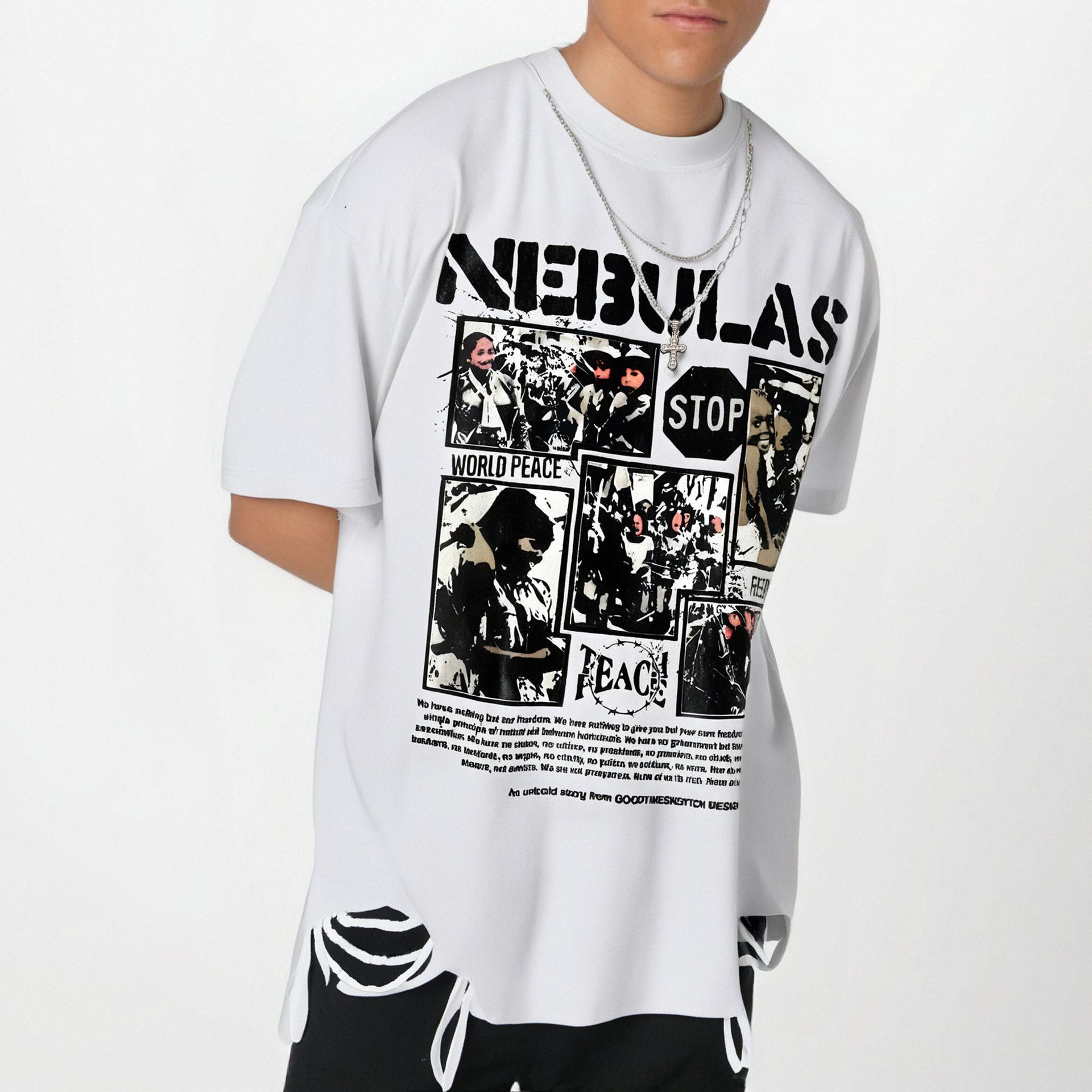 High Street Hem Distressed Necklace Decorated Design Short Sleeve T-Shirt For Men And Women | MuddyStock Originals