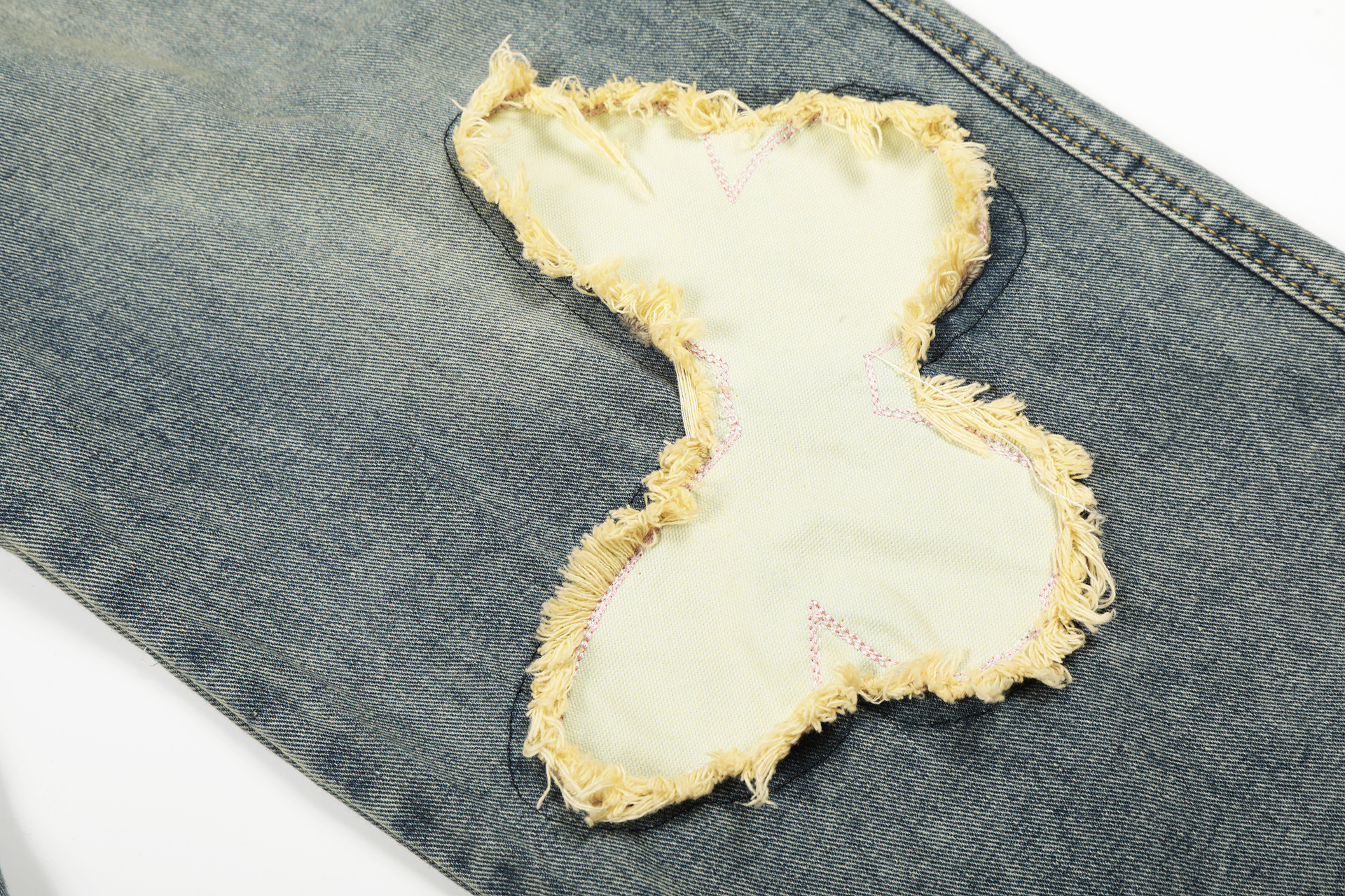 Loose Fit Denim Pants with Patchwork Decoration For Women | MuddyStock Originals