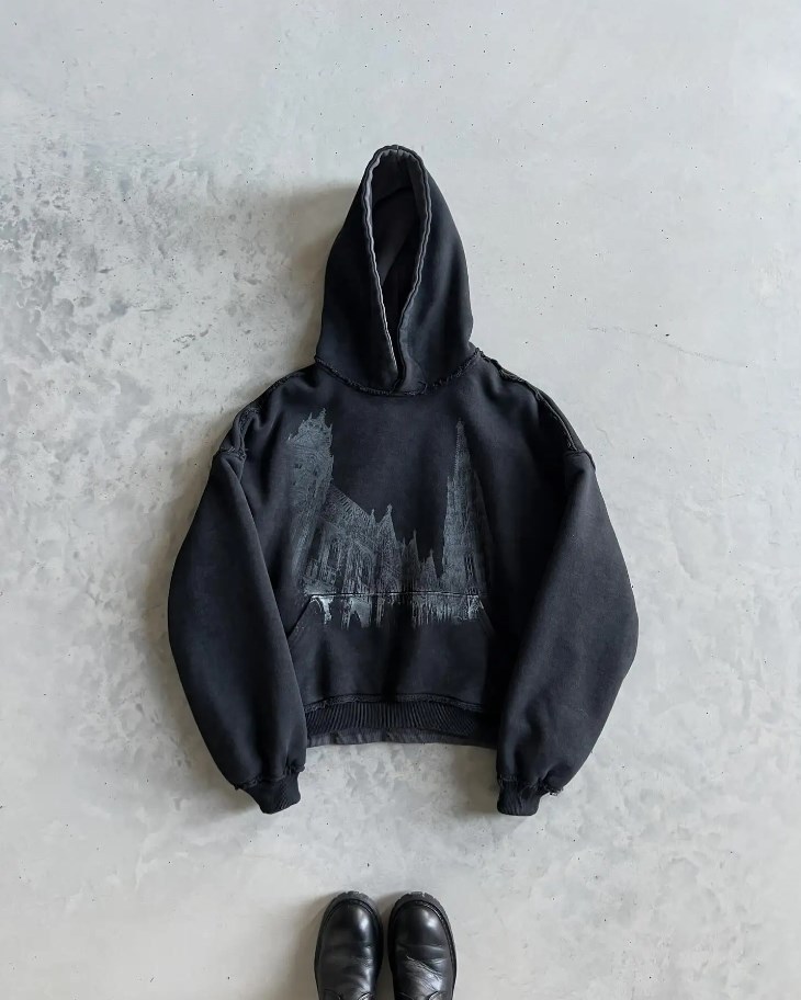 Loose-fit Dark-style Retro Printed Hoodie For Men Vintage-inspired graphics meet contemporary oversized tailoring in this men's hoodie, where dark colorways amplify retro aesthetic appeal. The relaxed fit prioritizes comfort and movement while bold printed detailing anchors the piece as a statement layer. Essential for those seeking nostalgic design with modern proportions and streetwear credibility. Curated by MuddyStock