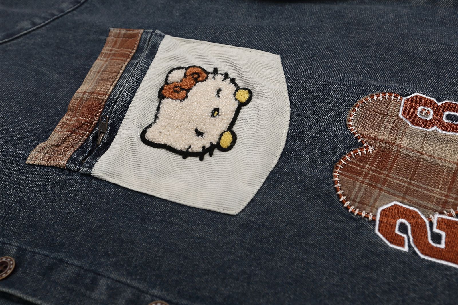 Retro Cartoon Embroidery Denim Long Sleeve Shirt For Women | MuddyStock Originals