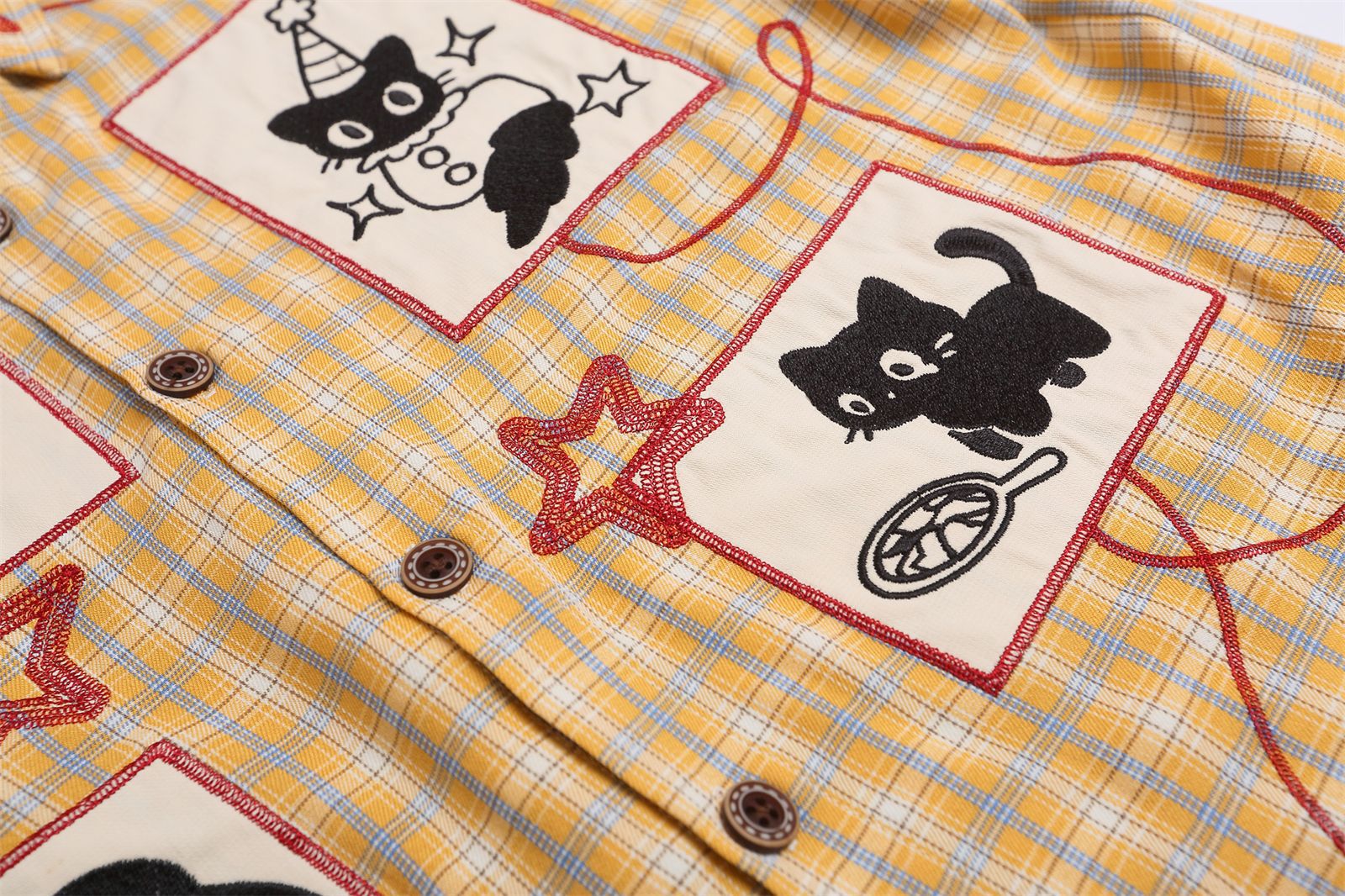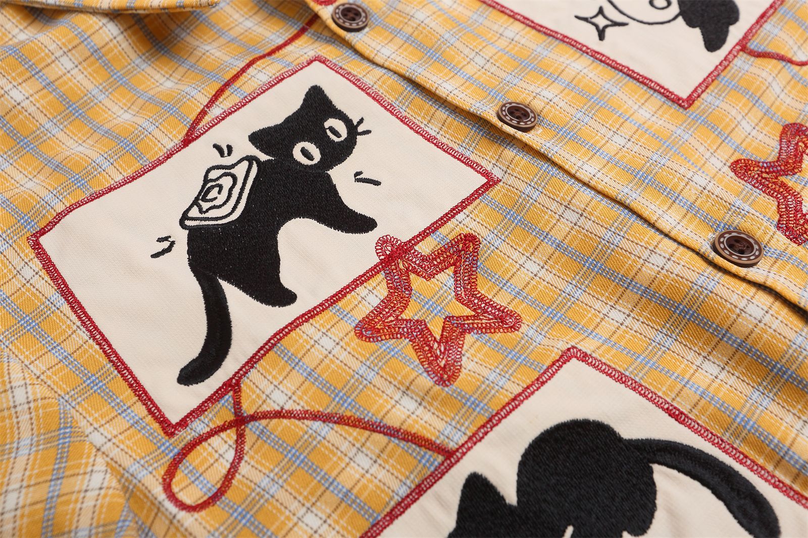Retro Cute Cat Applique Embroidery Short Sleeve Shirt For Women | MuddyStock Originals