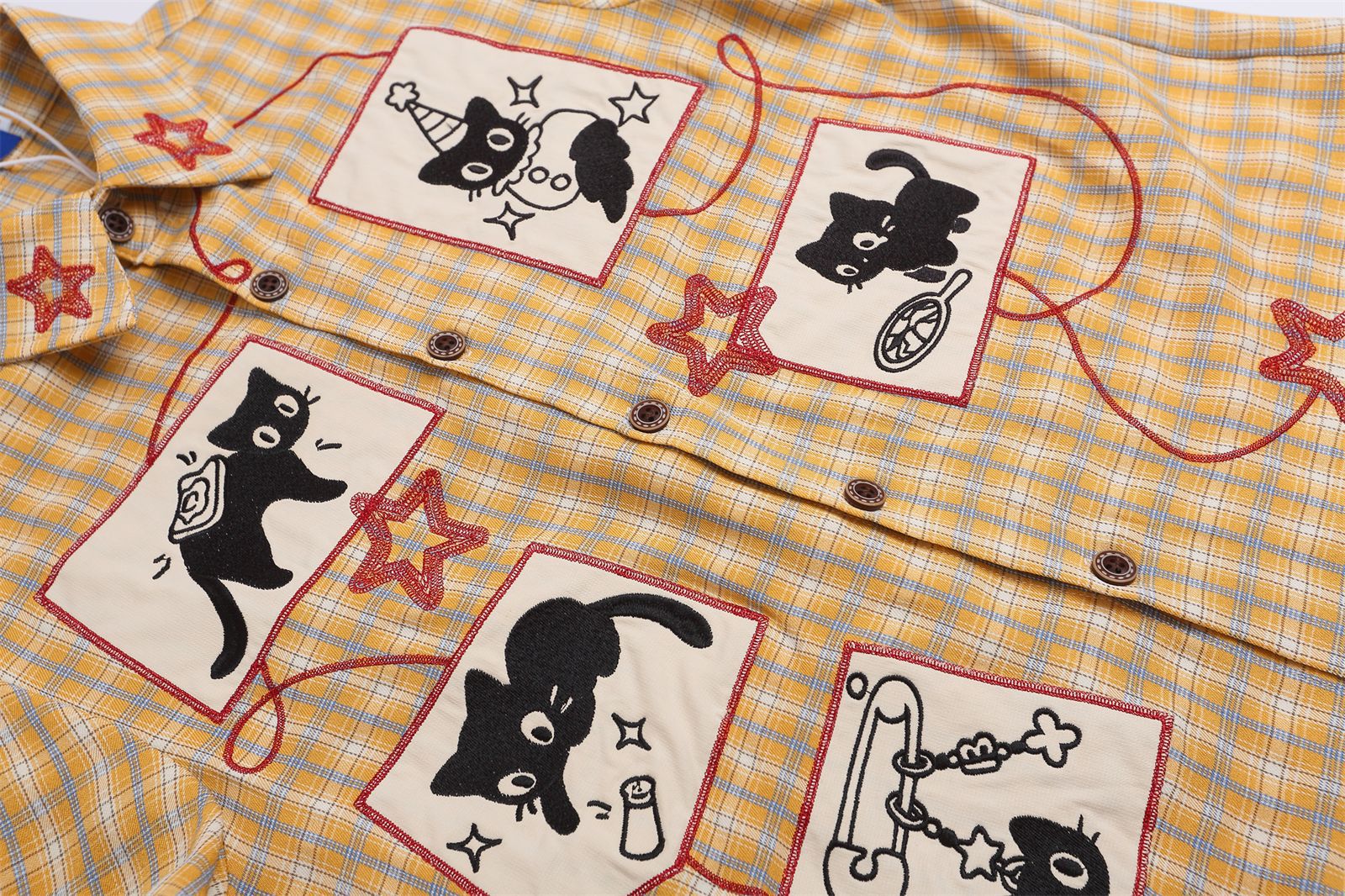 Crafted by MuddyStock Originals, this short sleeve shirt merges nostalgic charm with contemporary streetwear sensibility. The retro cat appliqué and embroidery detailing serve as a focal point—playful without veering into novelty territory. Constructed from breathable fabric with a relaxed fit, it layers effortlessly over basics or stands alone as a statement piece. A conversation starter that balances whimsy with wearability for those who appreciate character in their everyday pieces.