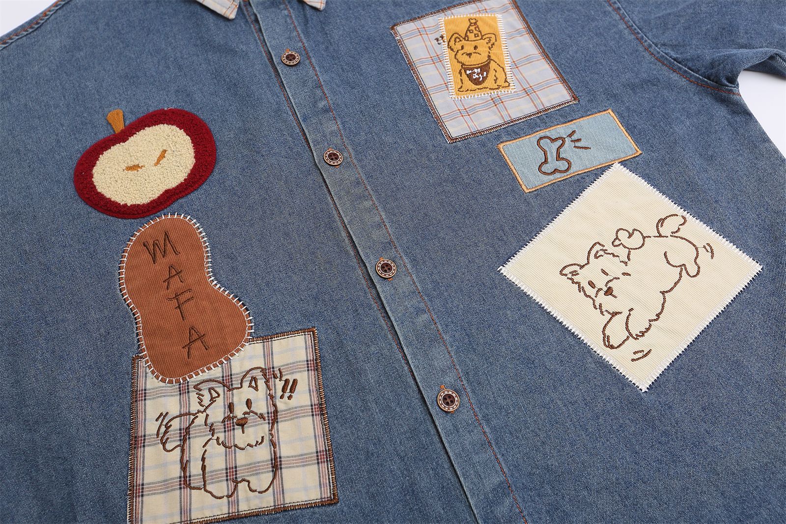 MuddyStock fuses vintage rebellion with modern edge in this retro dog embroidery denim shirt. The turn-down collar delivers classic sophistication while the intricate embroidered canine graphic injects personality and attitude. Strategic color-blocking creates visual depth that catches every eye in the room. Unisex fit, premium denim construction, and fearless design—this is the piece that transforms your everyday into a power move. Wear heritage. Own the moment.