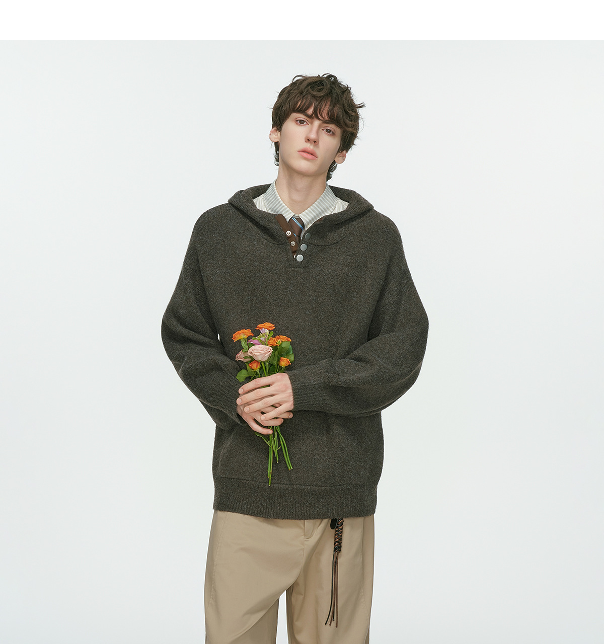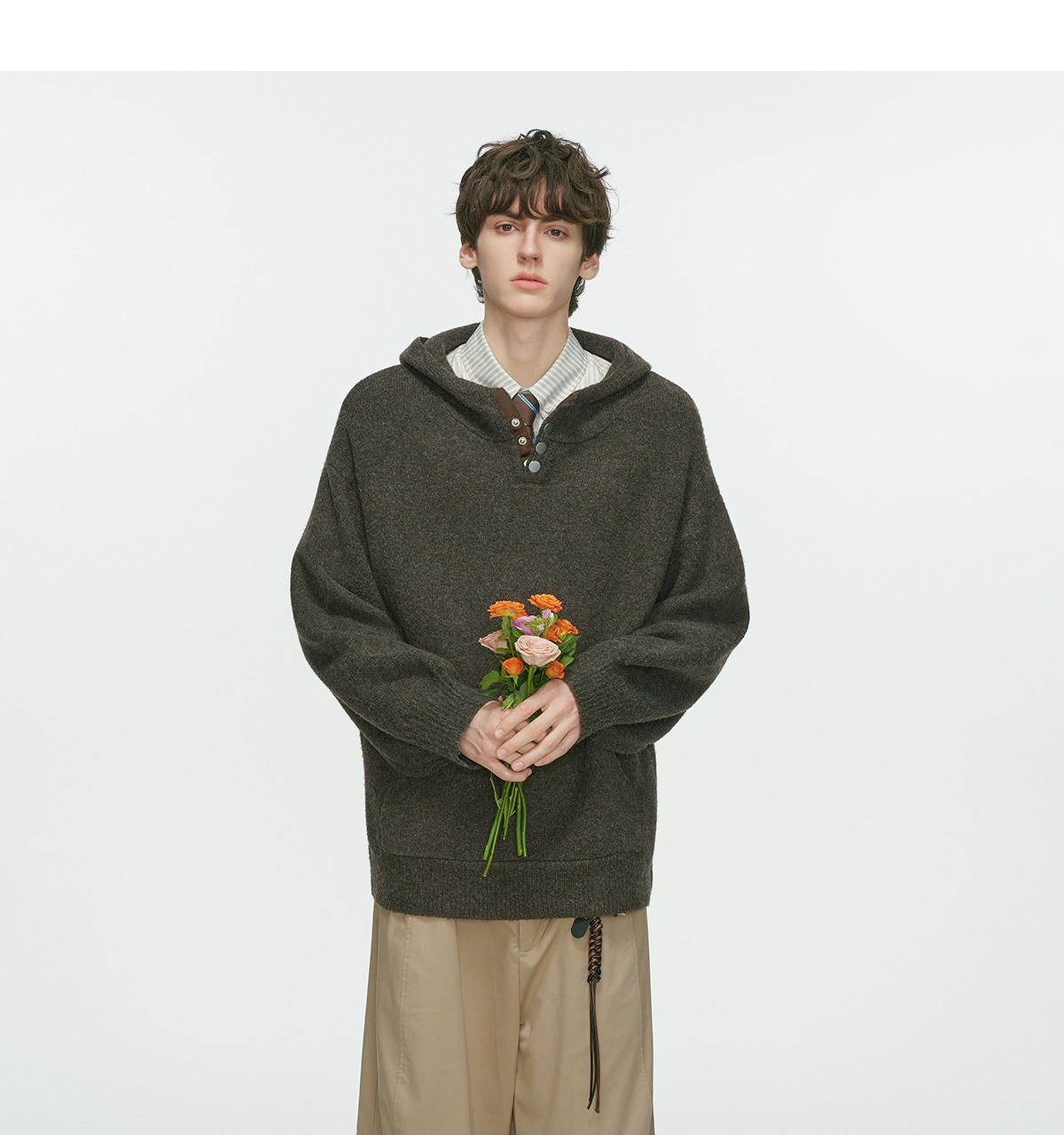 From MuddyStock, this loose-fit hoodie sweater combines vintage aesthetics with contemporary comfort. Crafted in a solid color palette, it features a classic button-front closure that adds refined detail to casual wear. The relaxed silhouette works seamlessly for layering or standalone styling, making it versatile for streetwear and everyday looks. Premium construction ensures durability through regular wear and washing. Perfect for those seeking timeless pieces that bridge retro charm with modern sensibility.