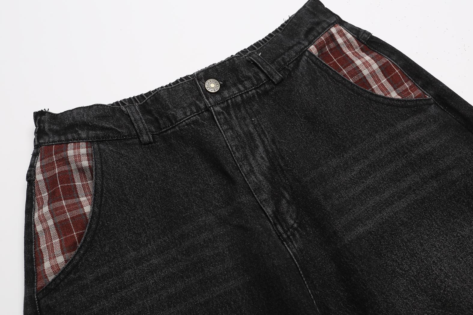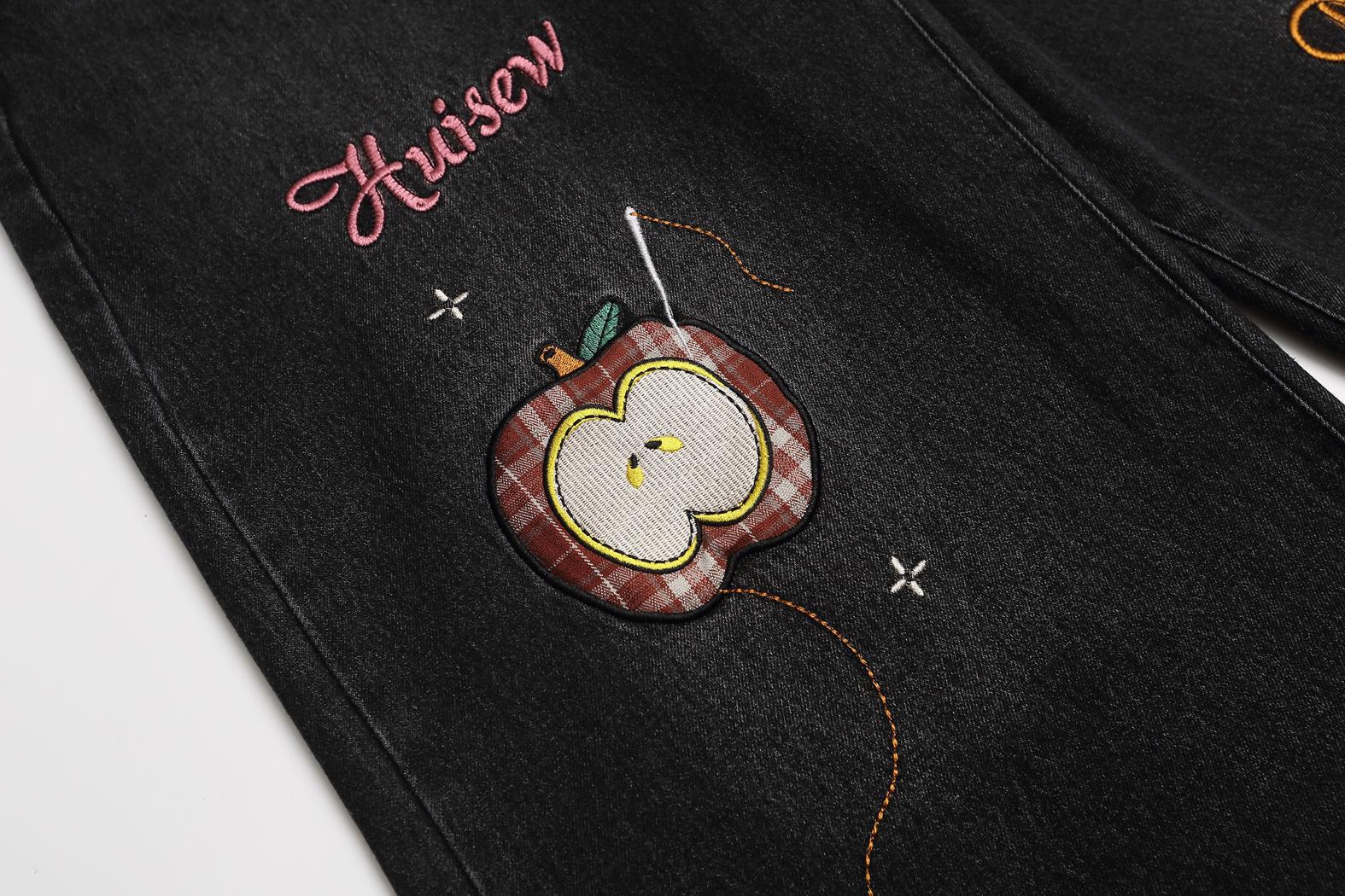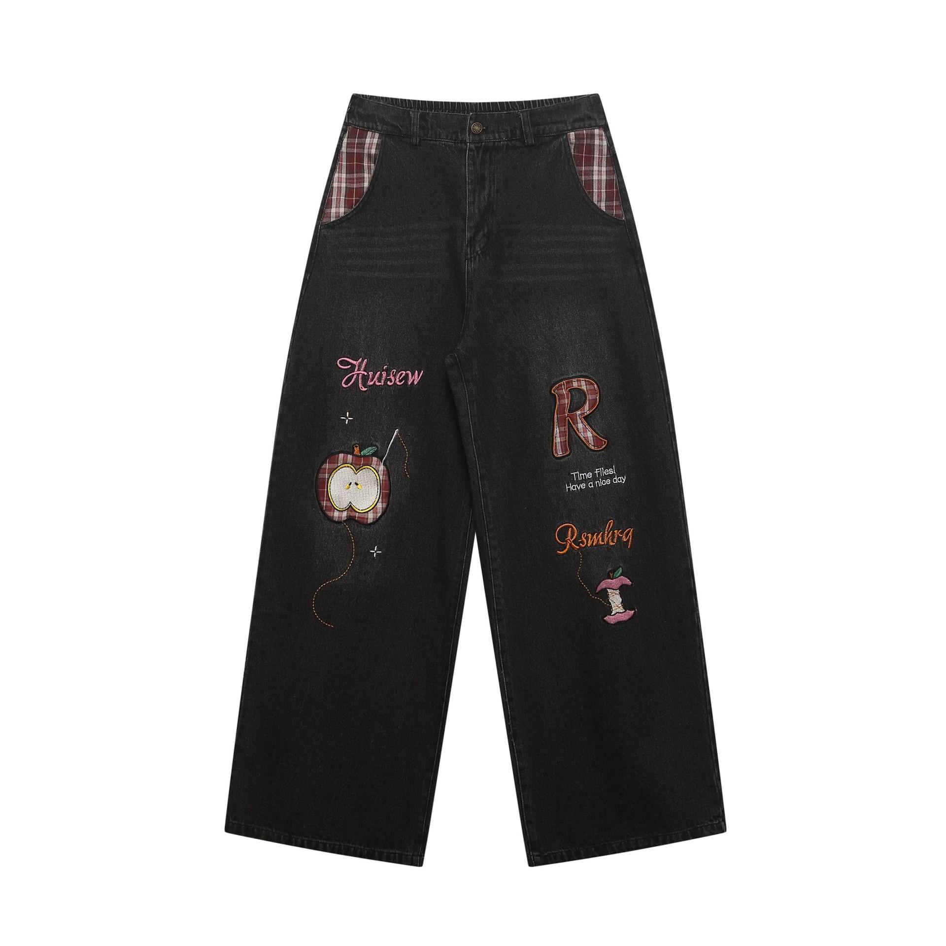 Retro plaid fun apple embroidered jeans for men and women | MuddyStock Originals