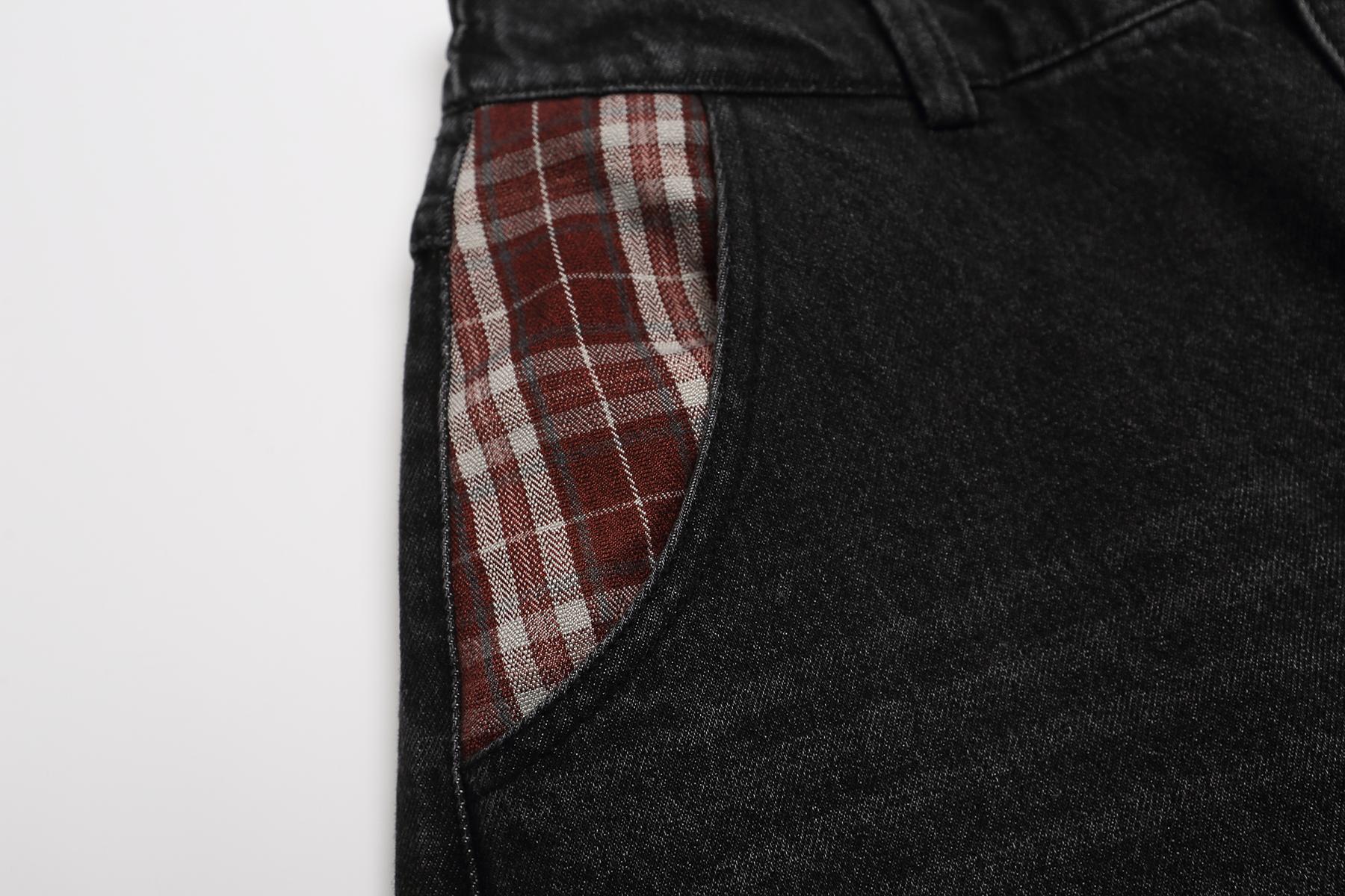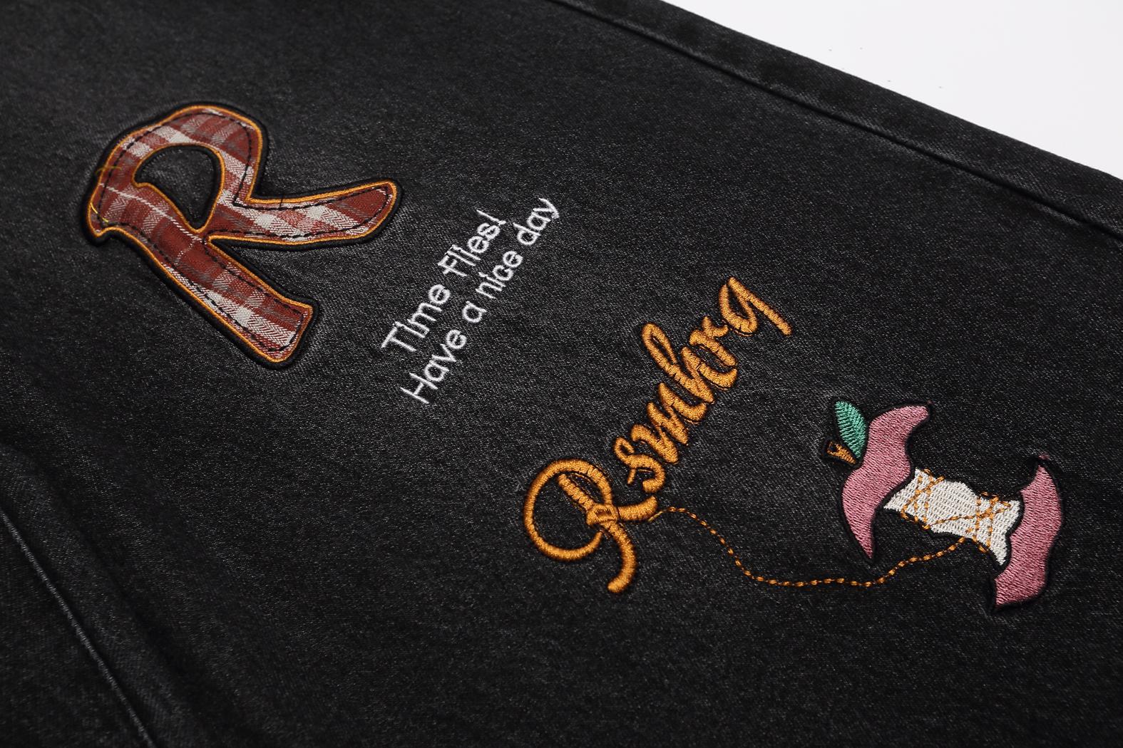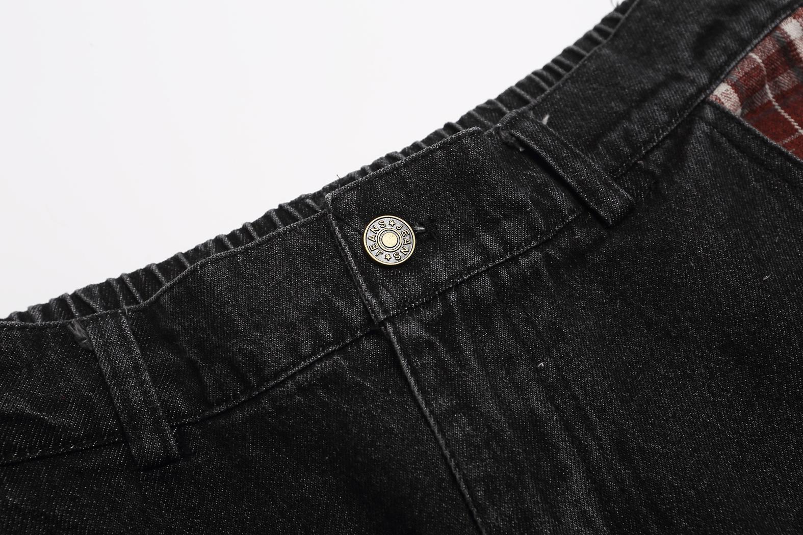 Retro plaid fun apple embroidered jeans for men and women | MuddyStock Originals