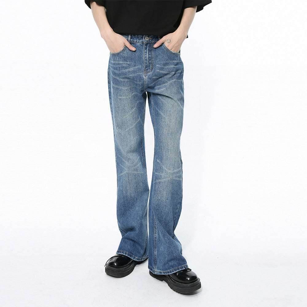 Retro Slimming Water Ripple Slightly Flared Washed Jeans
