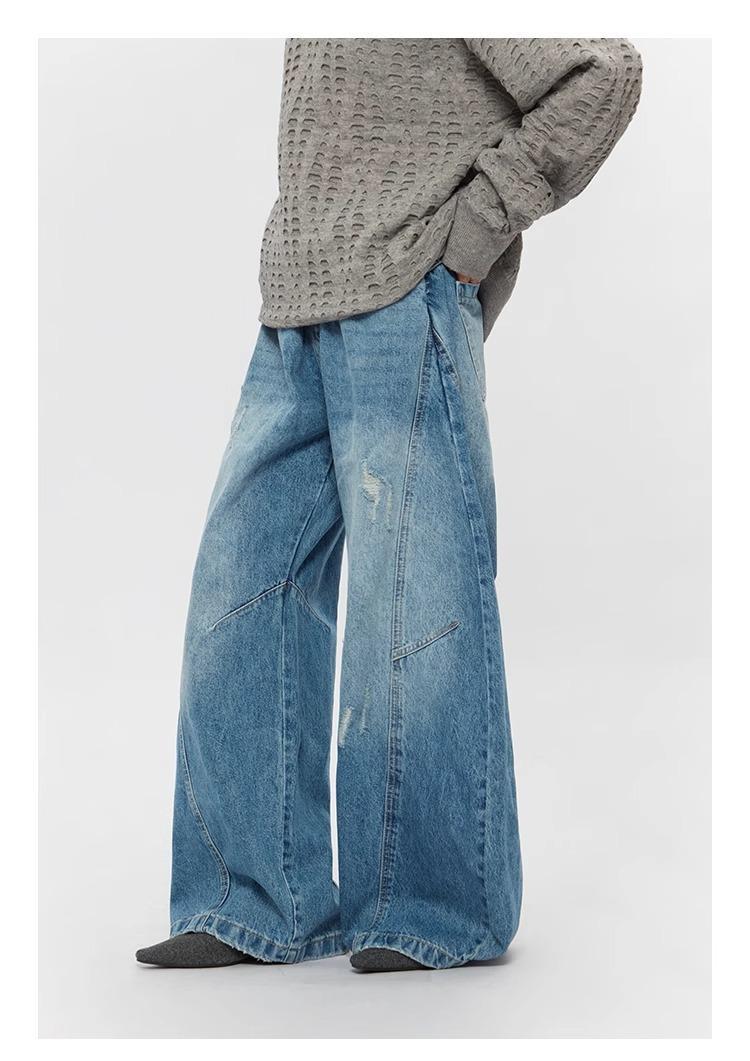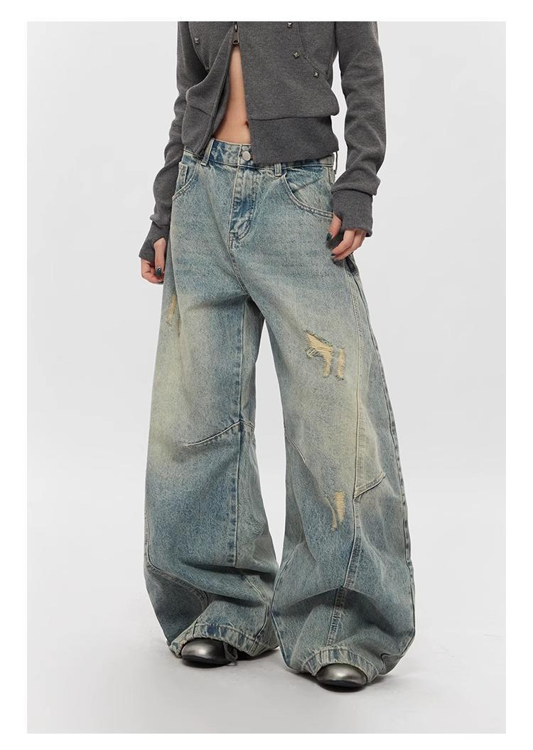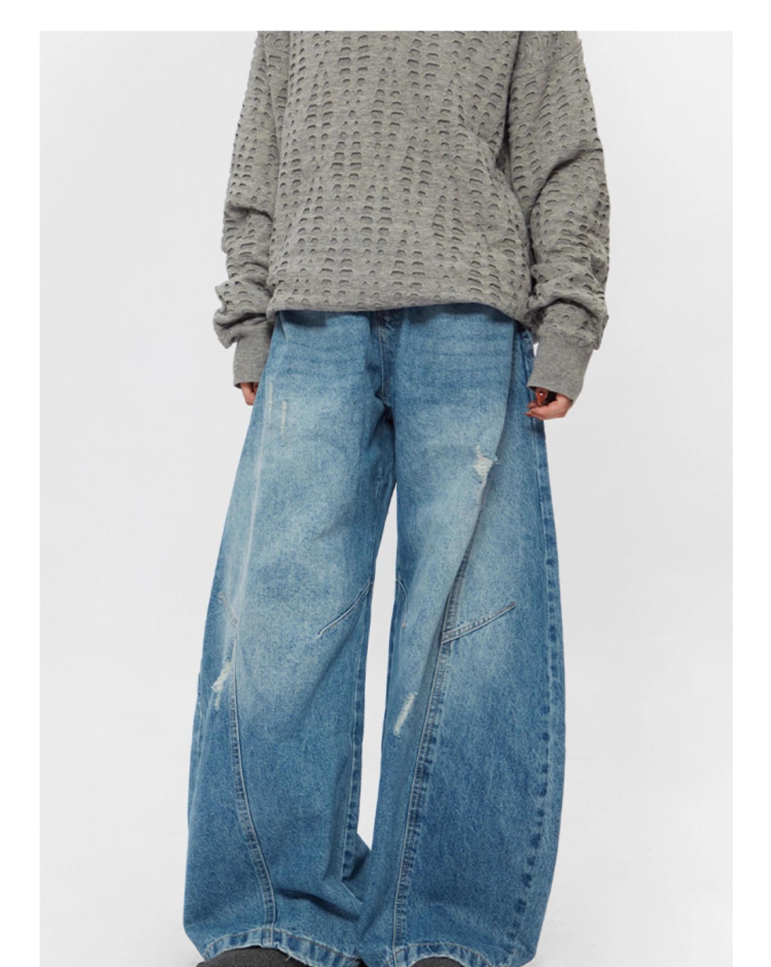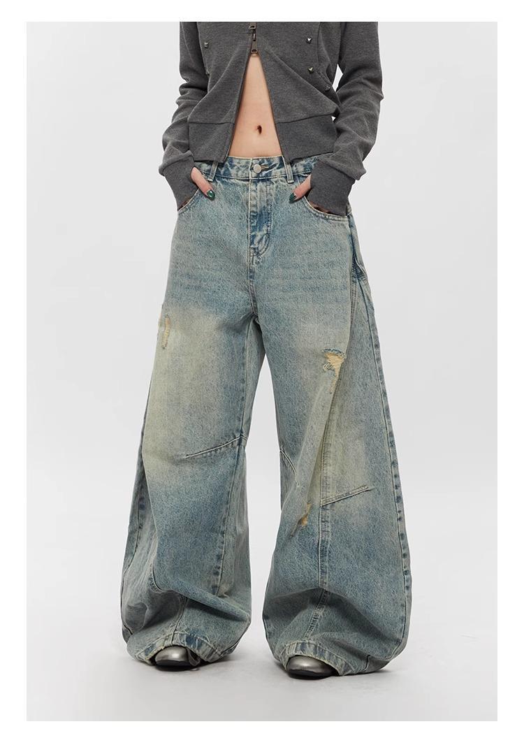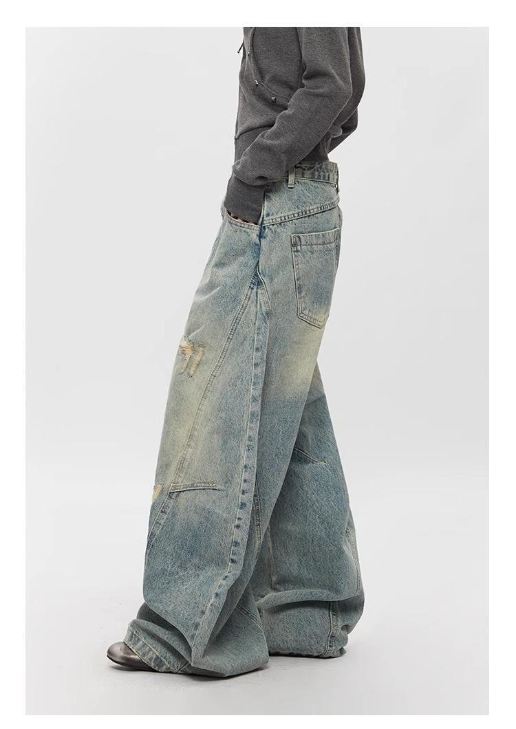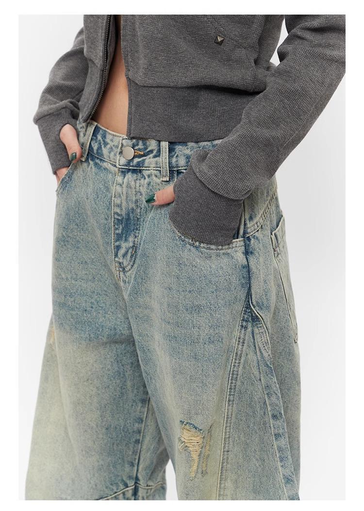 Ripped Denim Jeans Loose Straight-leg Design Couples Wide-leg Style American High-street Pants With A Cool Edgy Vibe