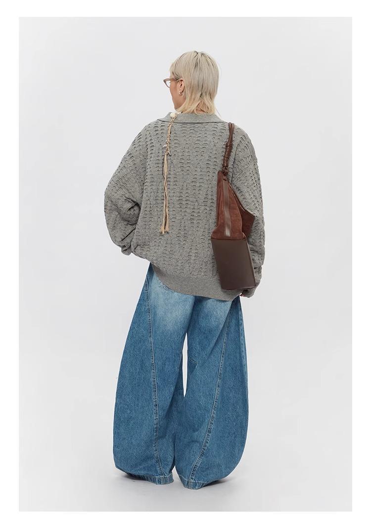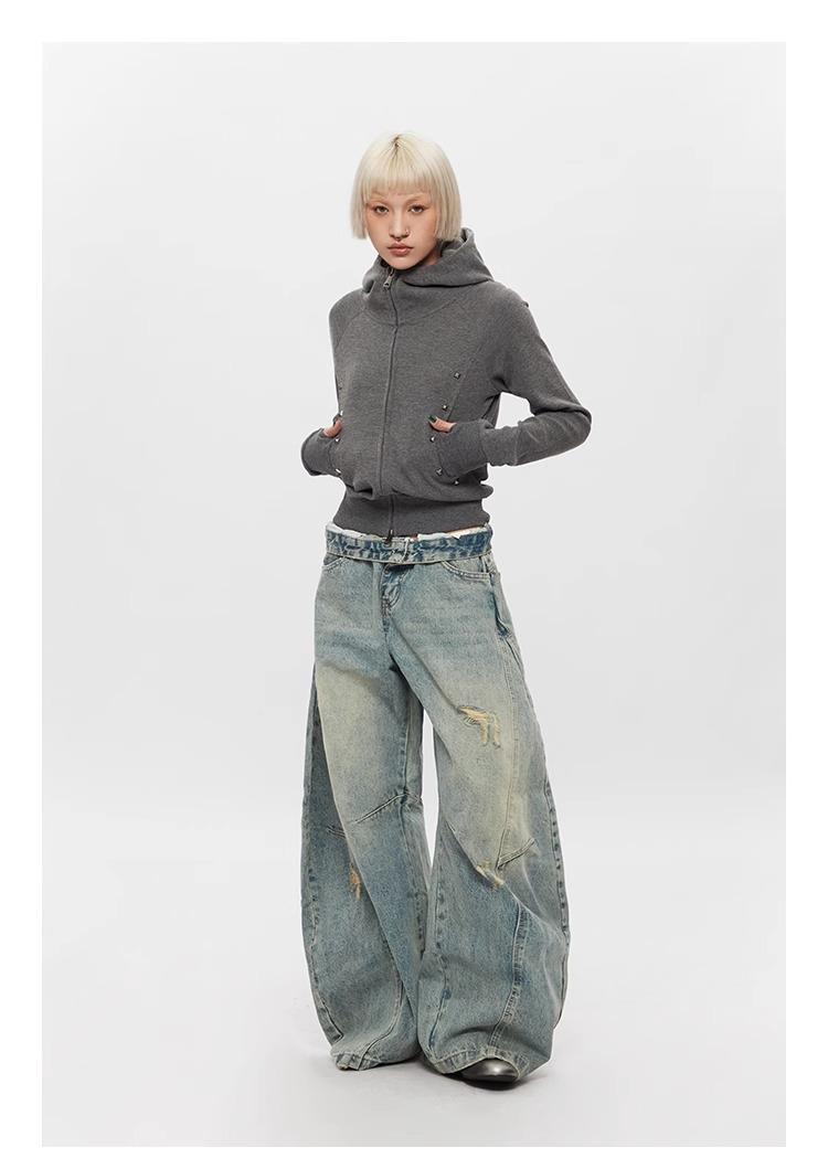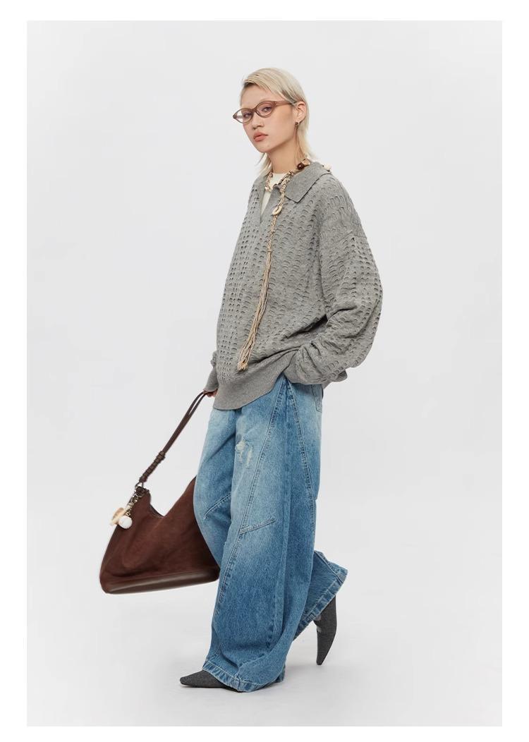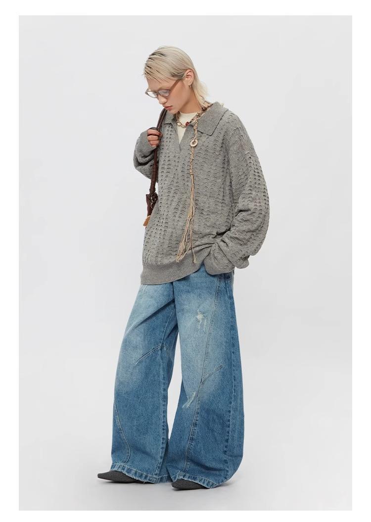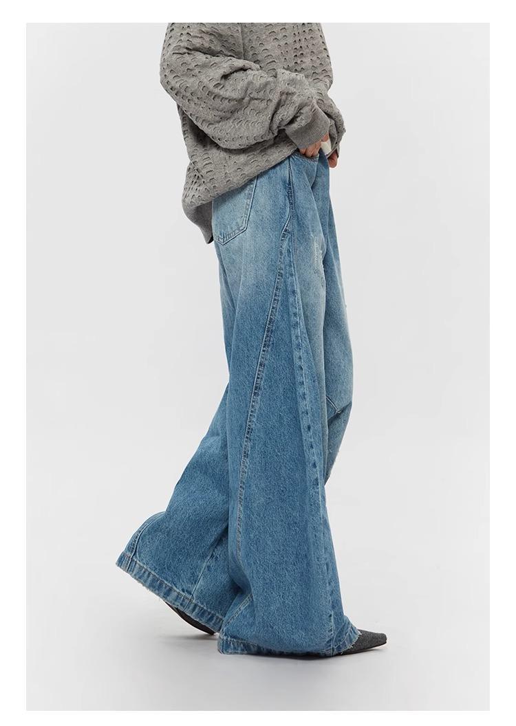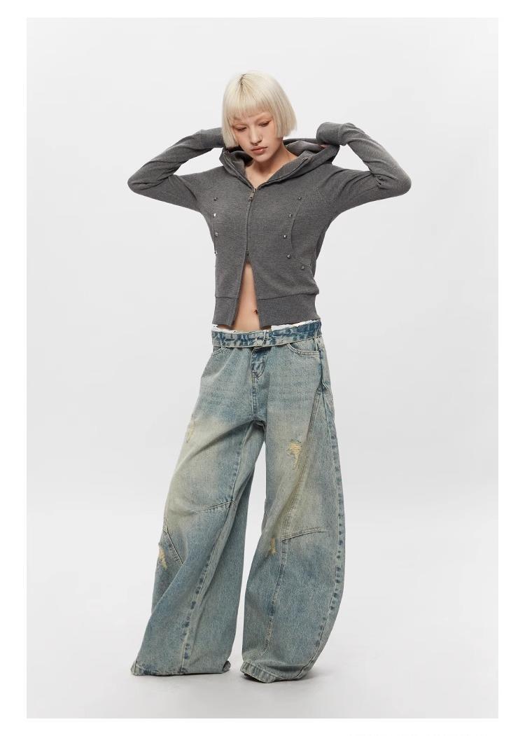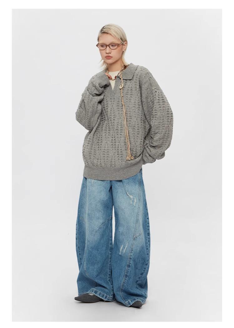 Ripped Denim Jeans Loose Straight-leg Design Couples Wide-leg Style American High-street Pants With A Cool Edgy Vibe