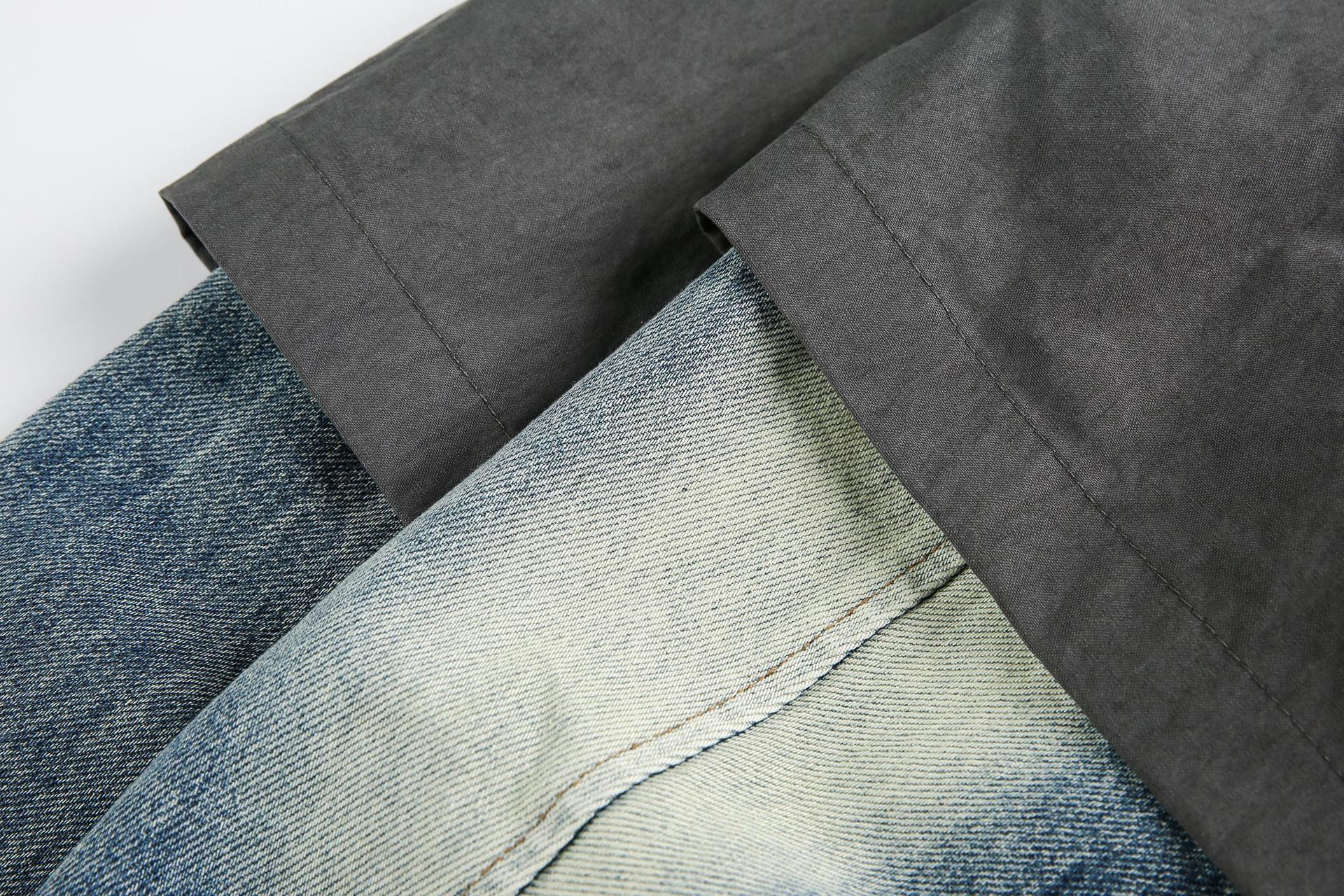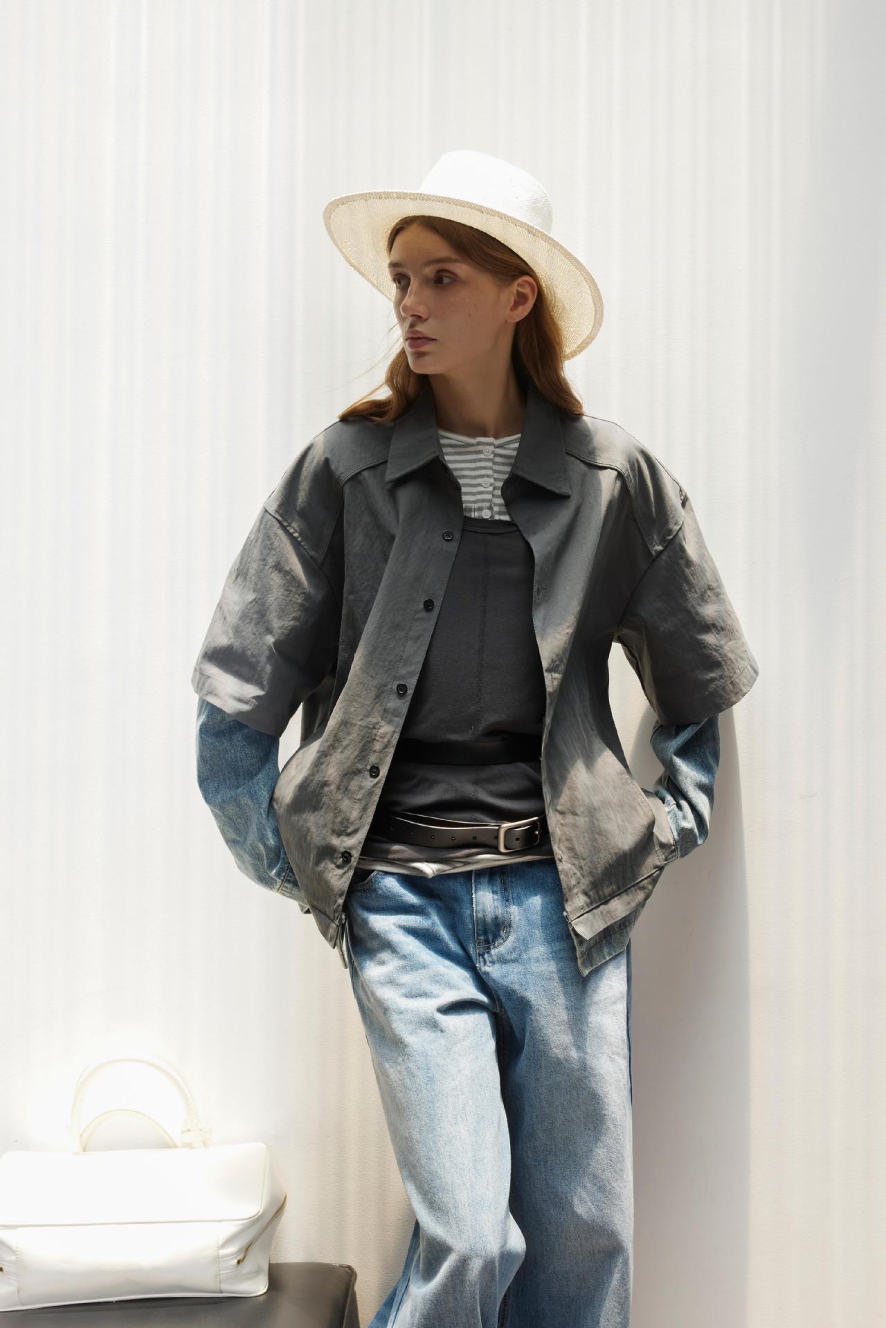 Splicing fake two denim shirts with retro loose fit for women | MuddyStock Originals