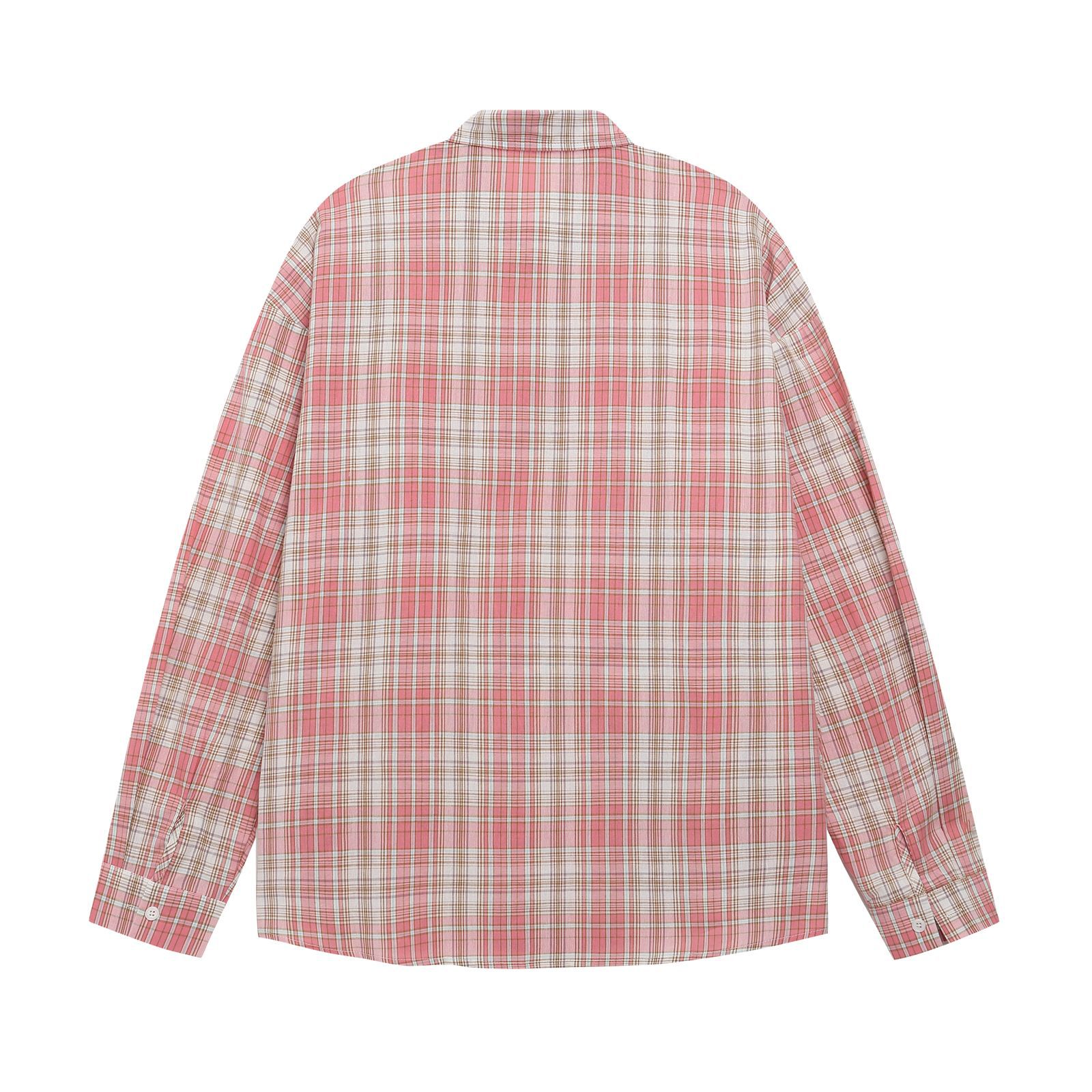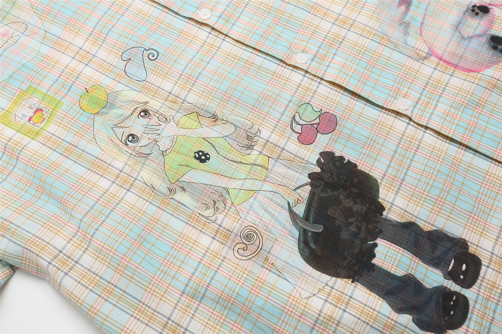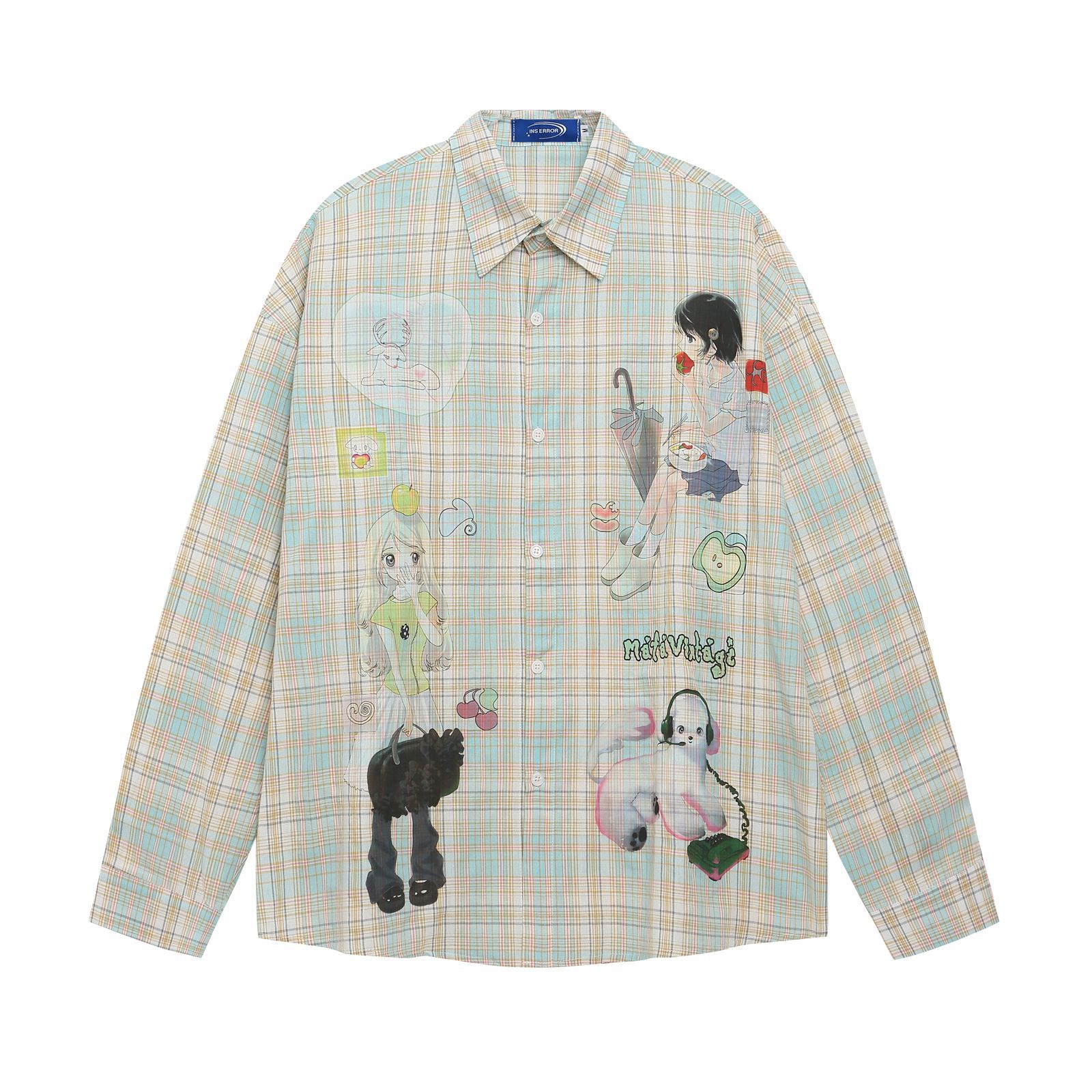 Style Fun Cartoon Print Plaid Long Sleeve Shirt Unisex Loose Fit All-Match Long Sleeve Blouse Jacket