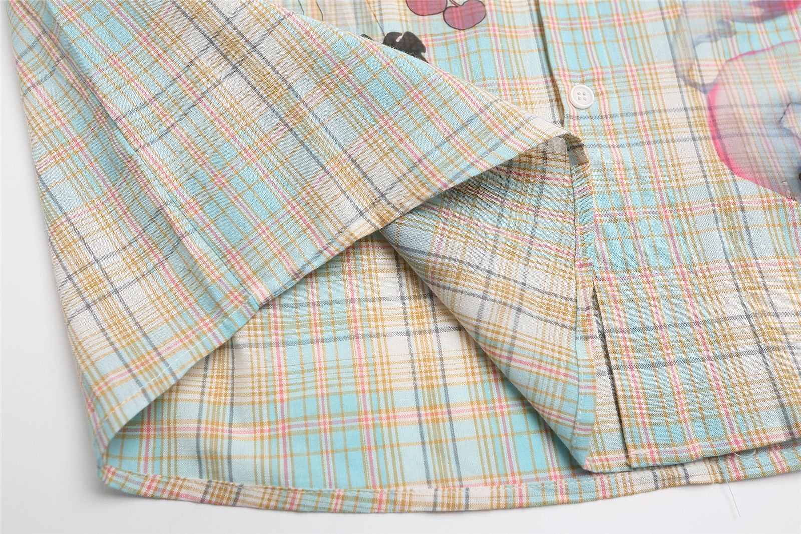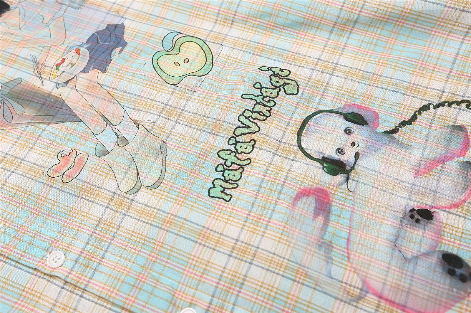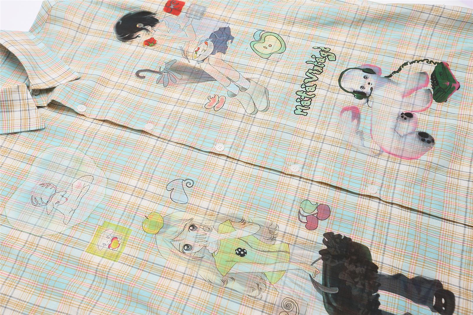 Style Fun Cartoon Print Plaid Long Sleeve Shirt Unisex Loose Fit All-Match Long Sleeve Blouse Jacket