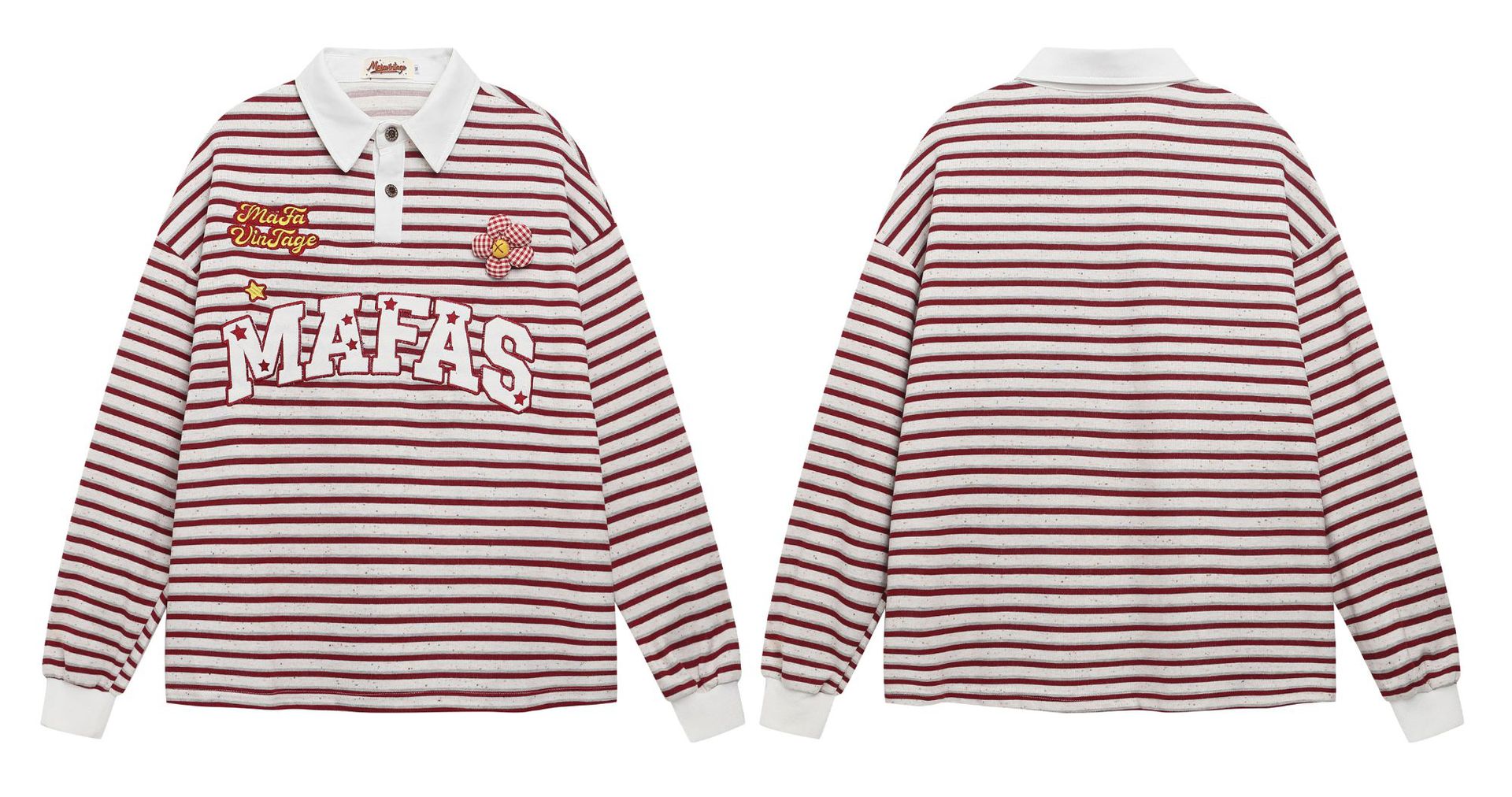 Letter Embroidered Loose Polo Collar Long Sleeve T-Shirt For Women | MuddyStock Originals