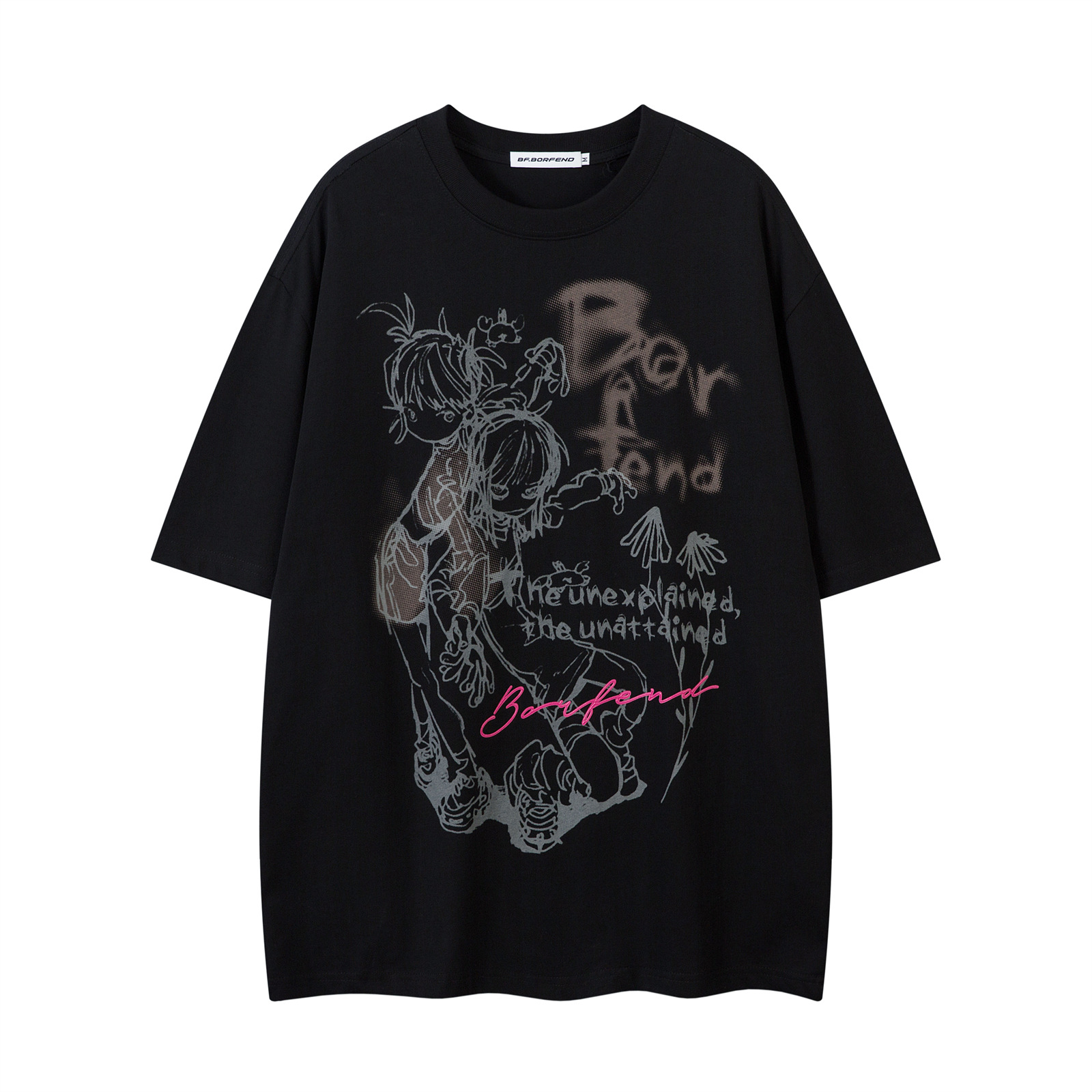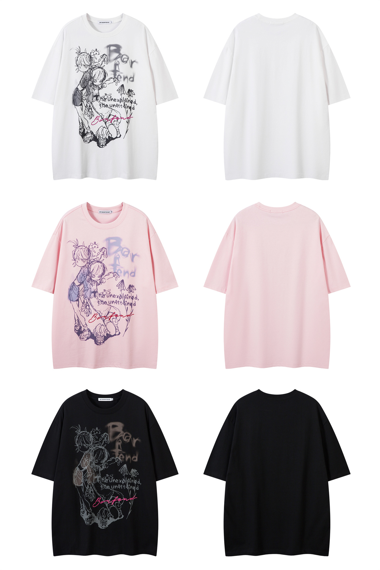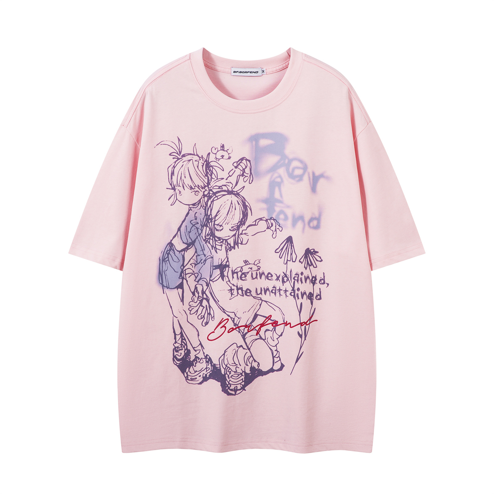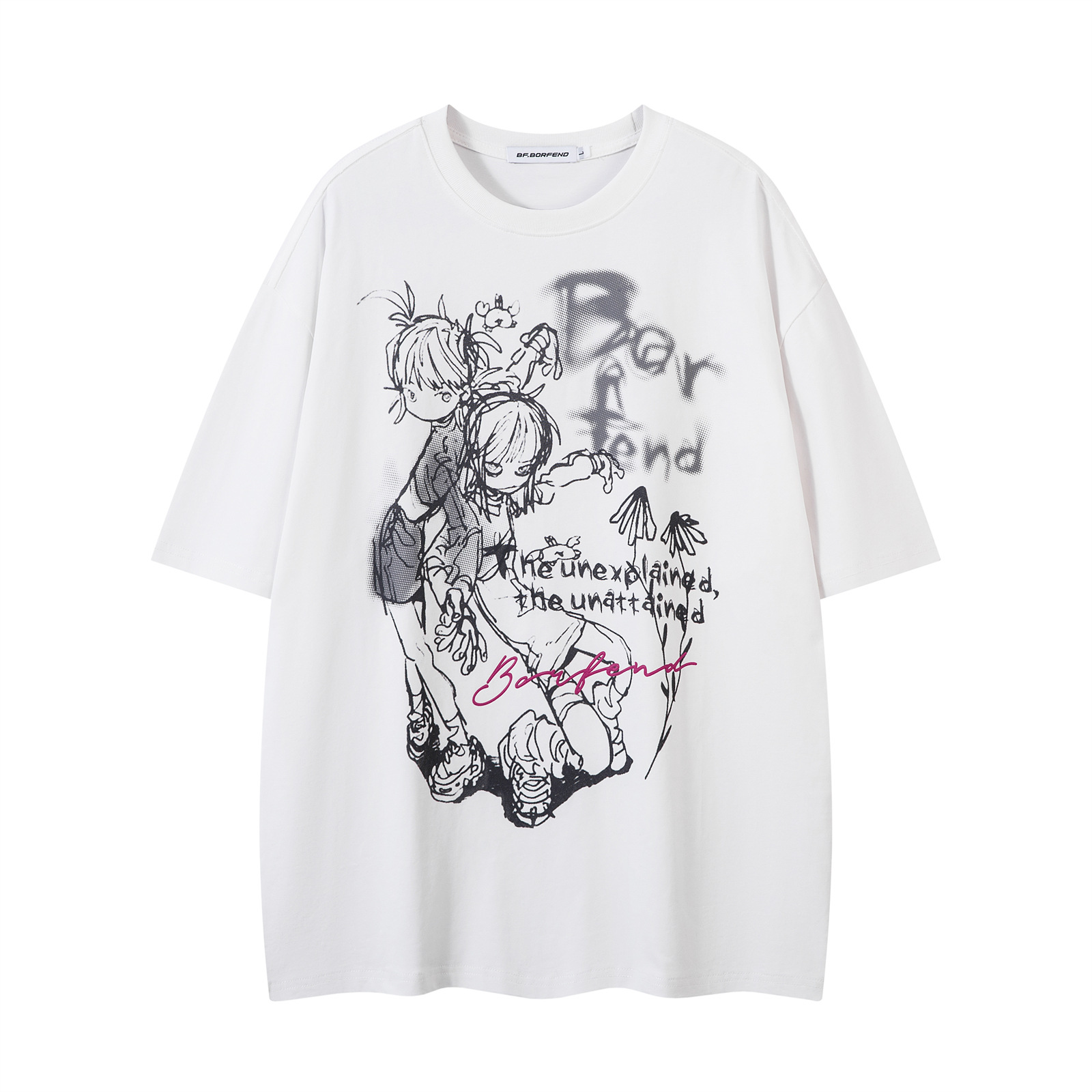 Cartoon Print Short Sleeve Oversize Casual Versatile T-Shirt for Men and Women | MuddyStock Originals
