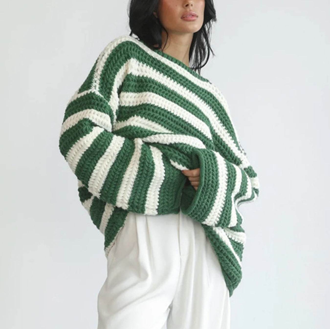 Women's Loose Off Shoulder Striped Long-sleeved Sweater