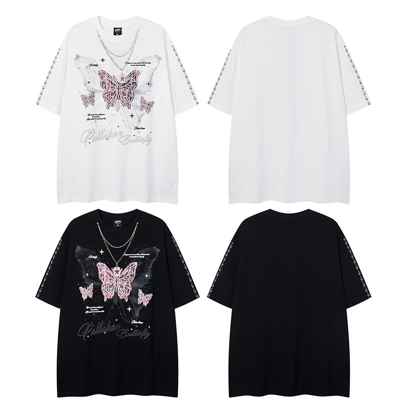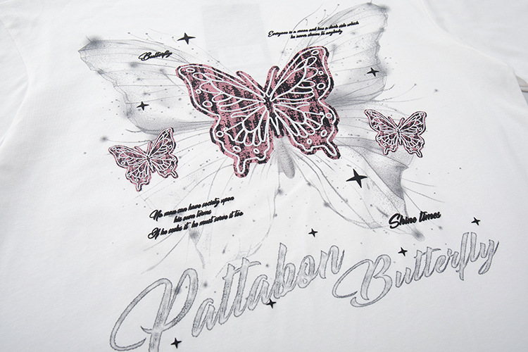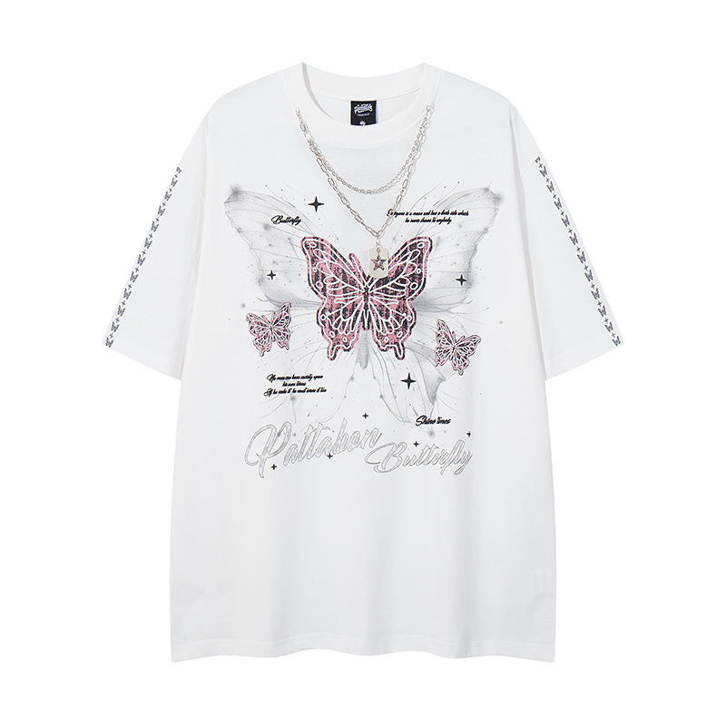 MuddyStock Originals Overlapping Butterfly Print Short Sleeve T-Shirt for women features a delicate and eye-catching design that blends elegance with casual comfort. Crafted from soft, breathable fabric, it ensures lasting comfort throughout the day. The unique overlapping butterfly print adds a touch of sophistication and femininity, perfect for elevating everyday outfits. Designed for a flattering fit, this t-shirt from MuddyStock Originals seamlessly combines style and wearability for modern women.