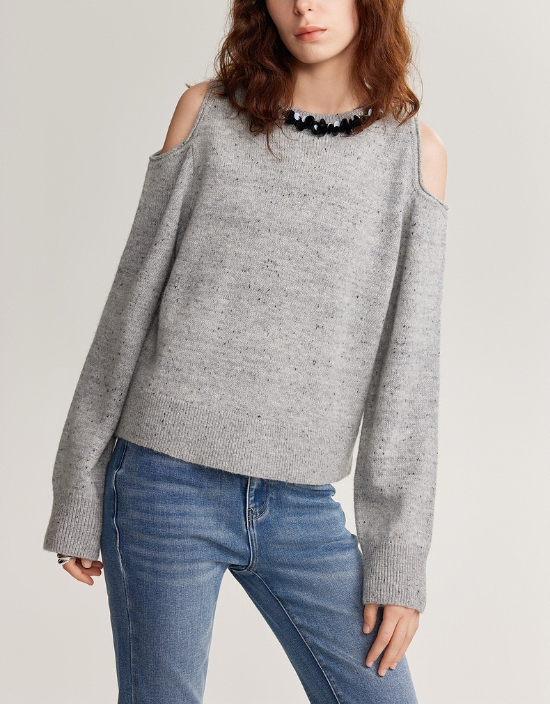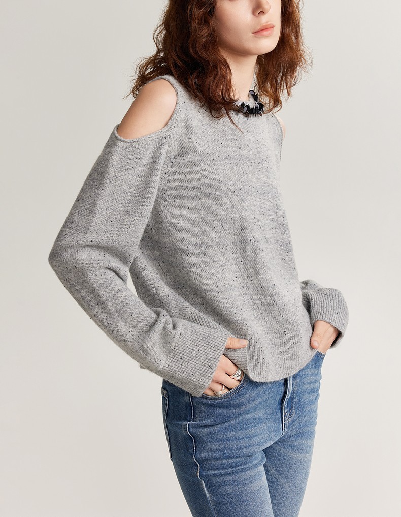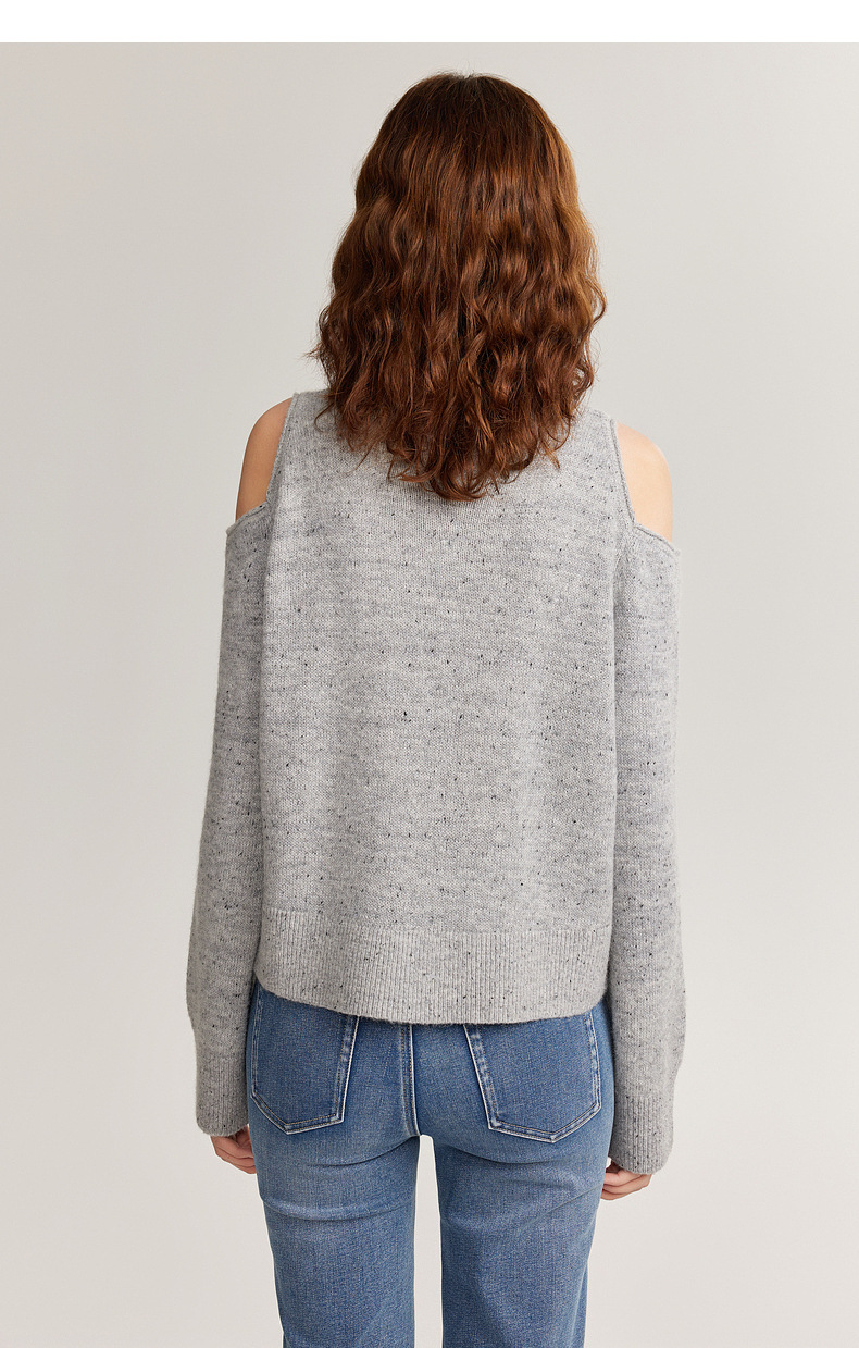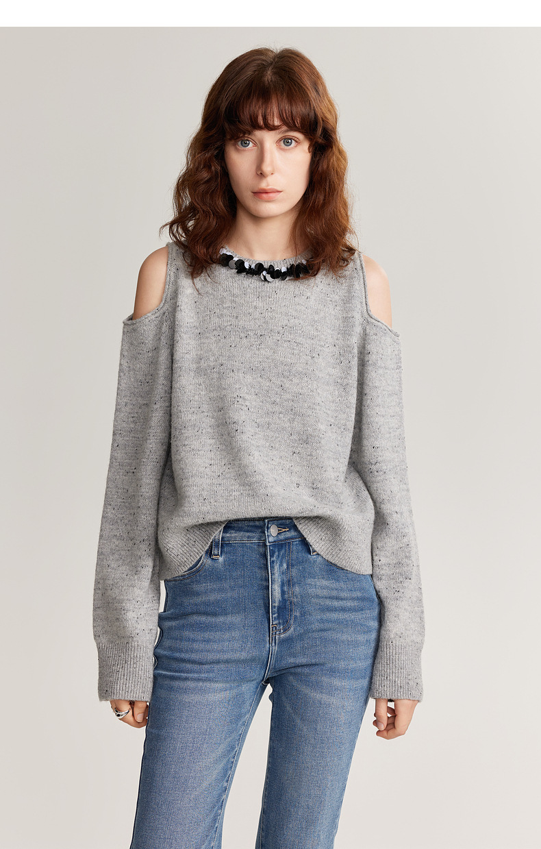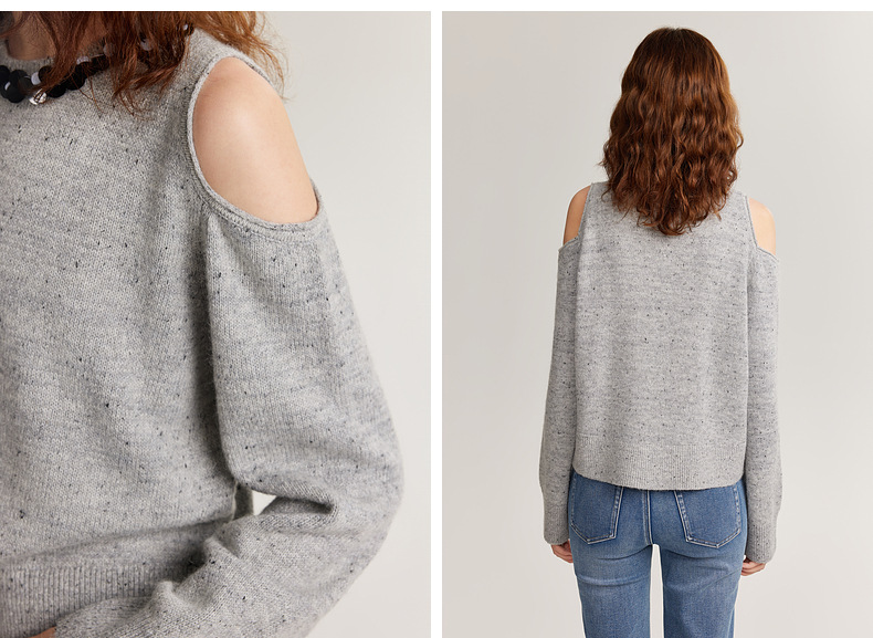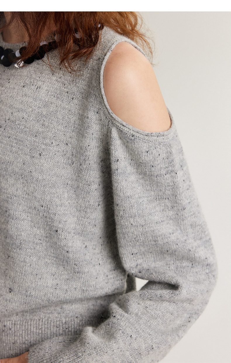 灰色绵羊毛马海毛混纺毛针织衫女2025秋季新款宽松露肩毛衣