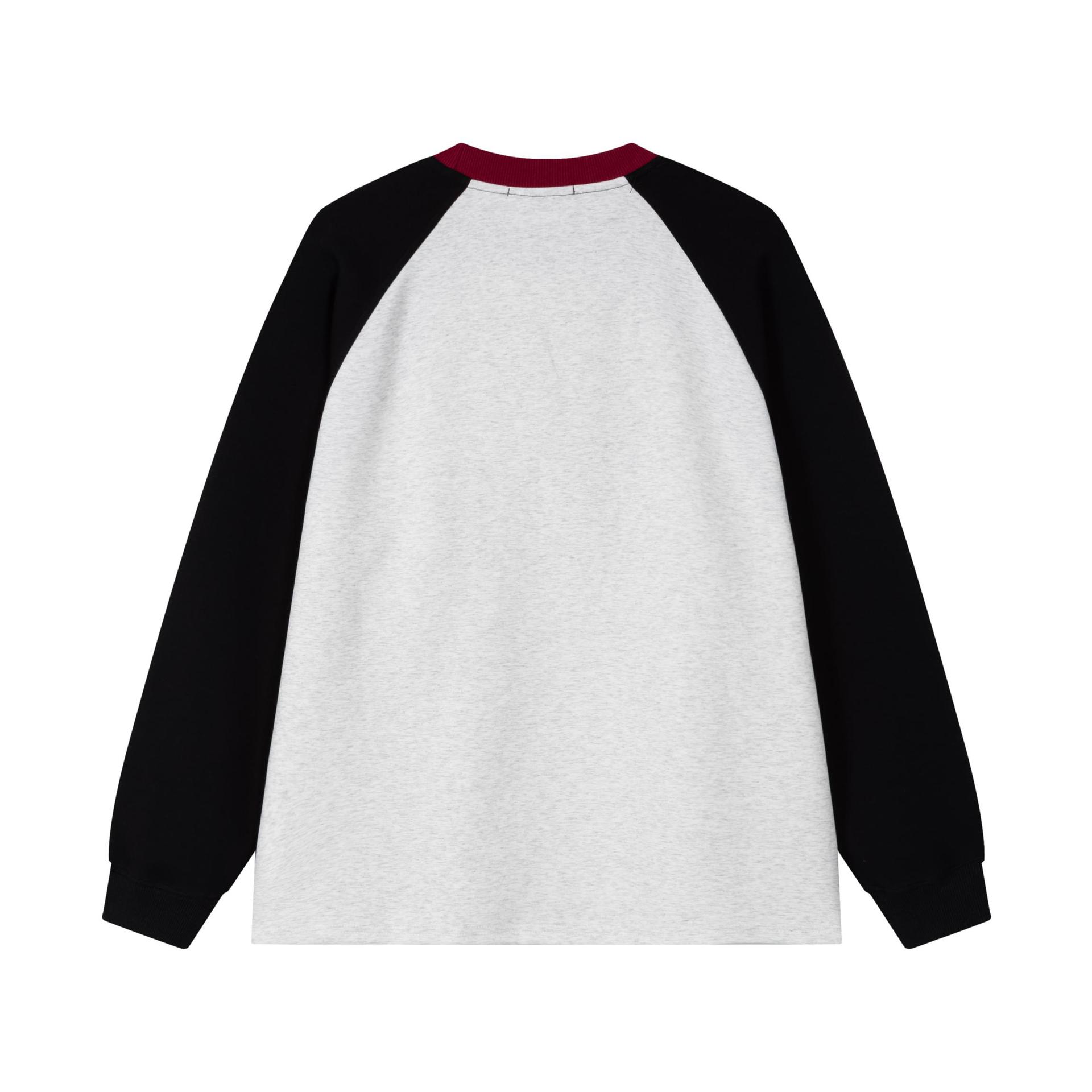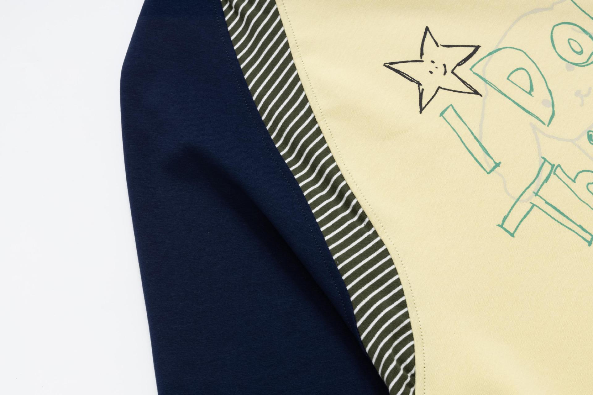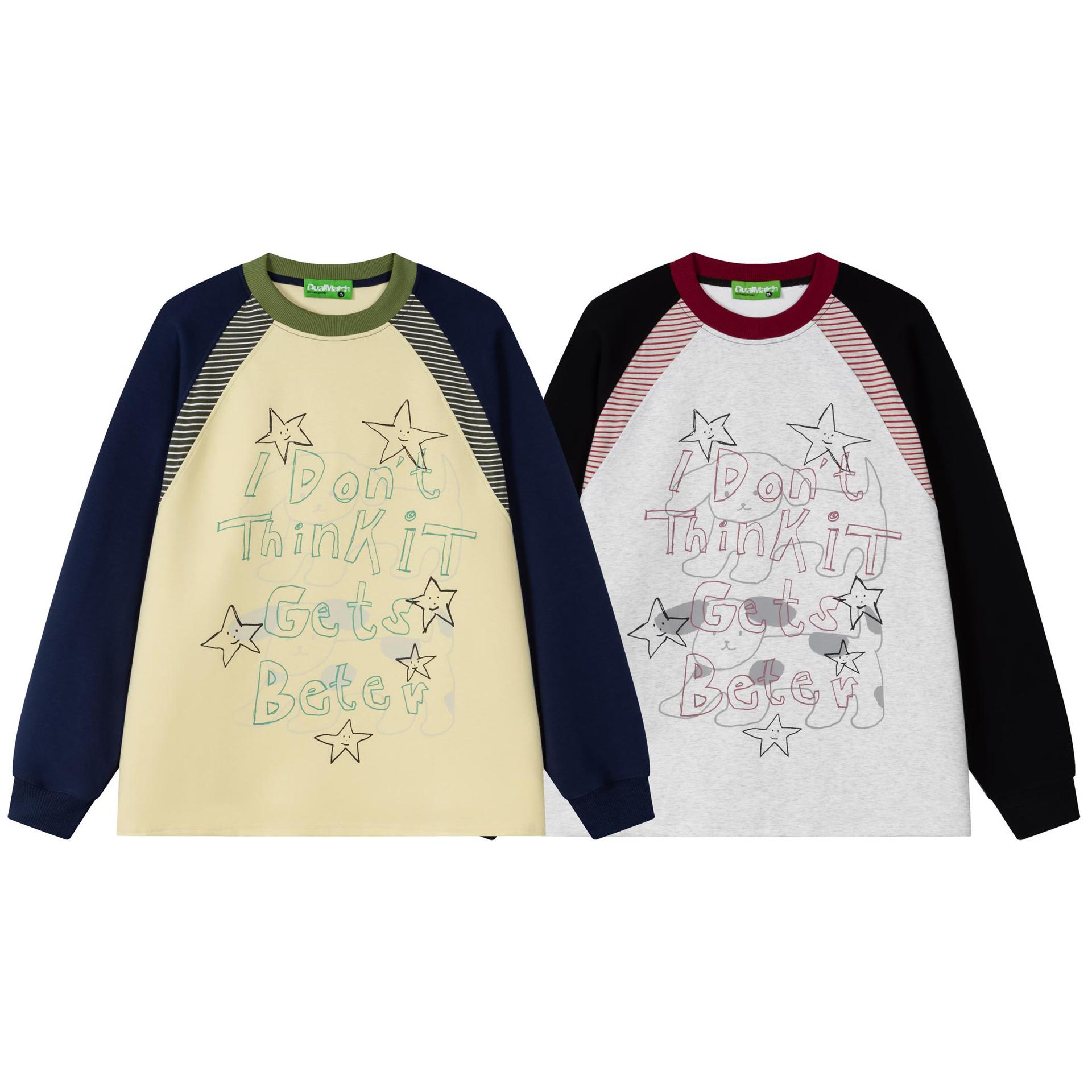 Hand drawn puppy striped patchwork long sleeved sweatshirt for men and women | MuddyStock Originals