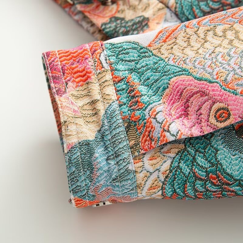 Peacock Print Zipper Jacket For Women | MuddyStock Originals MuddyStock's peacock print jacket brings bold visual storytelling to layering essentials through vibrant graphic detailing and functional zipper construction. The structured fit provides a defined silhouette while the statement print elevates casual basics into curated looks. Quality fabric and construction ensure durability through repeated wear and seasonal transitions. Designed for those seeking outerwear that balances personality-driven aesthetics with everyday versatility and reliable performance.