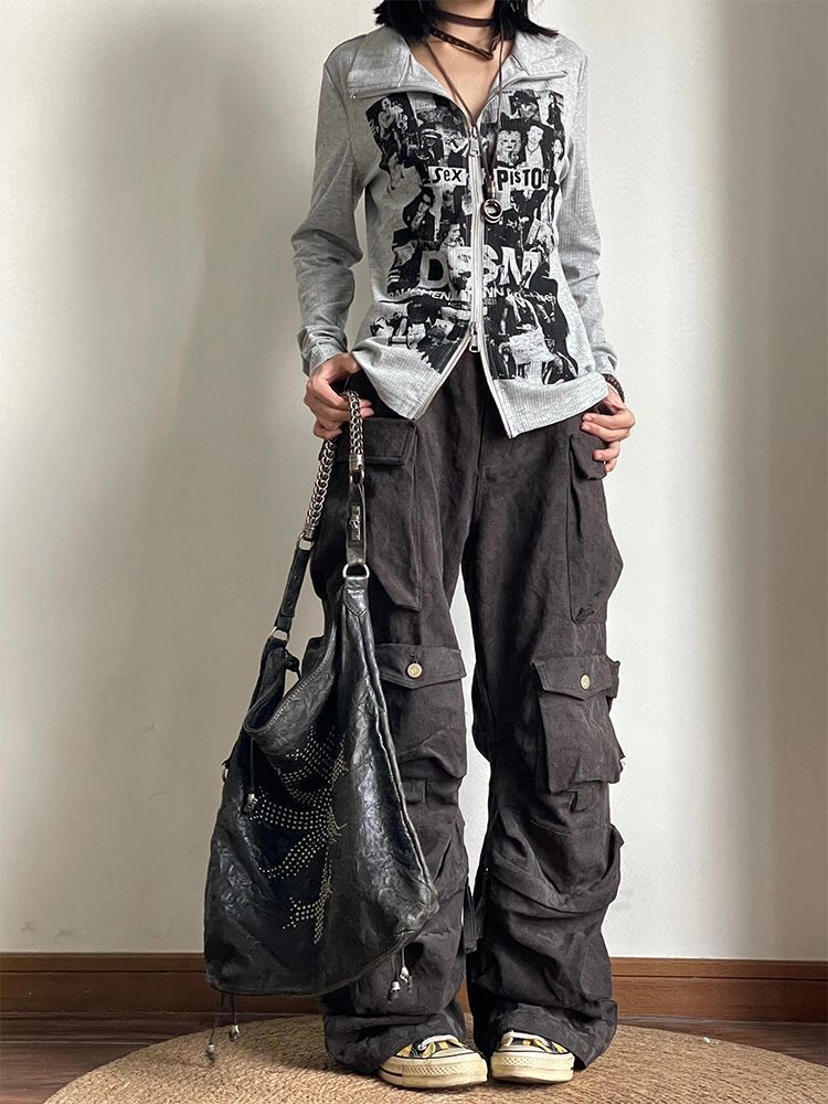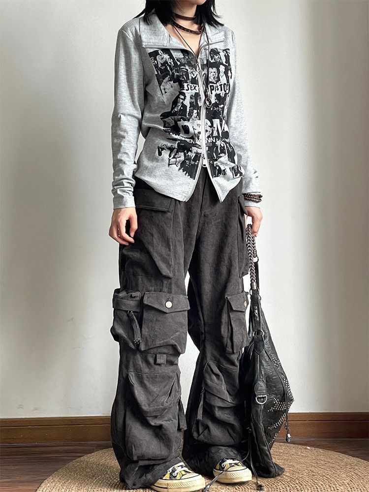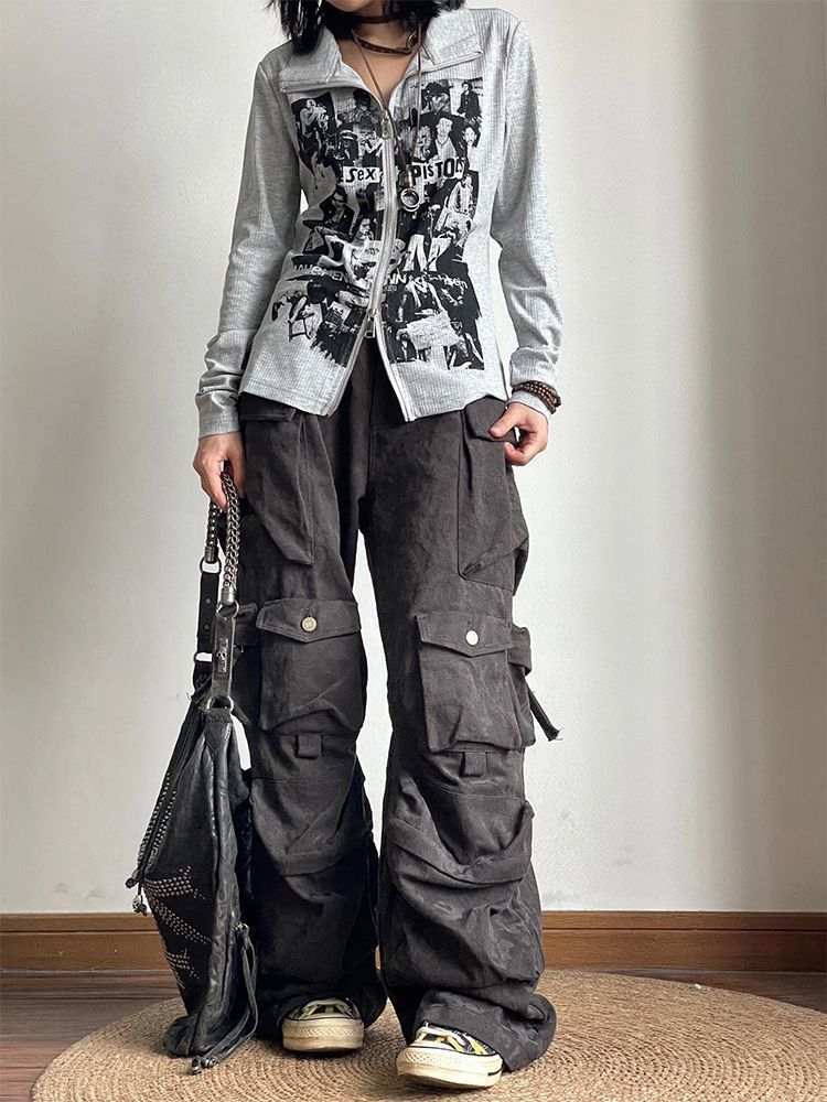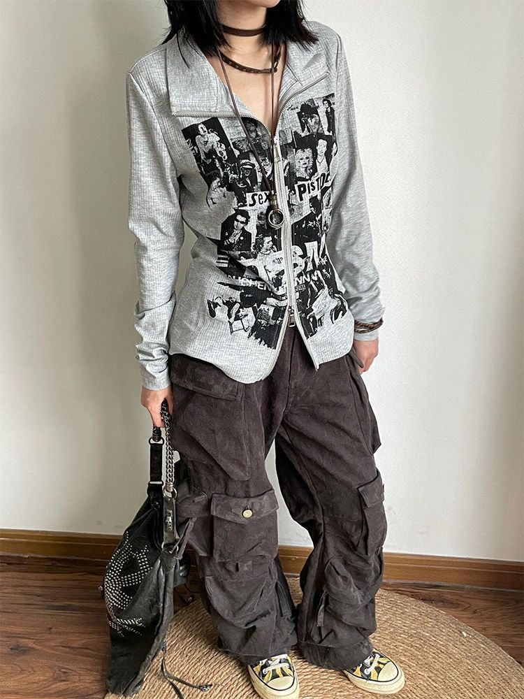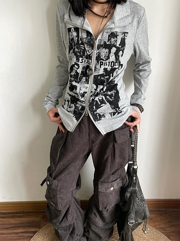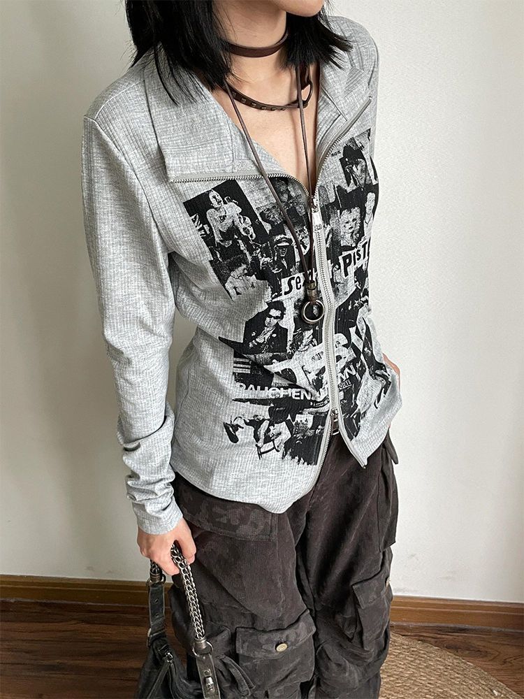Punk rock print long sleeved zipper top for women | MuddyStock Originals