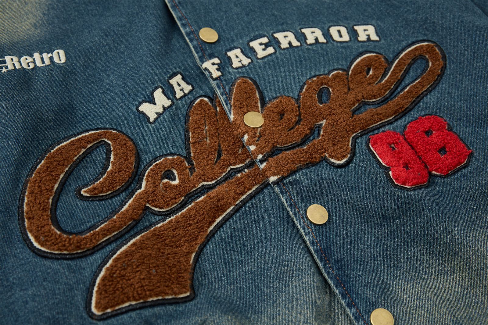 Vintage Washed Letter Embroidery Baseball Jacket for Men | MuddyStock Originals