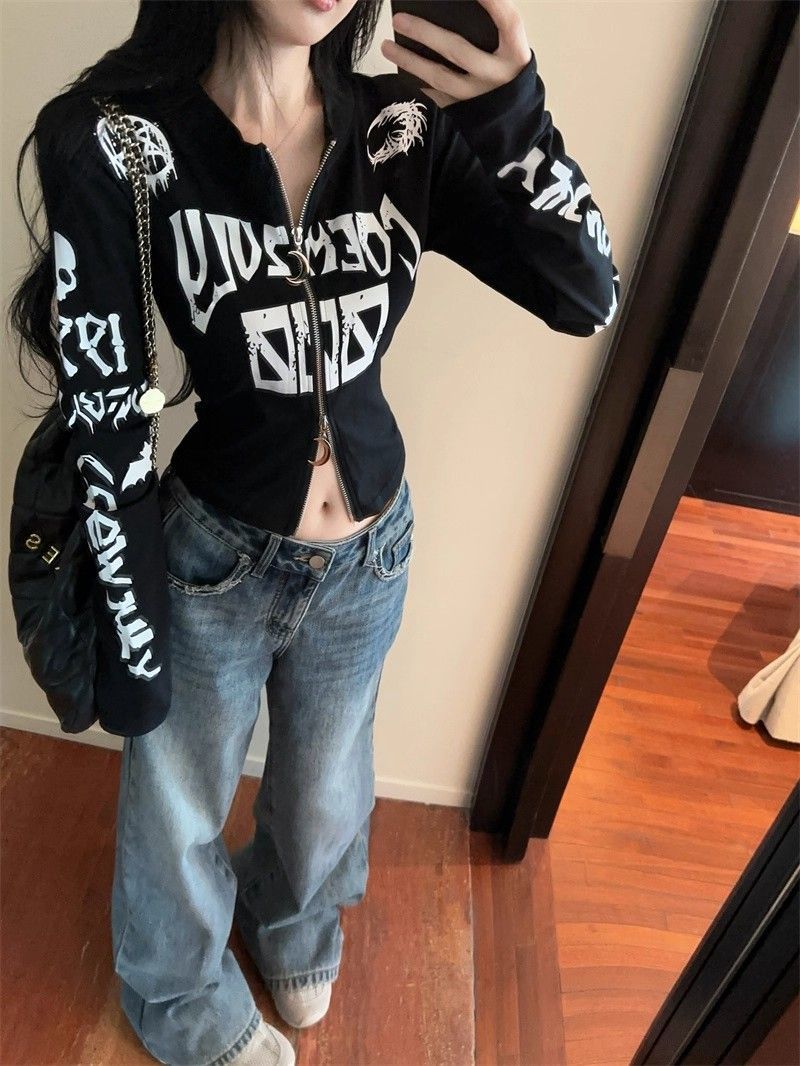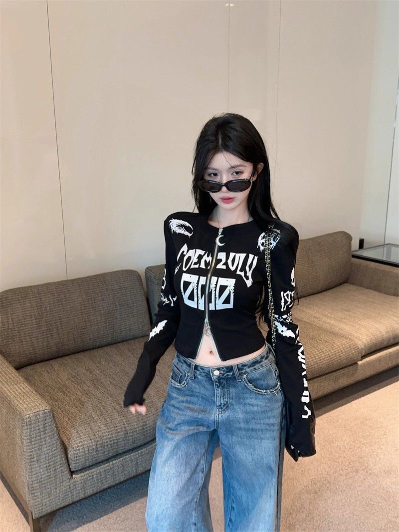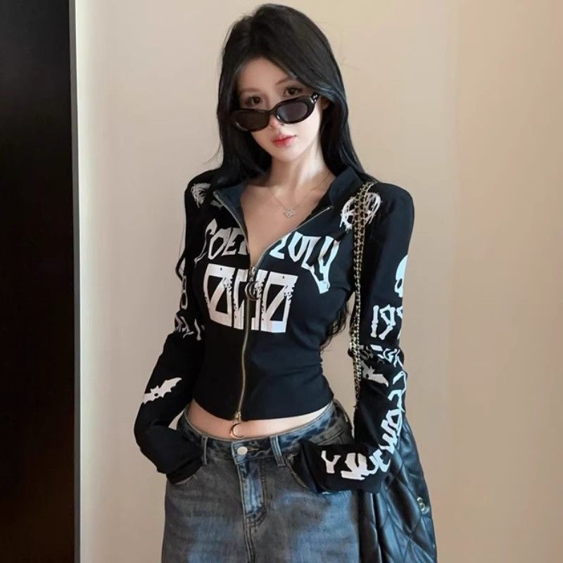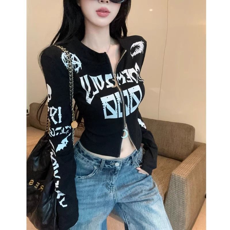 Printed long sleeved women's double zipper slim fit top for women | MuddyStock Originals
