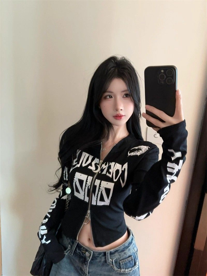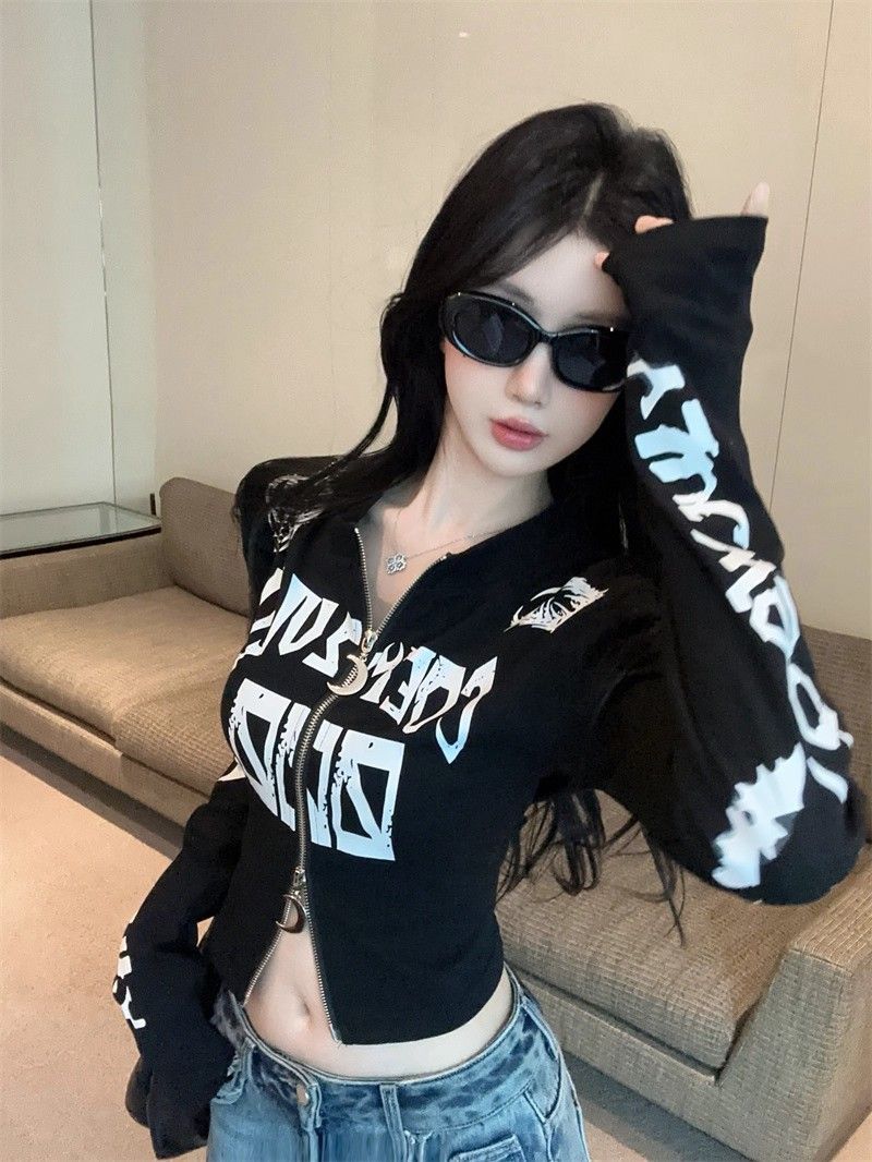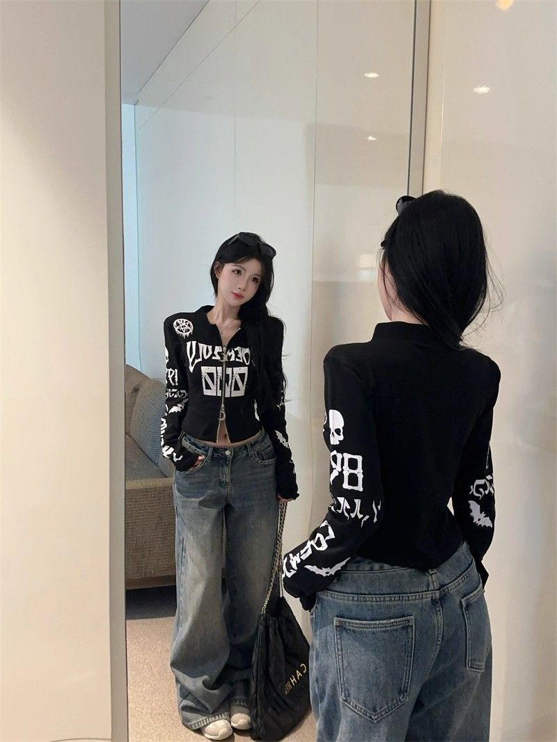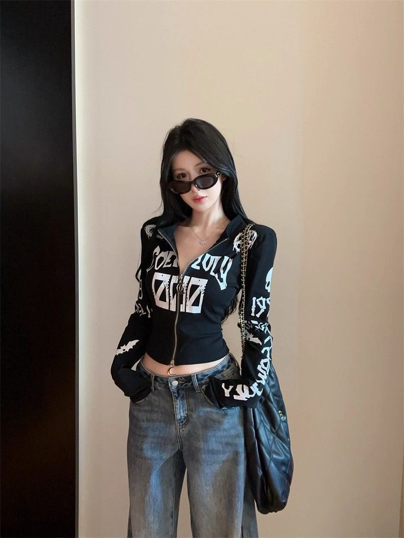 Printed long sleeved women's double zipper slim fit top for women | MuddyStock Originals